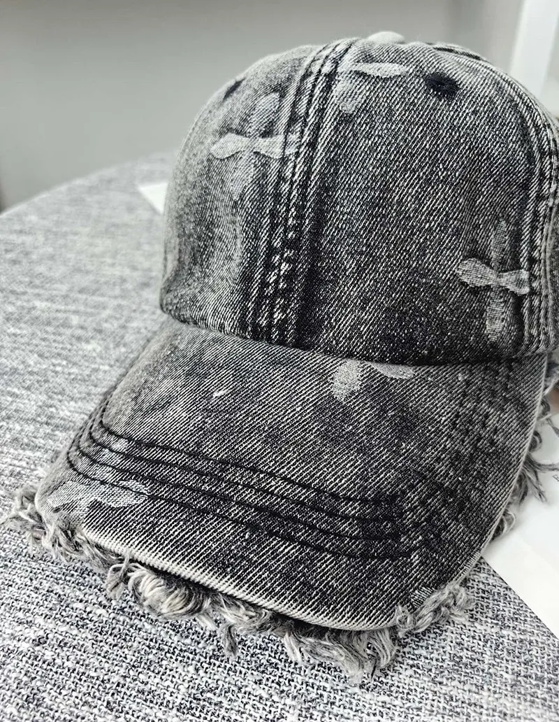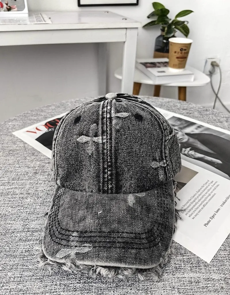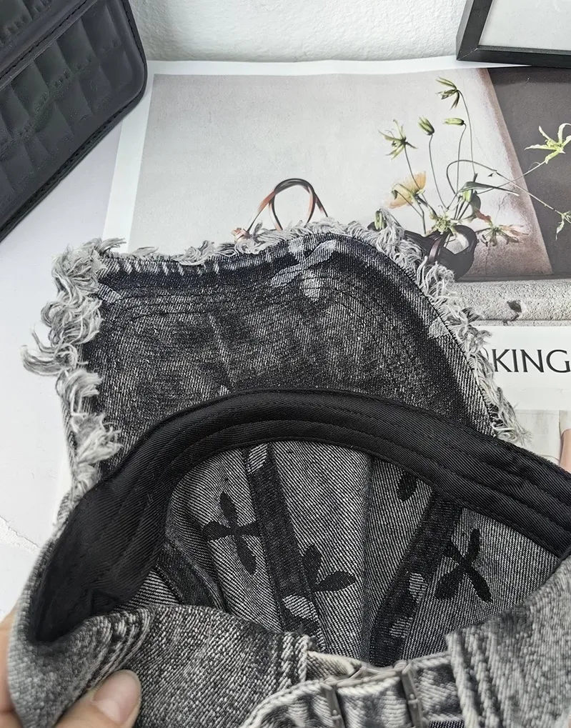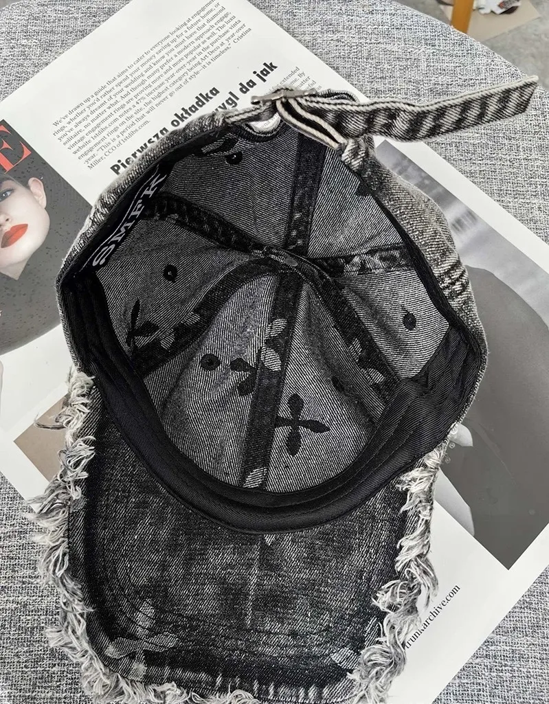 SMFK復古灰水洗牛仔流蘇棒球帽