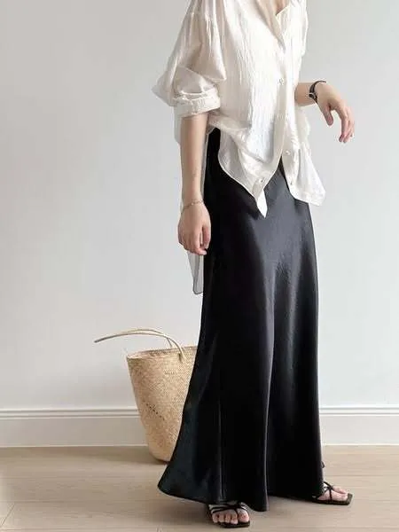 【月光綻放】緞面高腰魚尾裙