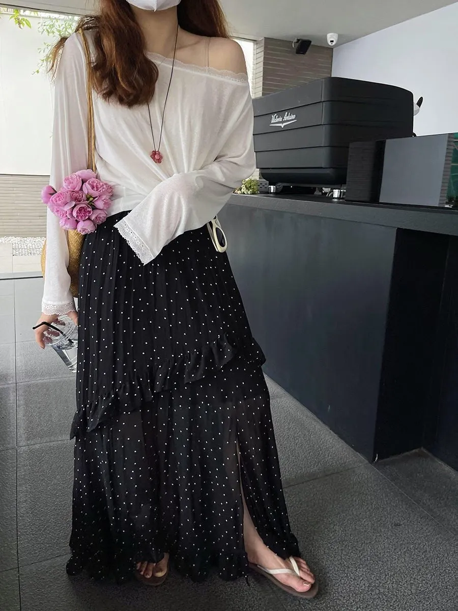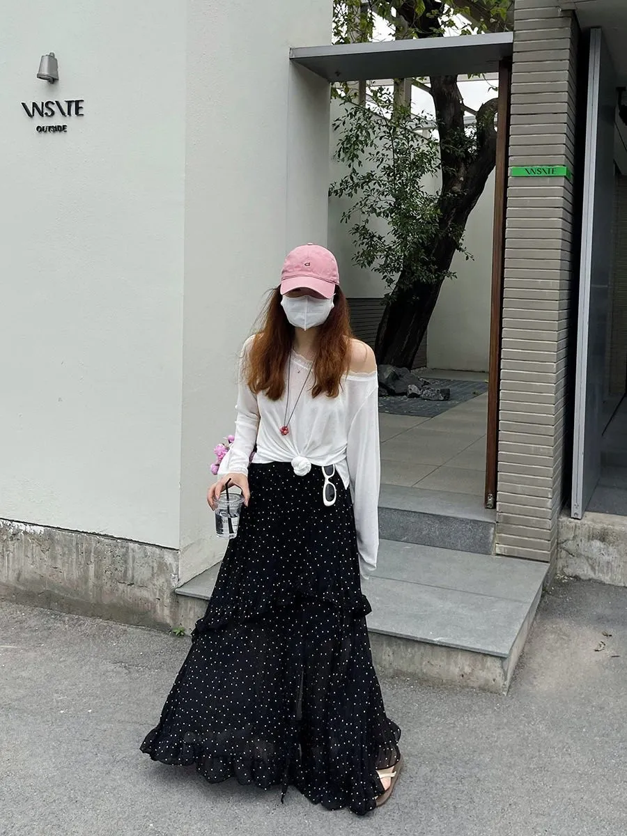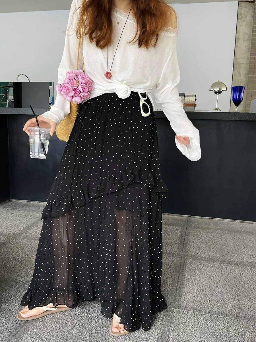 夏日清爽首選! 鬆緊腰頭+輕盈雪紡 輕鬆遮腿又涼感十足 波點+荷葉邊+開衩設計 結合復古與活力 紅色:熱情吸睛 黑色:低調百搭 怎麼搭都時髦 一穿立刻有好心情~ #彈性腰頭 #有內裏 #沒口袋 材質:雪紡
