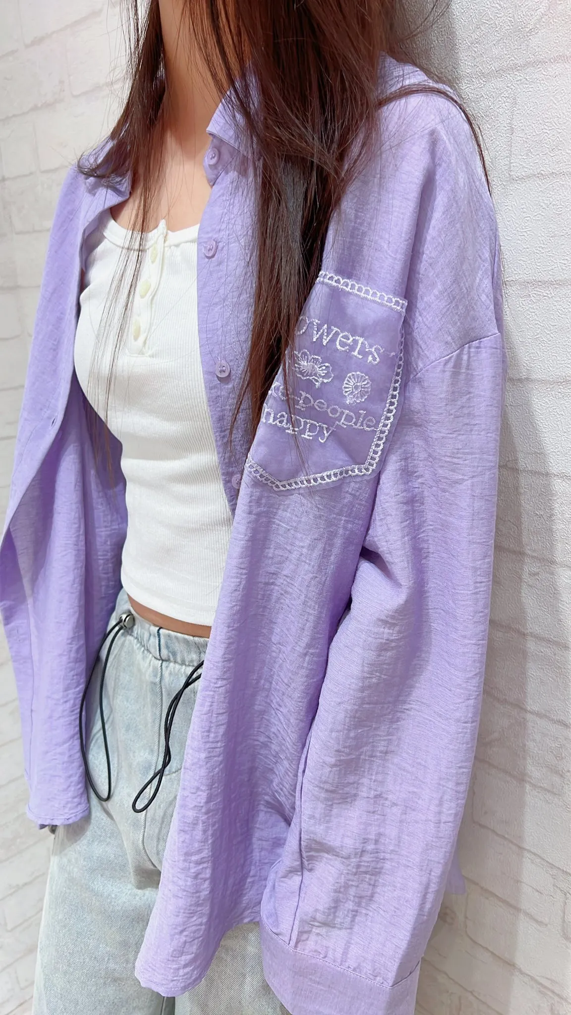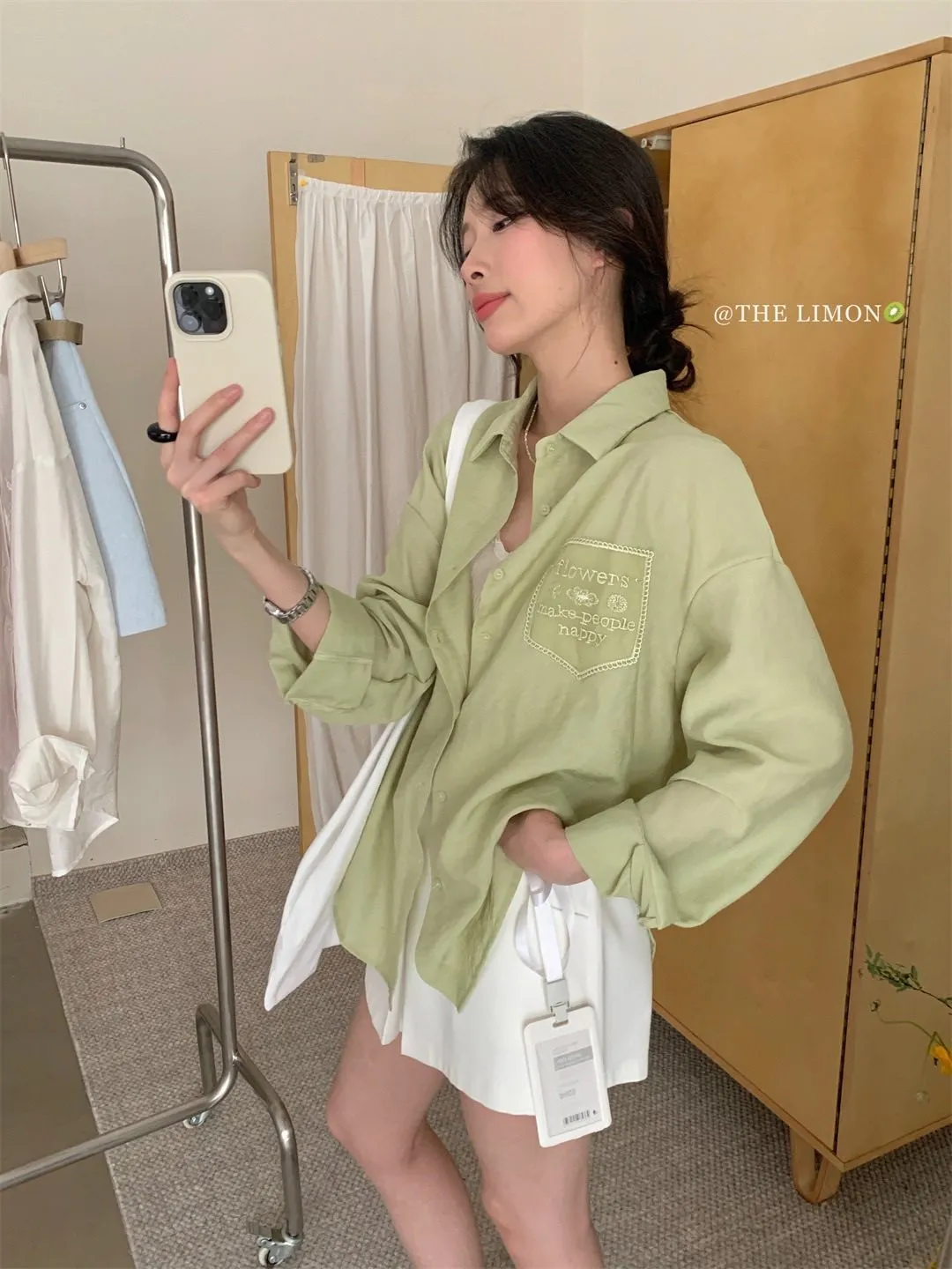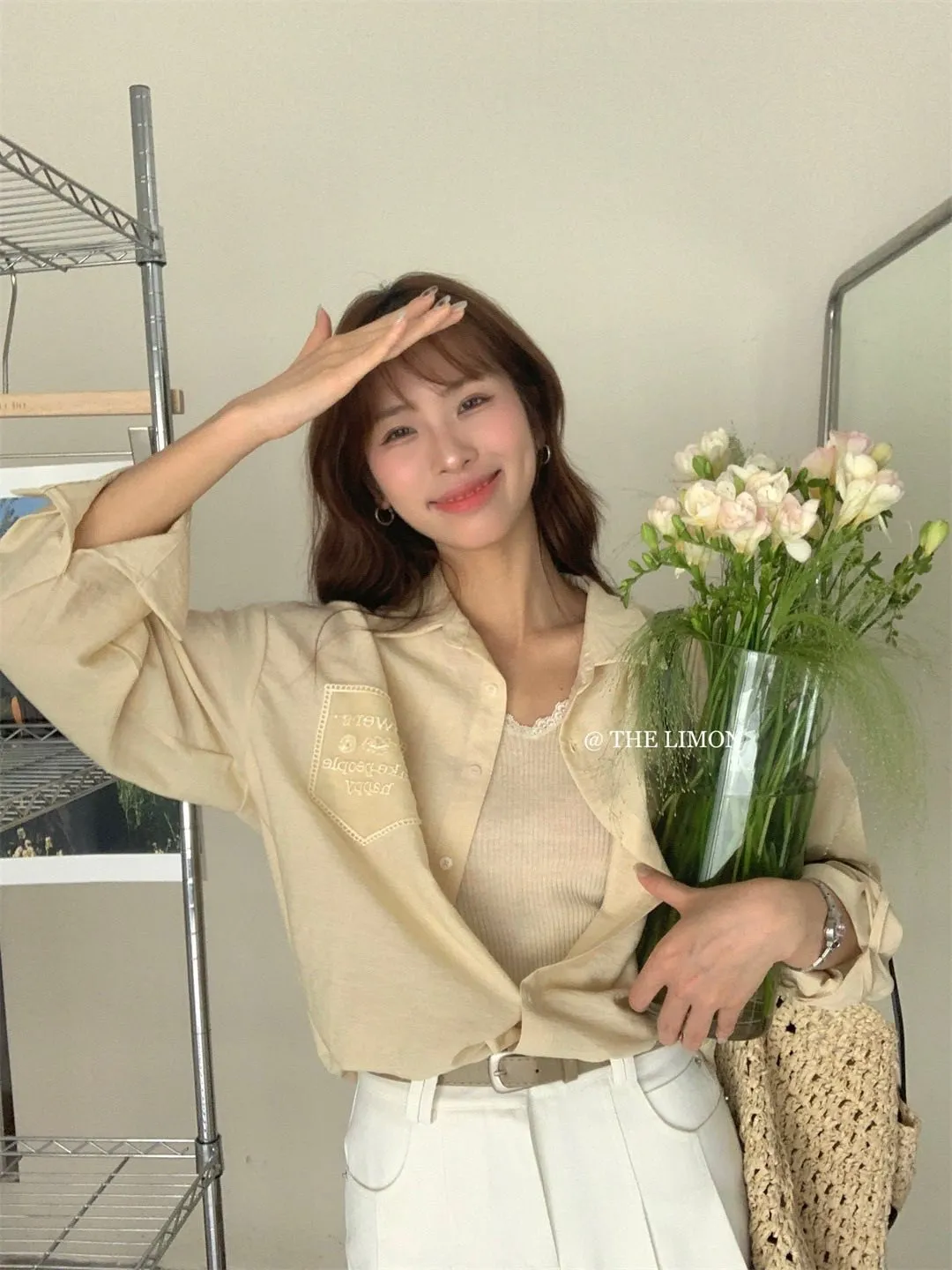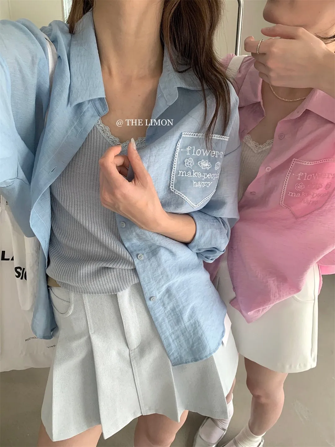 𝐓𝐇𝐄 𝐋𝐈𝐌𝐎𝐍檸檬家🍋字母刺繡蕾絲口袋襯衫☀️防曬衫