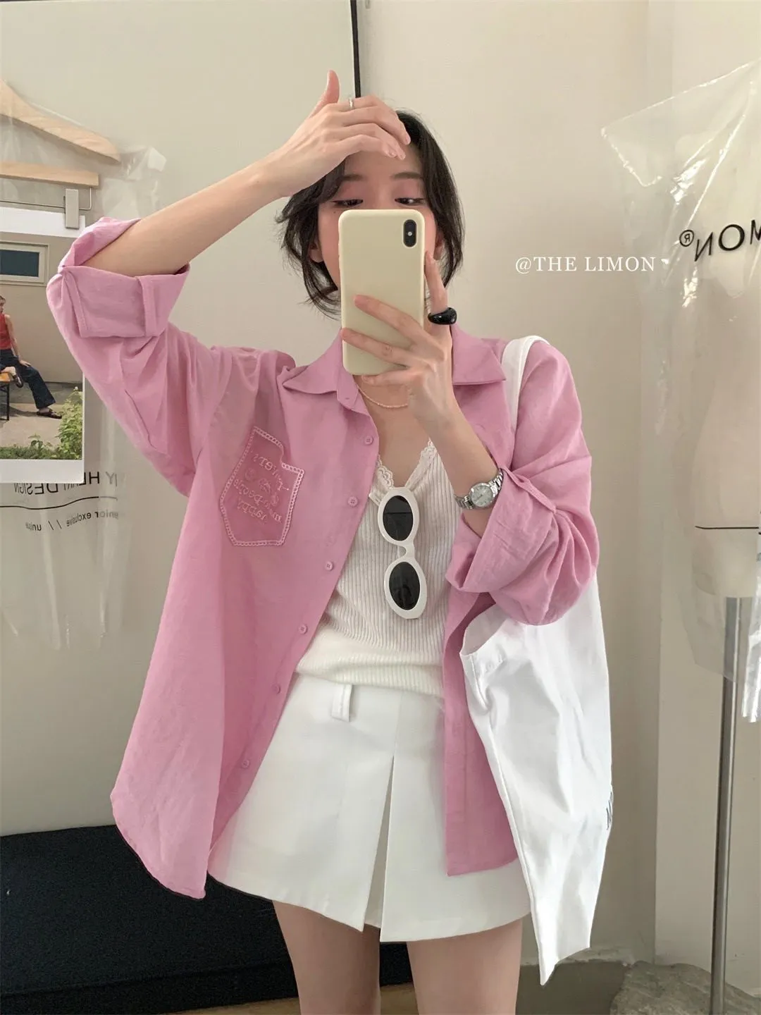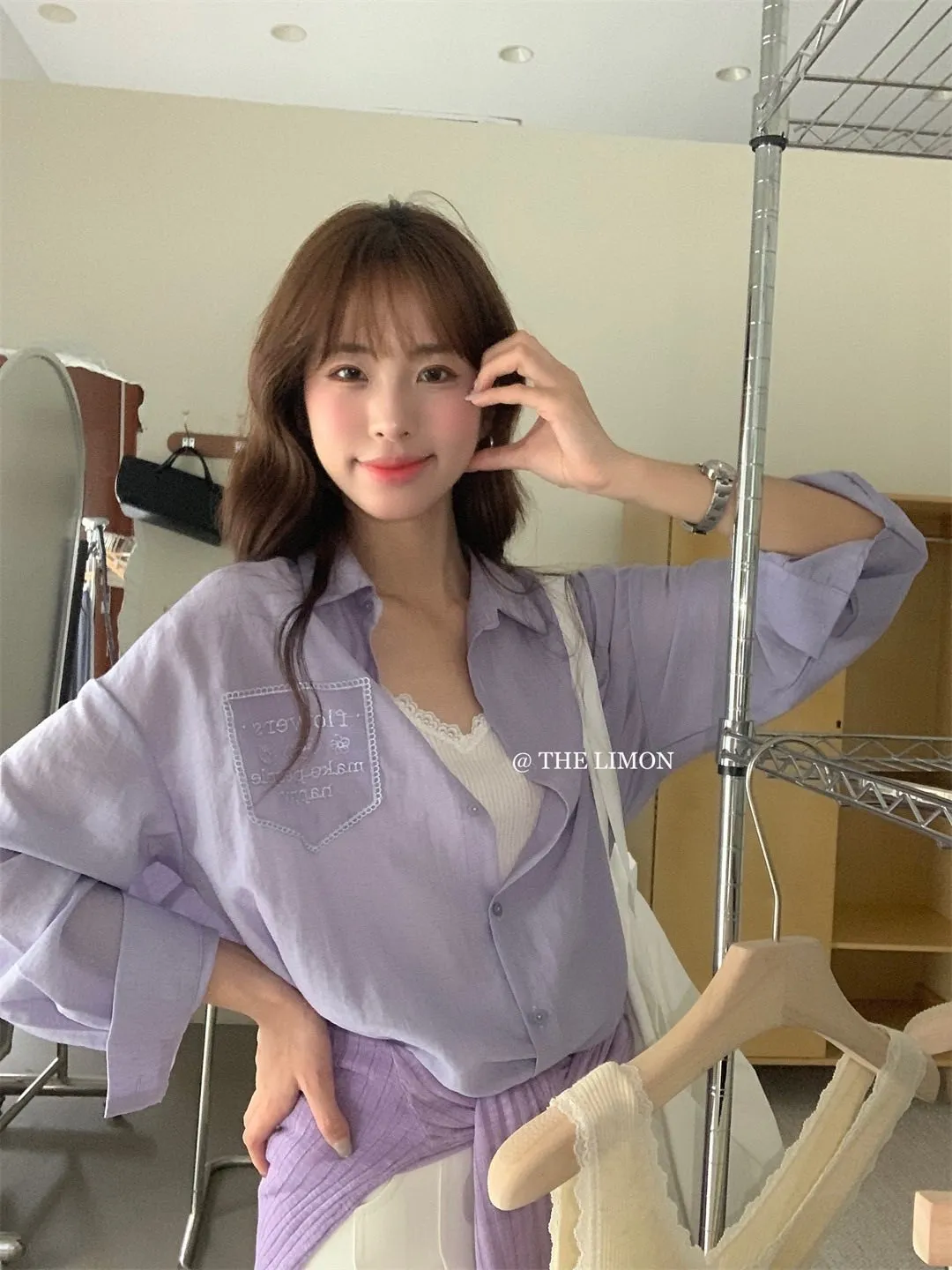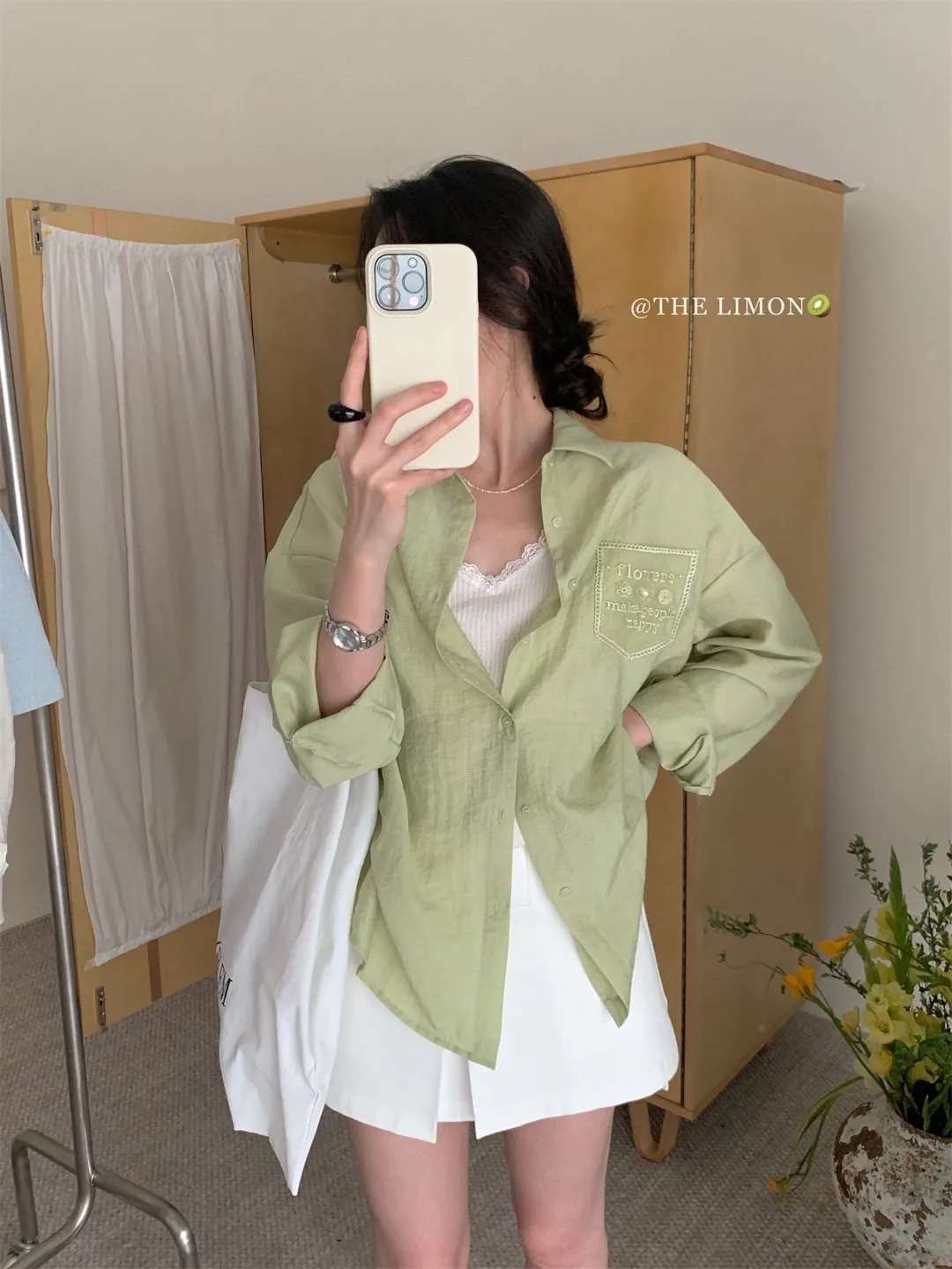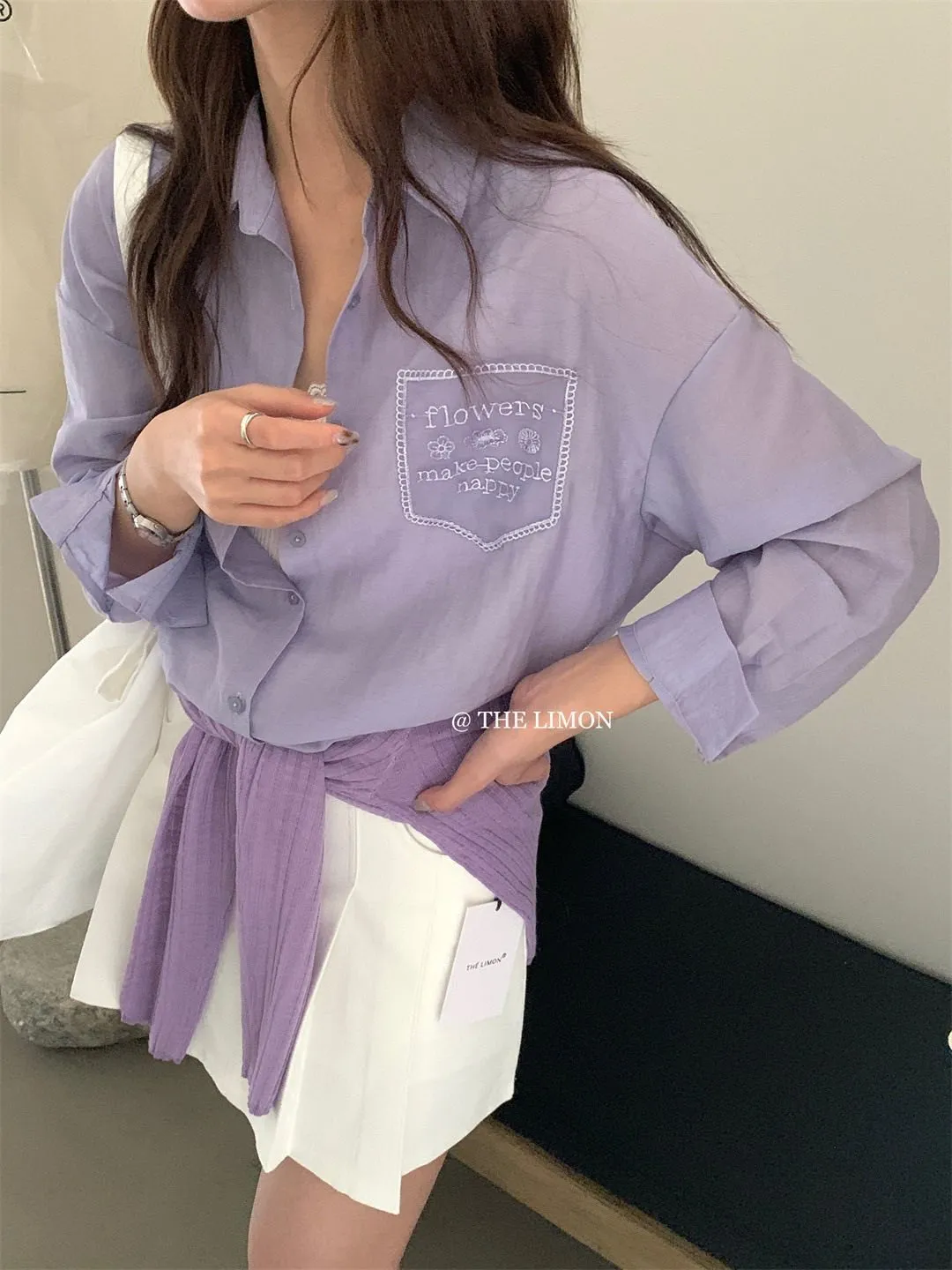 𝐓𝐇𝐄 𝐋𝐈𝐌𝐎𝐍檸檬家🍋字母刺繡蕾絲口袋襯衫☀️防曬衫