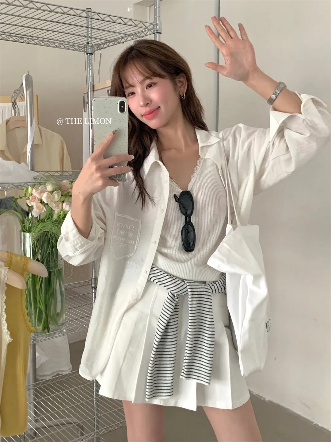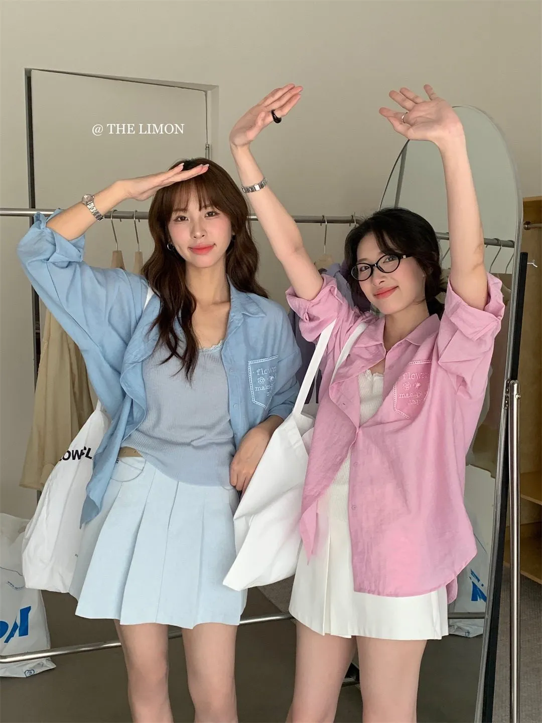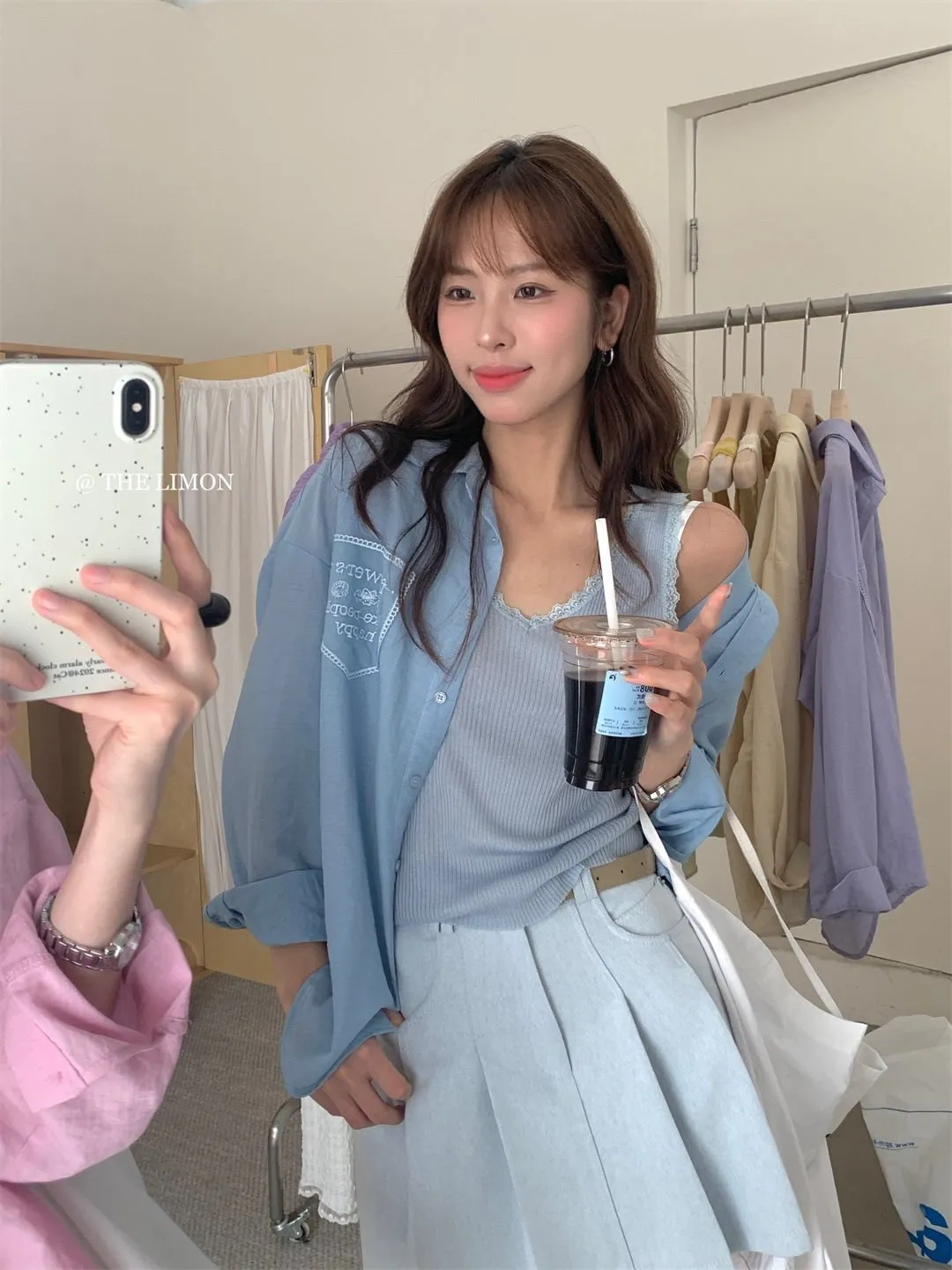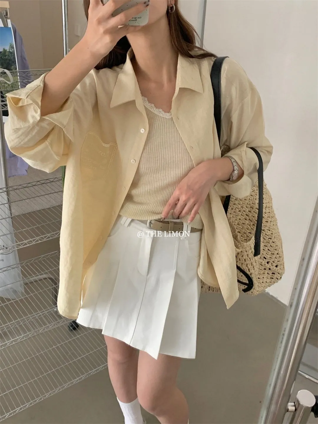 𝐓𝐇𝐄 𝐋𝐈𝐌𝐎𝐍檸檬家🍋字母刺繡蕾絲口袋襯衫☀️防曬衫