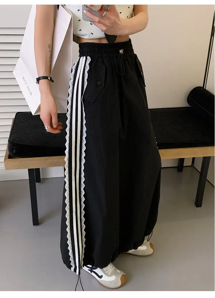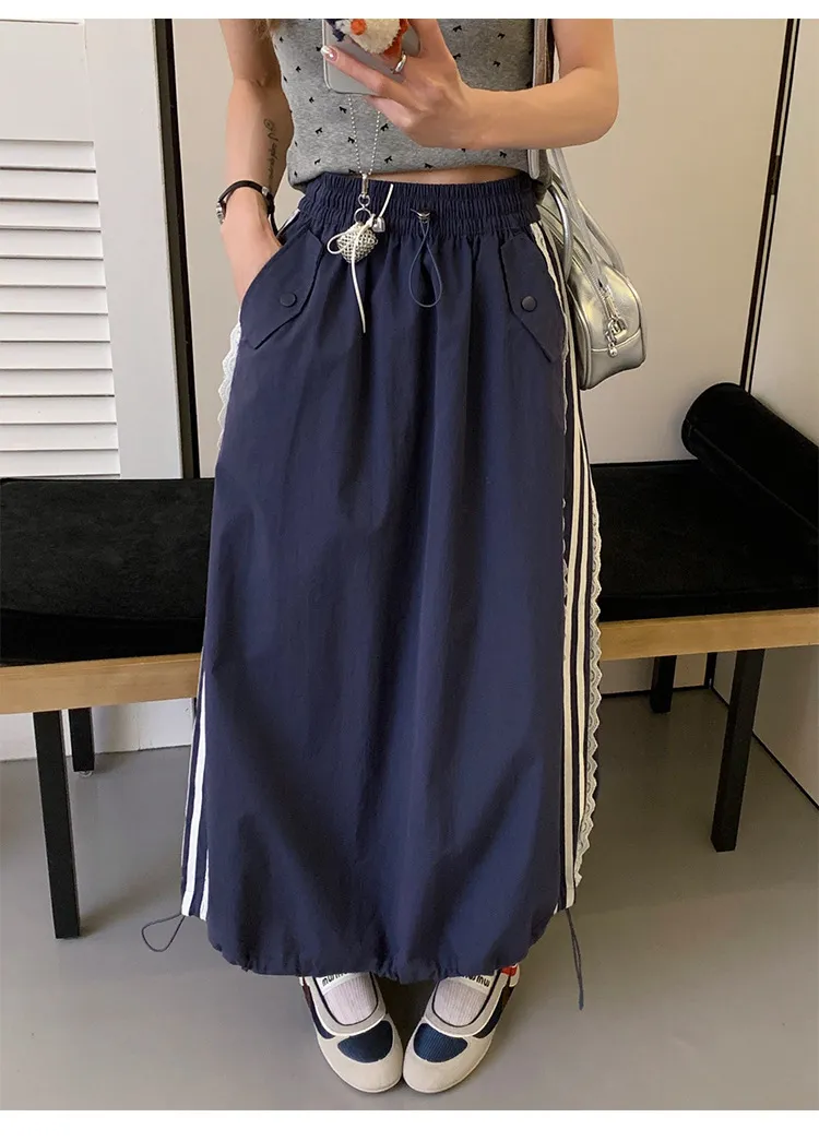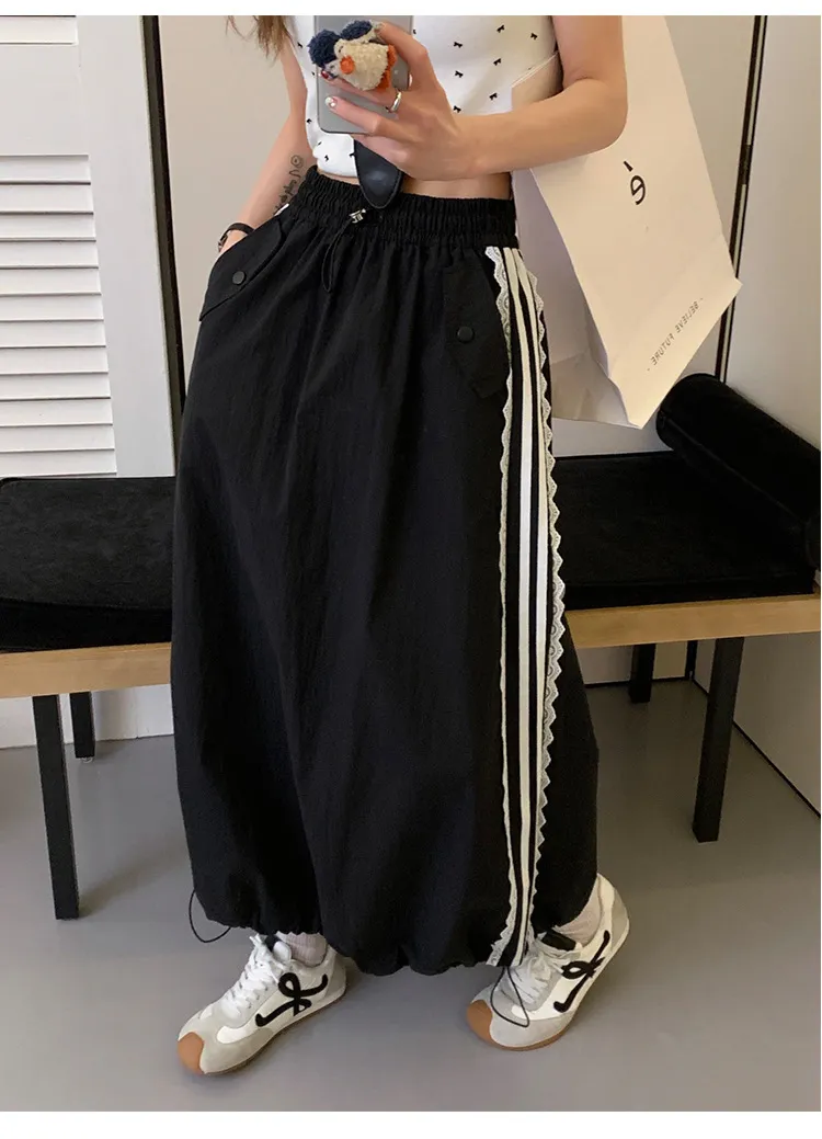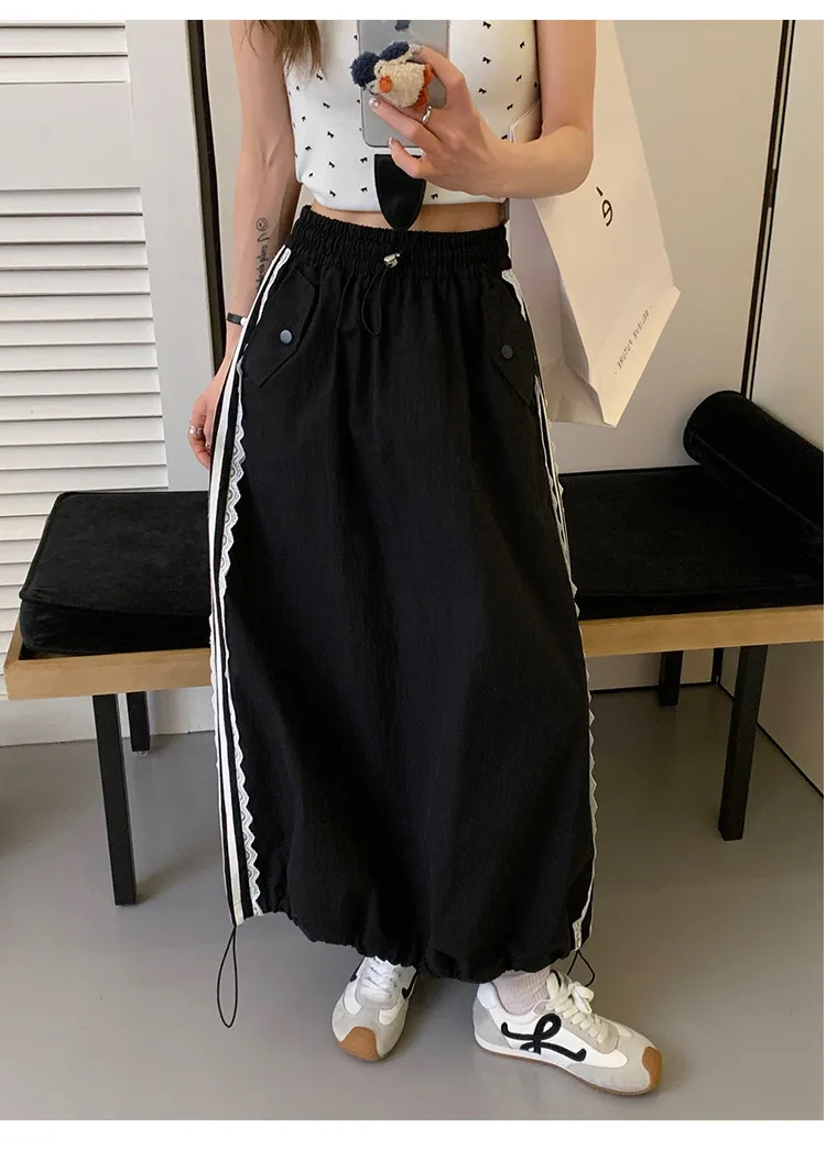 運動感 × 工裝風 × 少女蕾絲感衝突卻完美融合的一款街頭時髦單品!▪ 抽繩可打造出花苞裙擺,修飾身形更顯瘦▪ 側邊拼接撞色運動條紋+蕾絲花邊,帶出美式復古感▪ 特殊立體口袋設計,增添工裝機能感,實用又有型▪ 面料輕盈透氣,春夏穿不悶熱