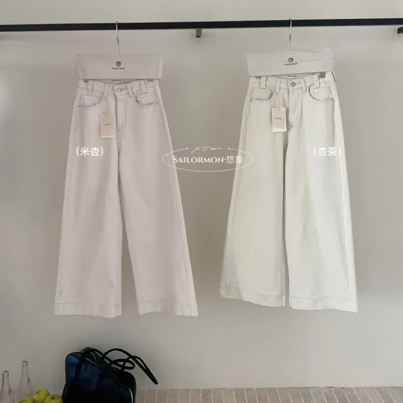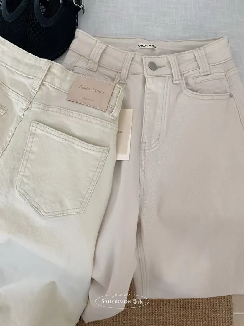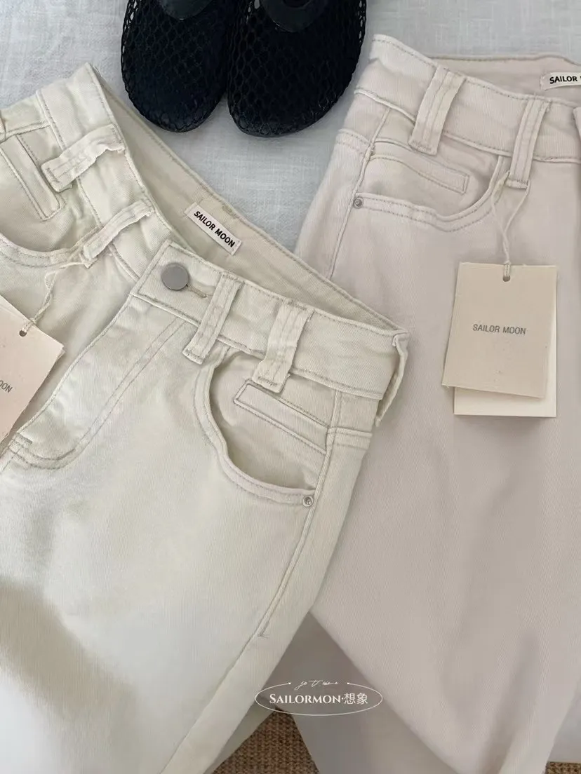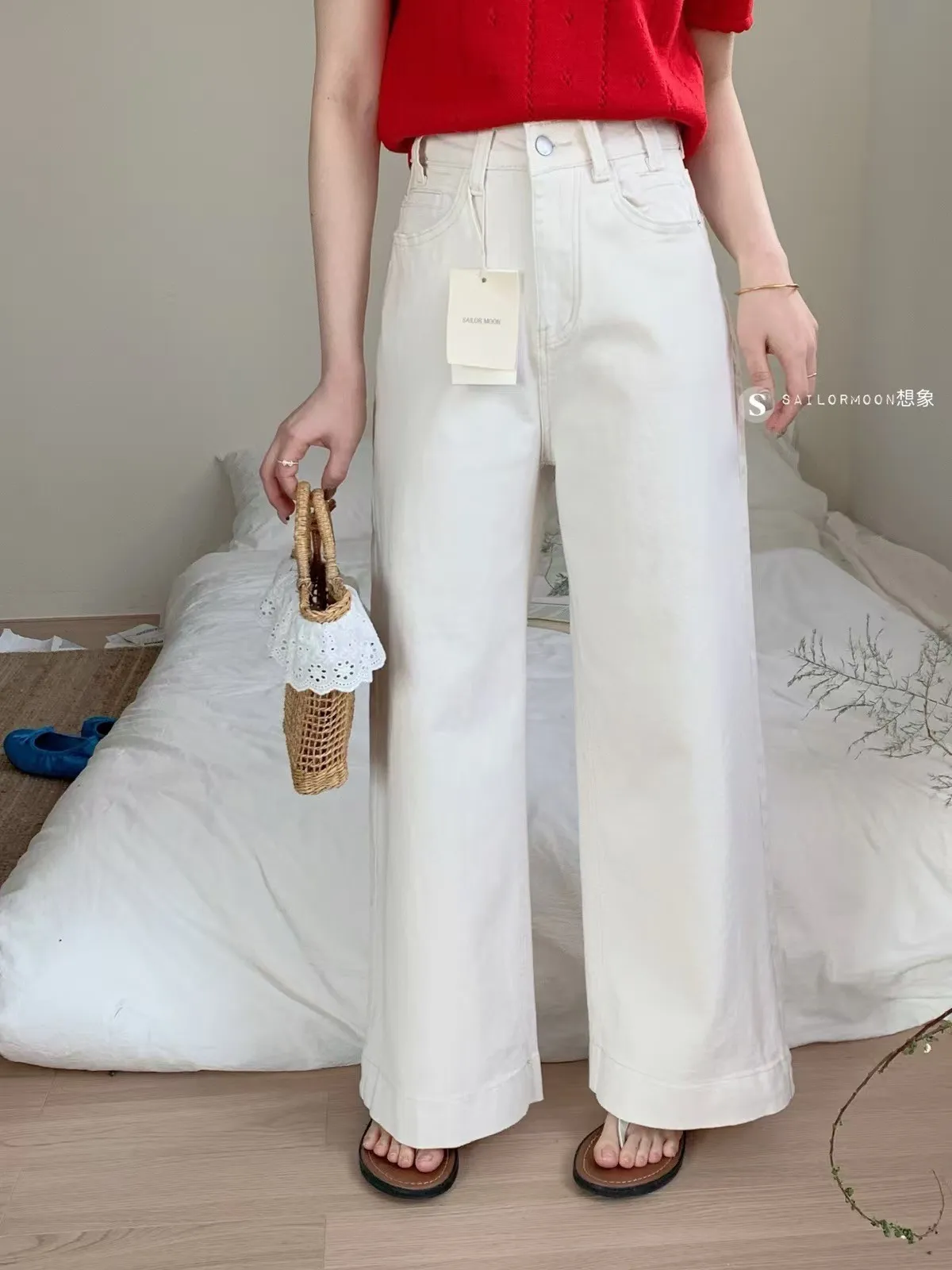 【小清新奶油褲】高腰直筒顯瘦牛仔寬褲