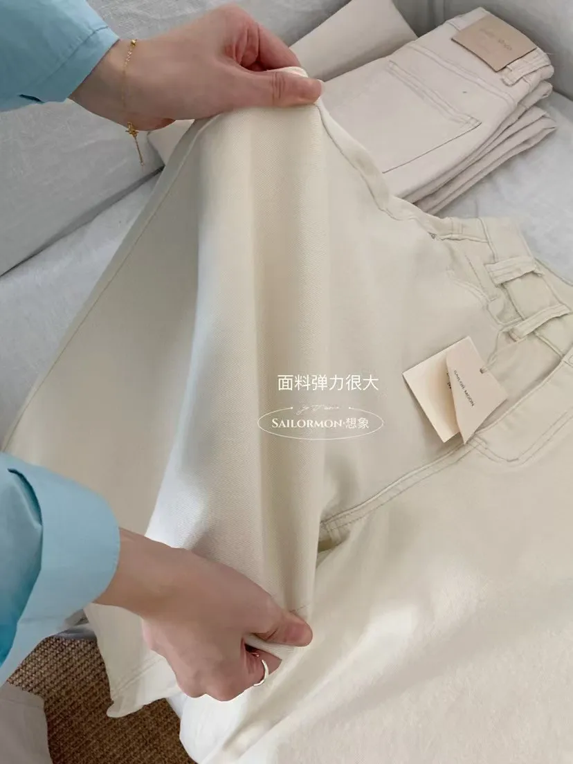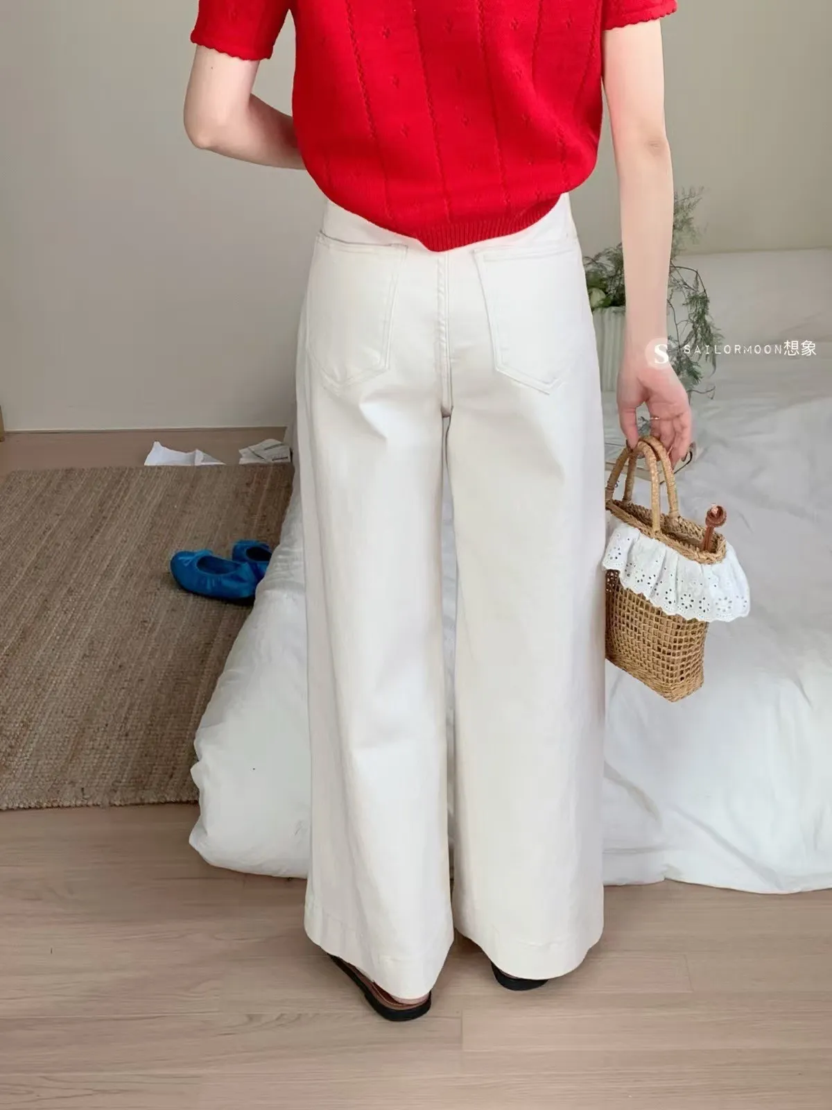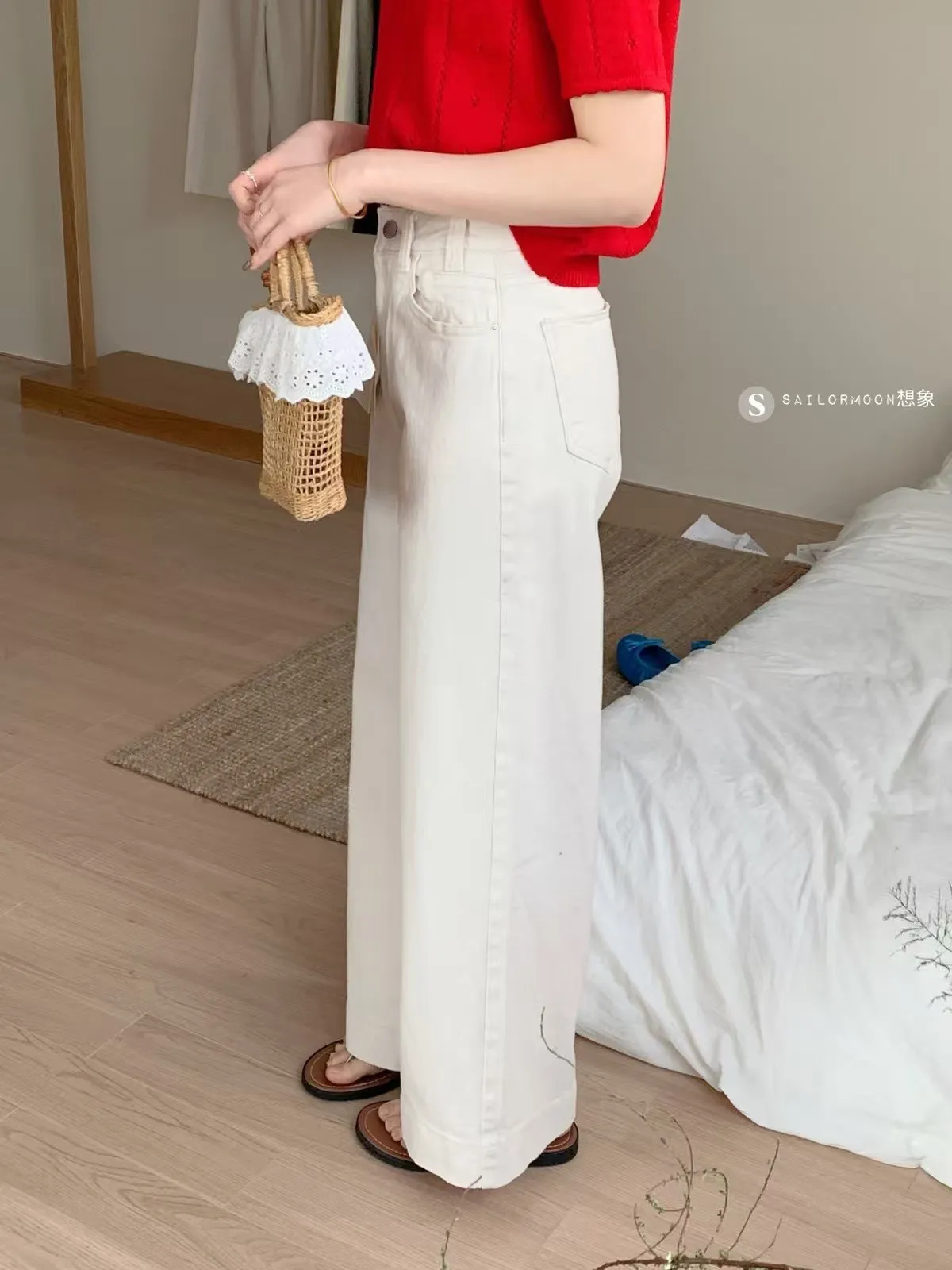 【小清新奶油褲】高腰直筒顯瘦牛仔寬褲