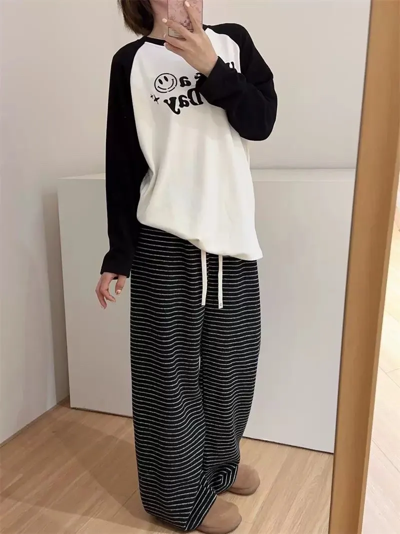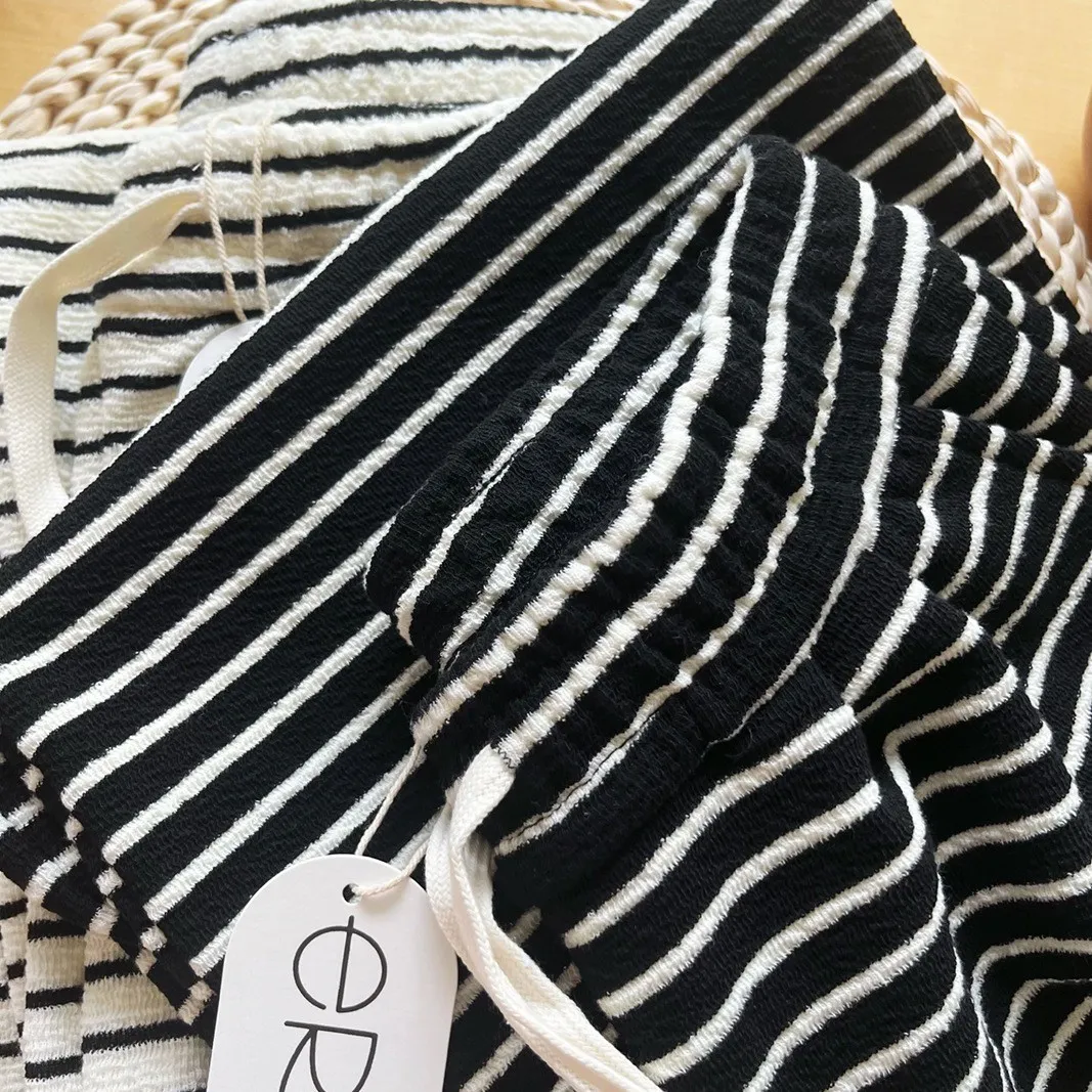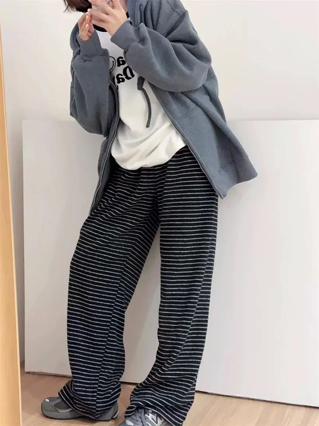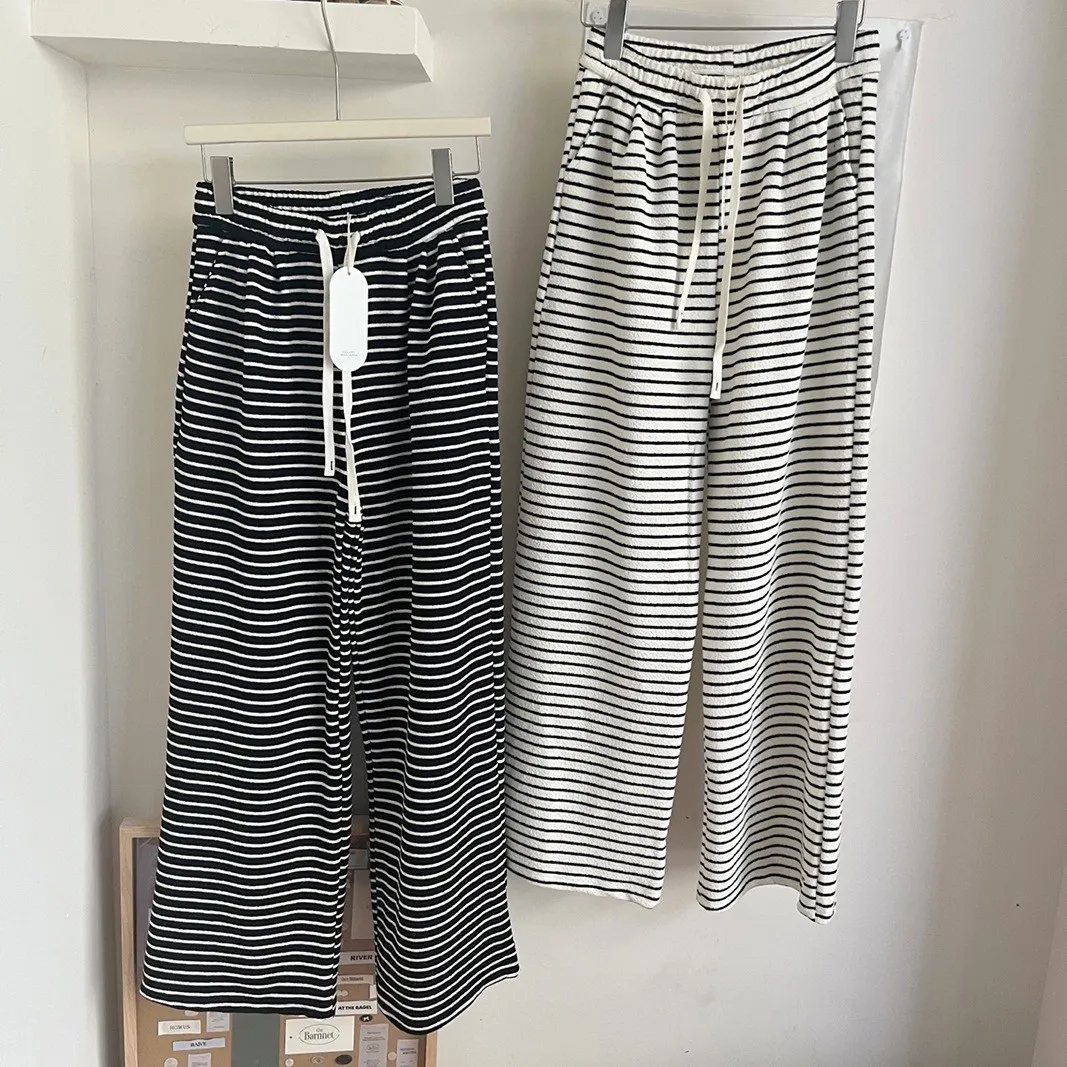 【條紋慵懶系】韓系毛巾直筒闊腿褲
