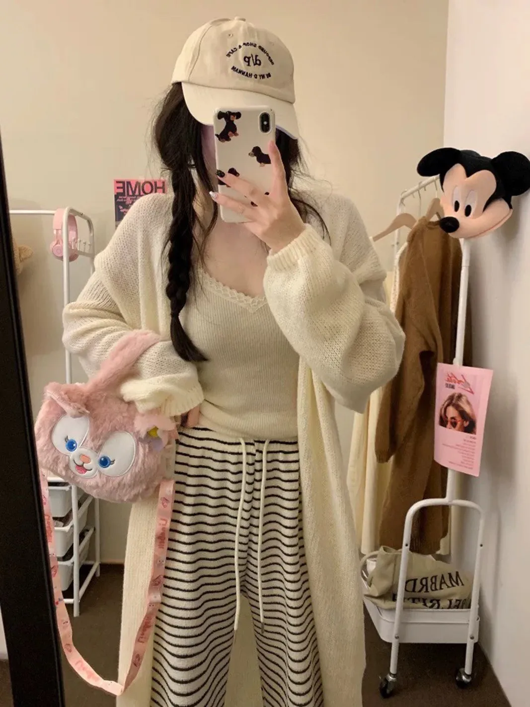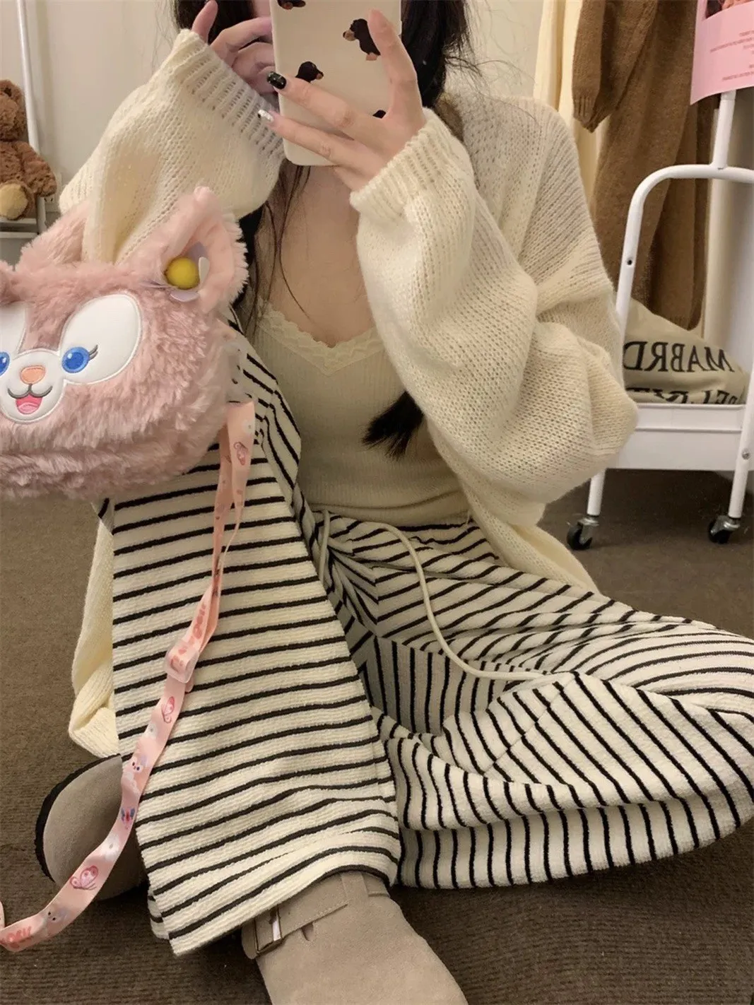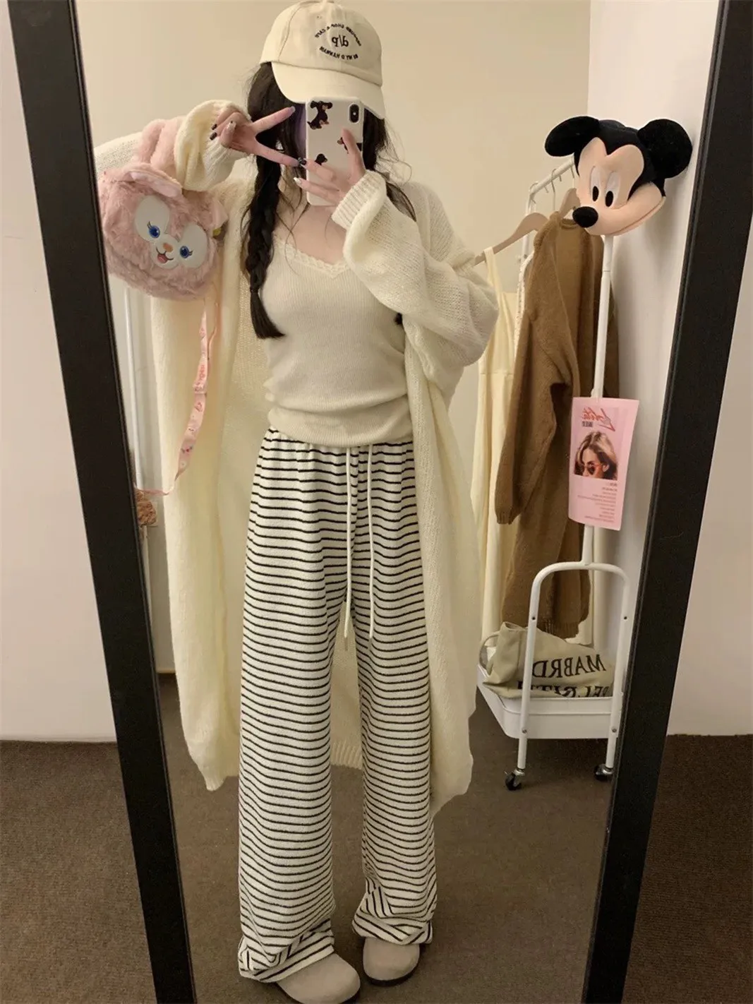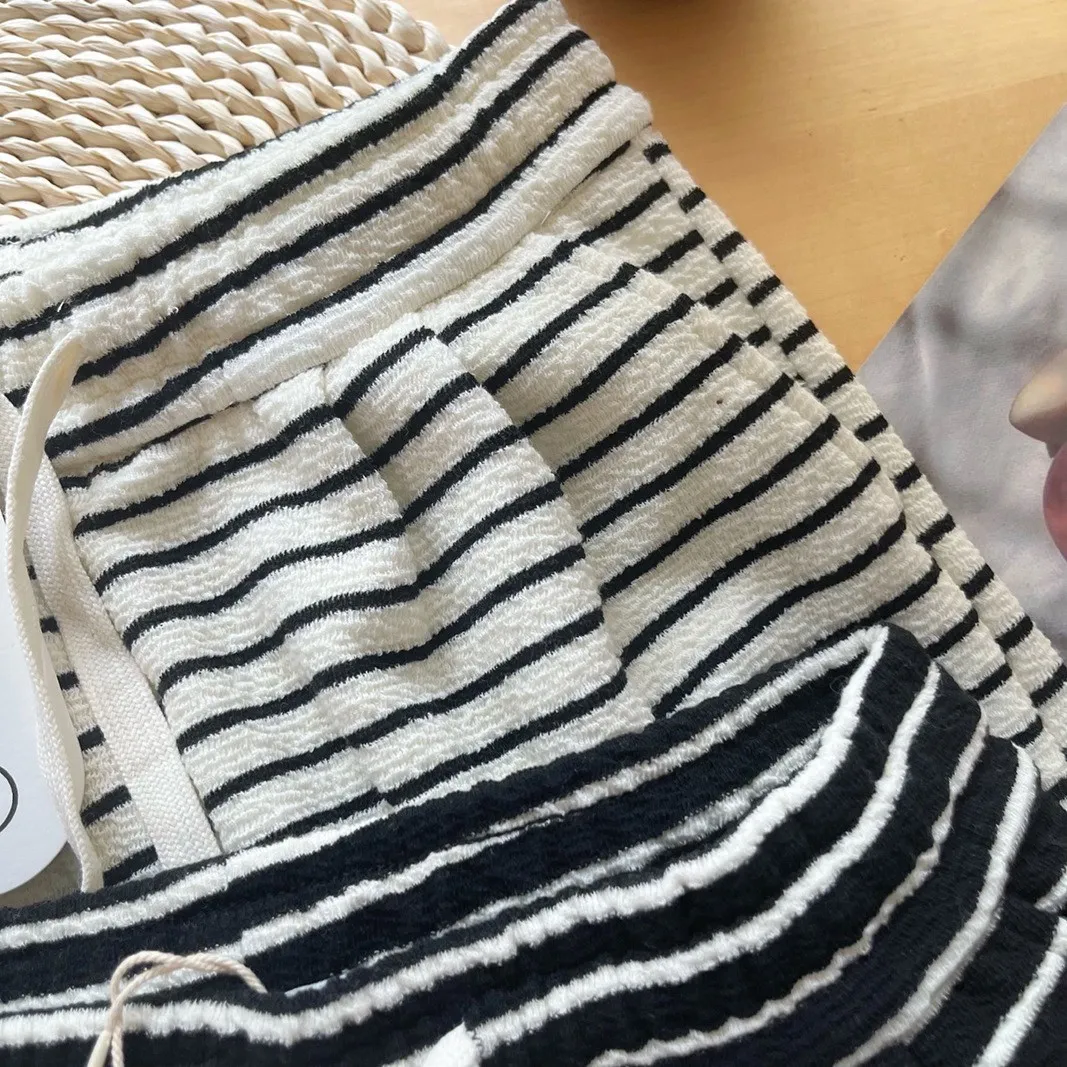 【條紋慵懶系】韓系毛巾直筒闊腿褲