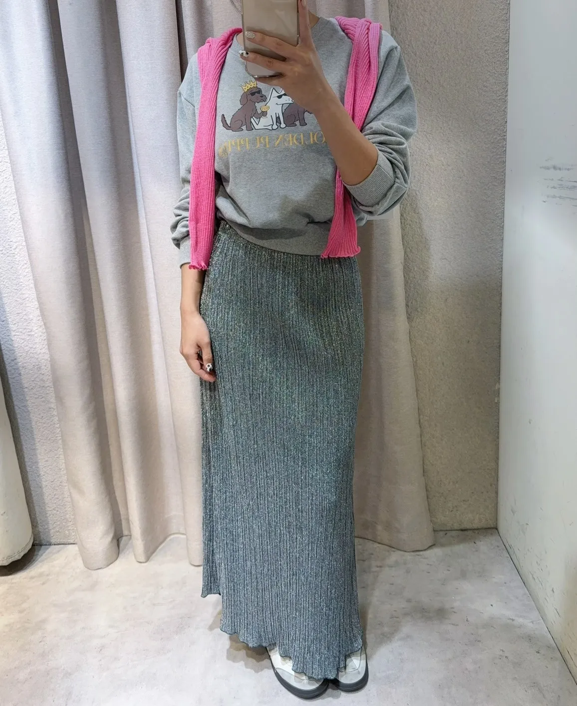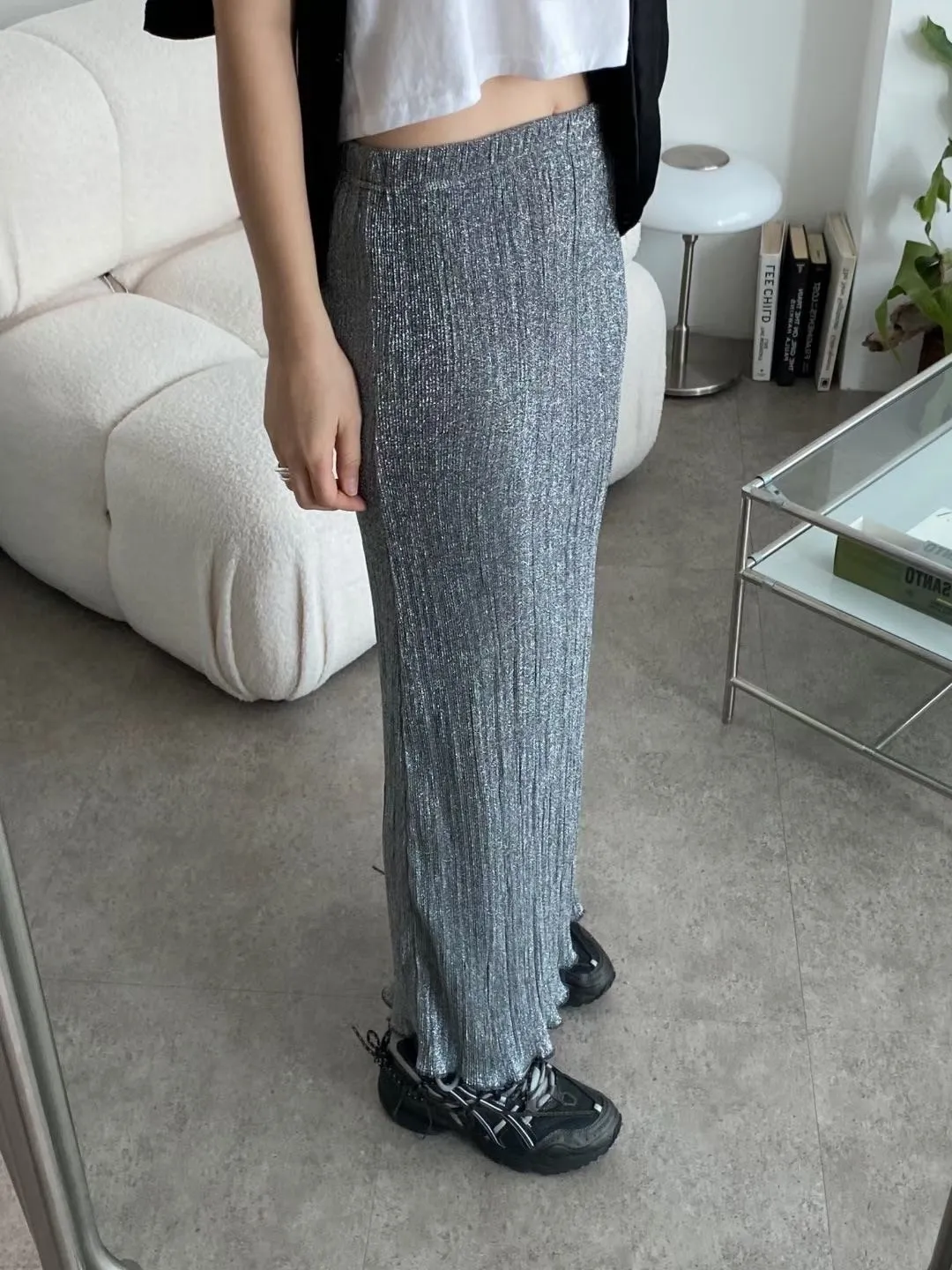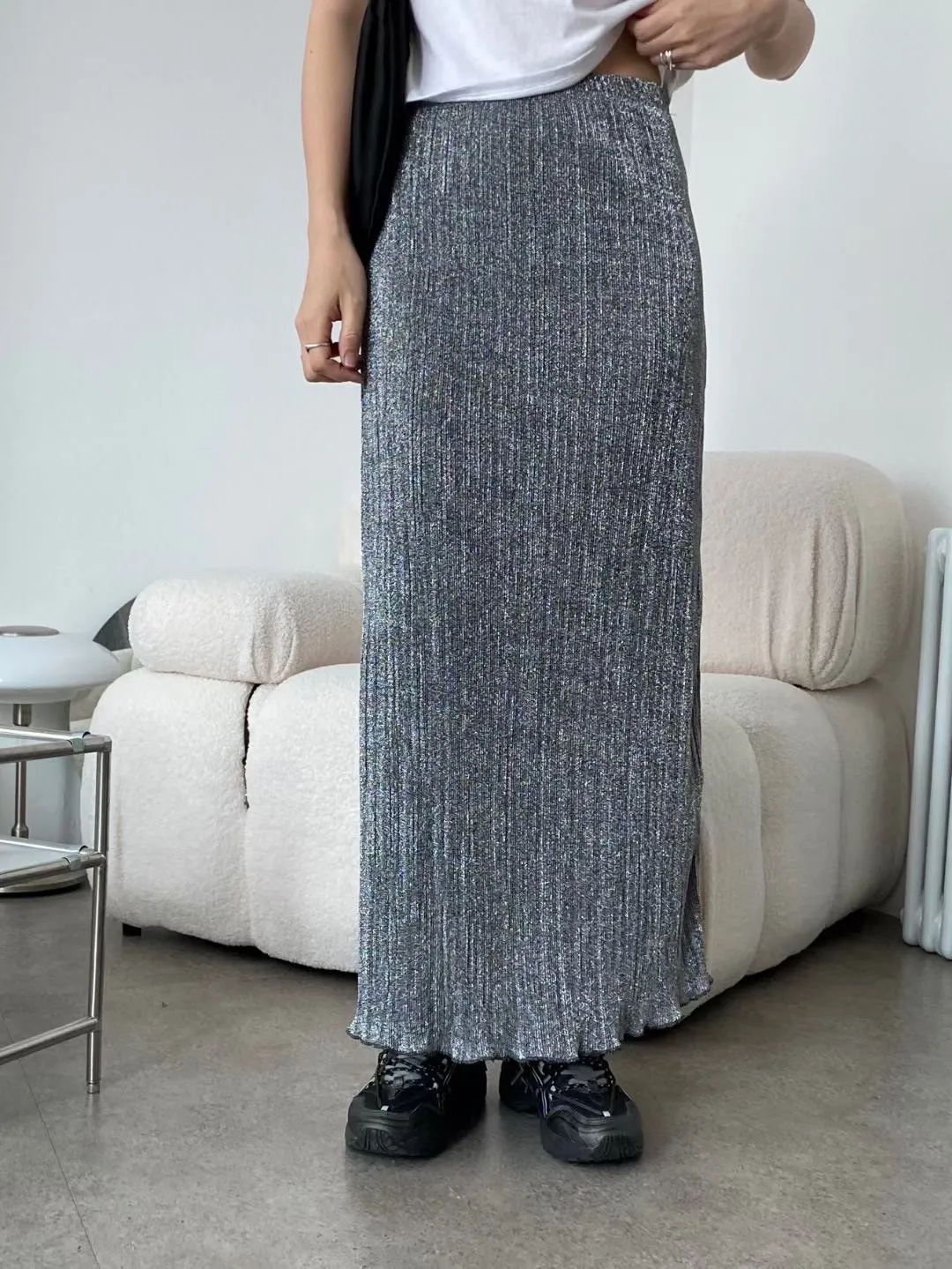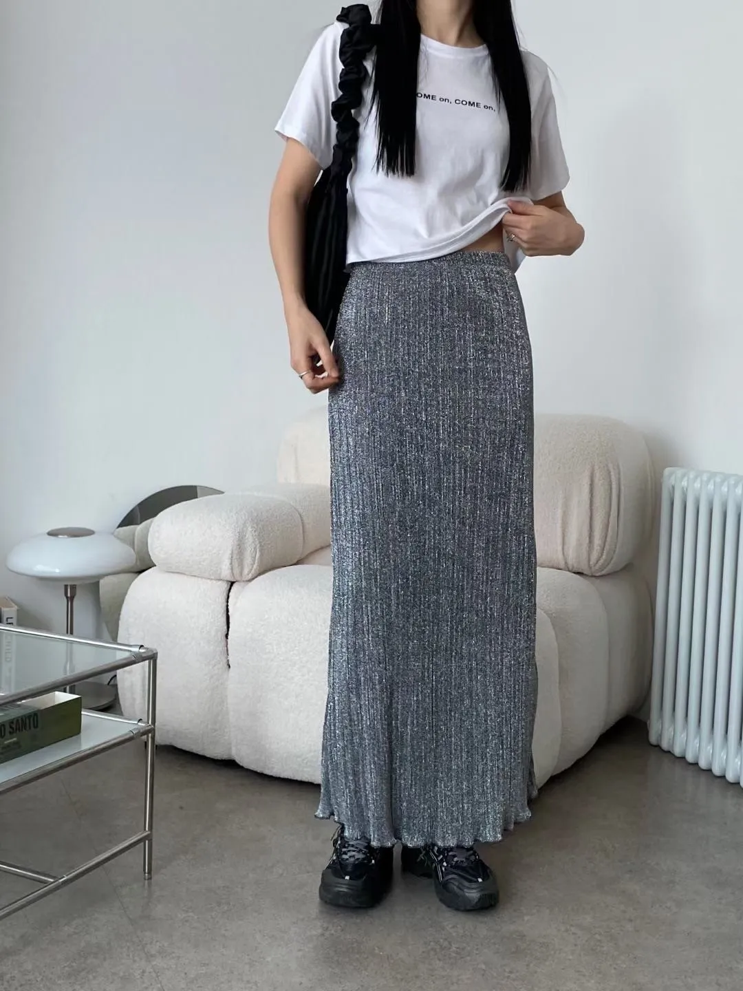 韓國製🇰🇷時髦銀灰色細百摺下擺捲邊長裙