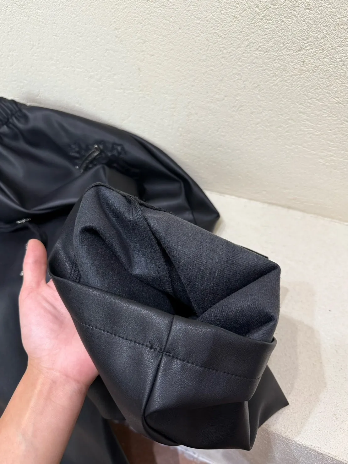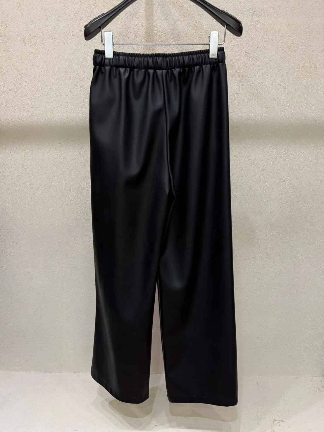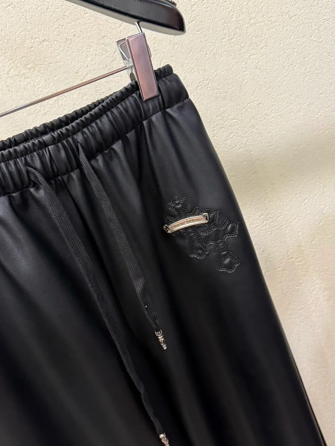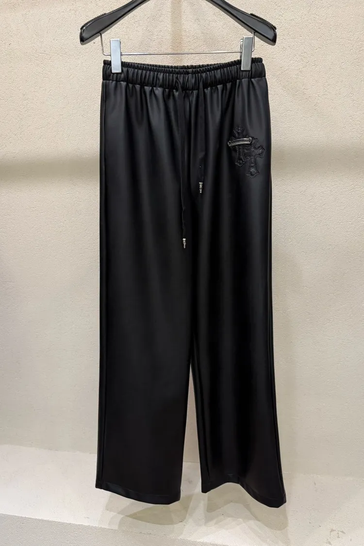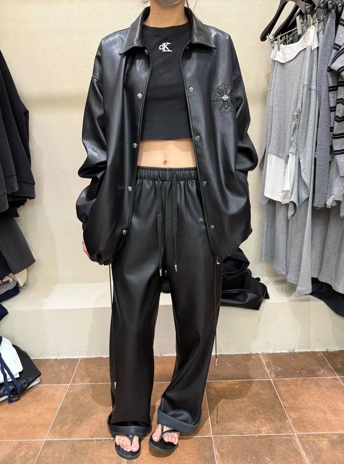 韓國製🇰🇷十字架質感皮革薄刷毛寬褲