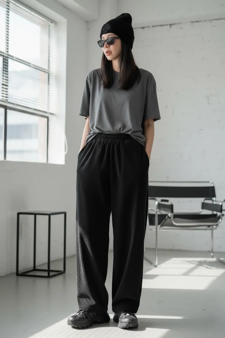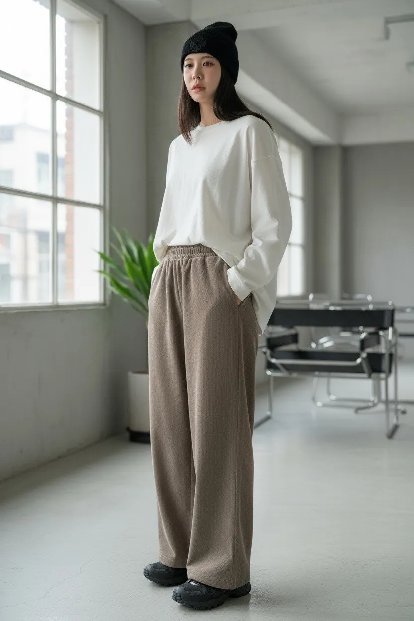 韓國製🇰🇷滑順絨感垂墜休閒絨布褲
