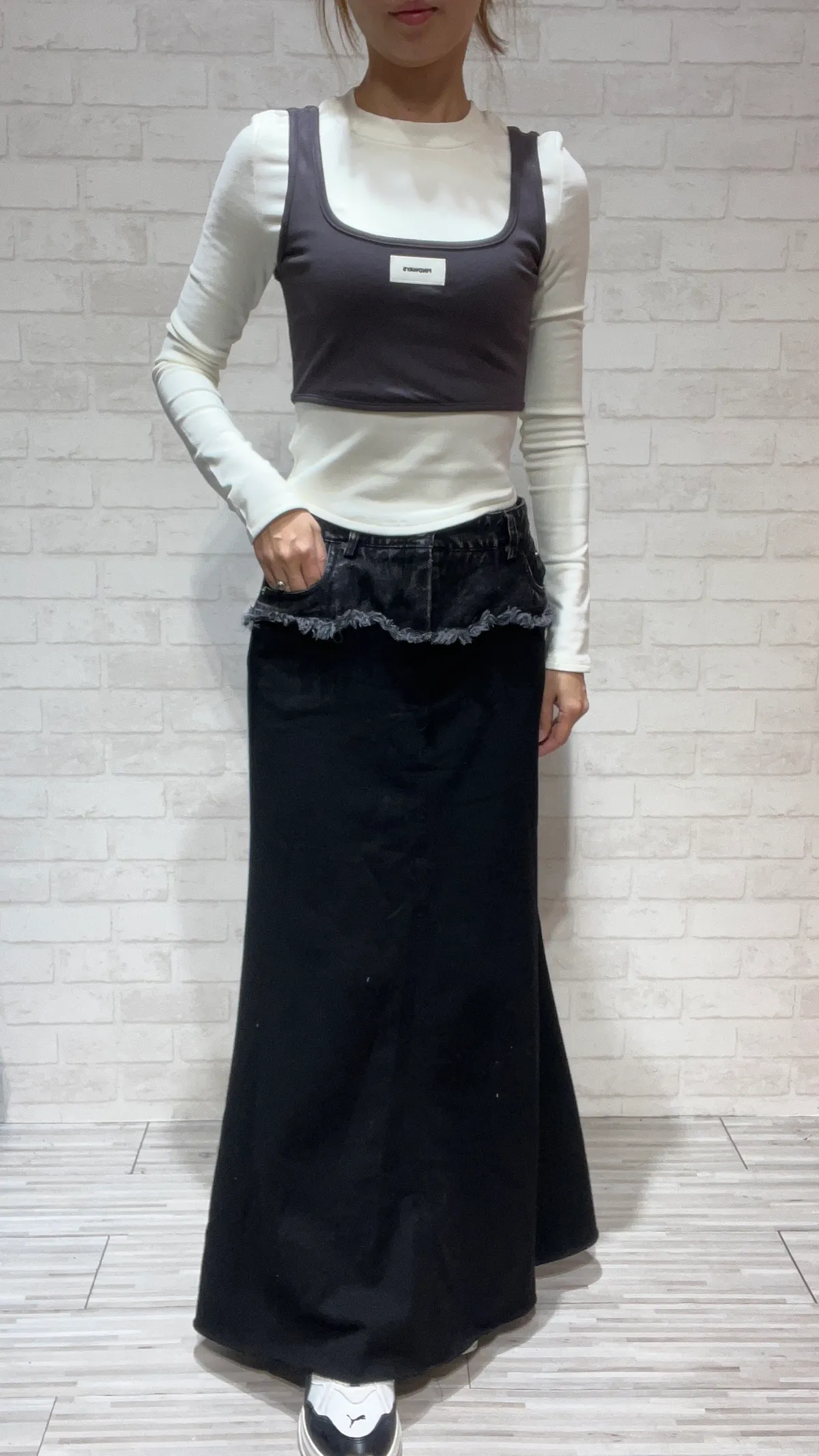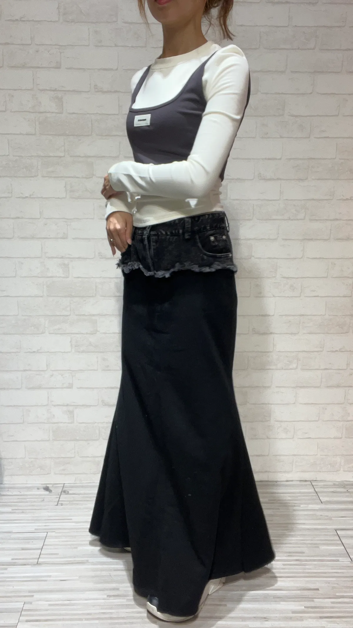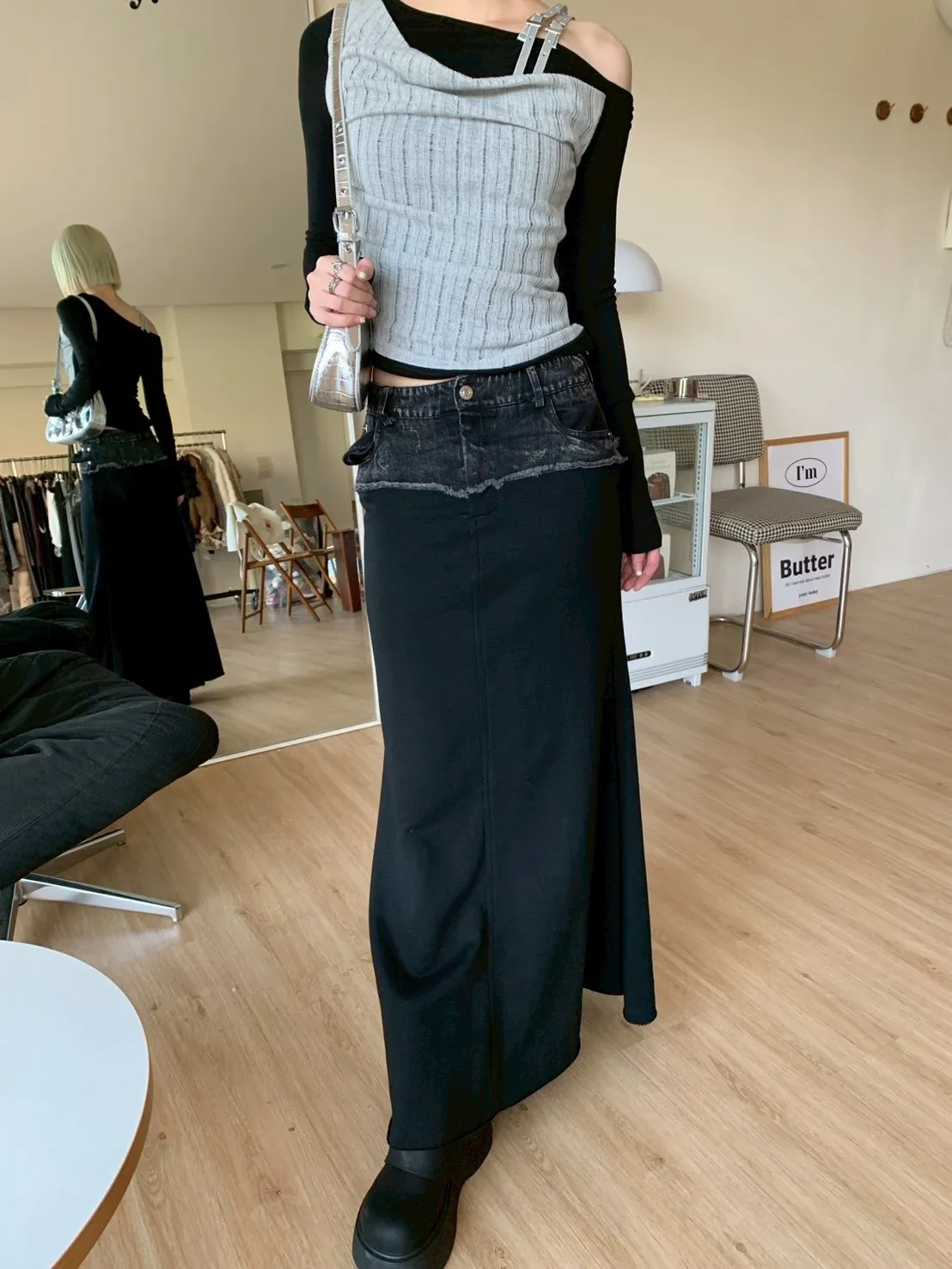【美式混血】牛仔拼接超彈魚尾長裙