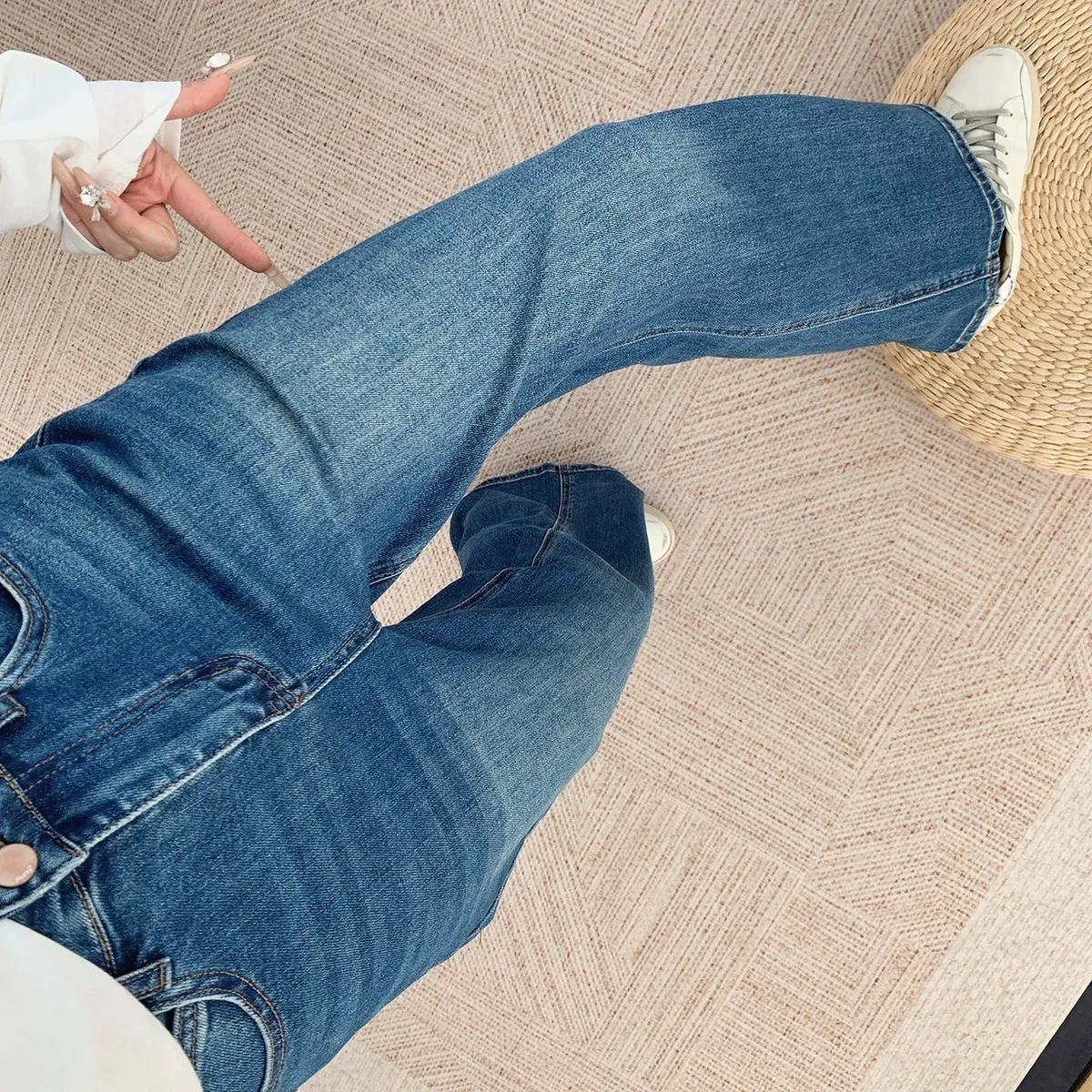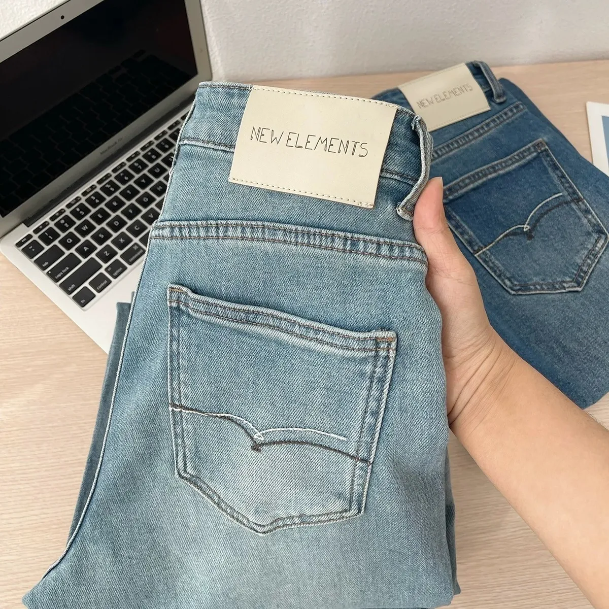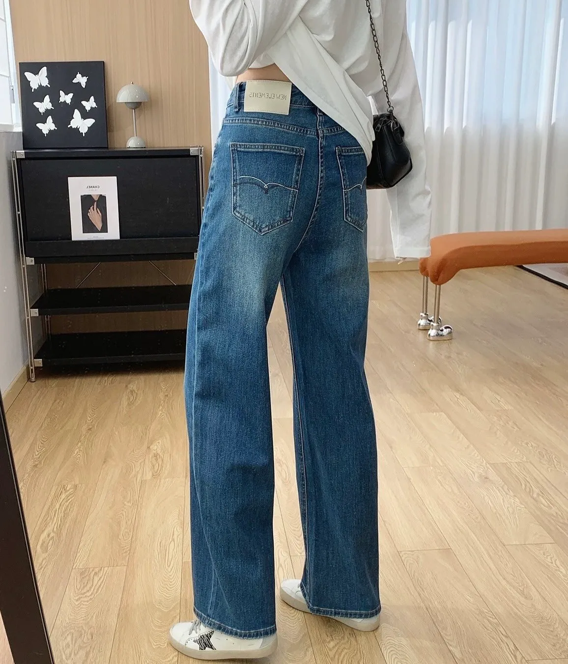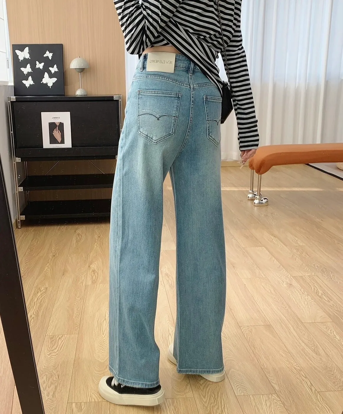 韓國製🇰🇷雙色|好穿家|皮標海鷗線提臀牛仔寬褲S-XL