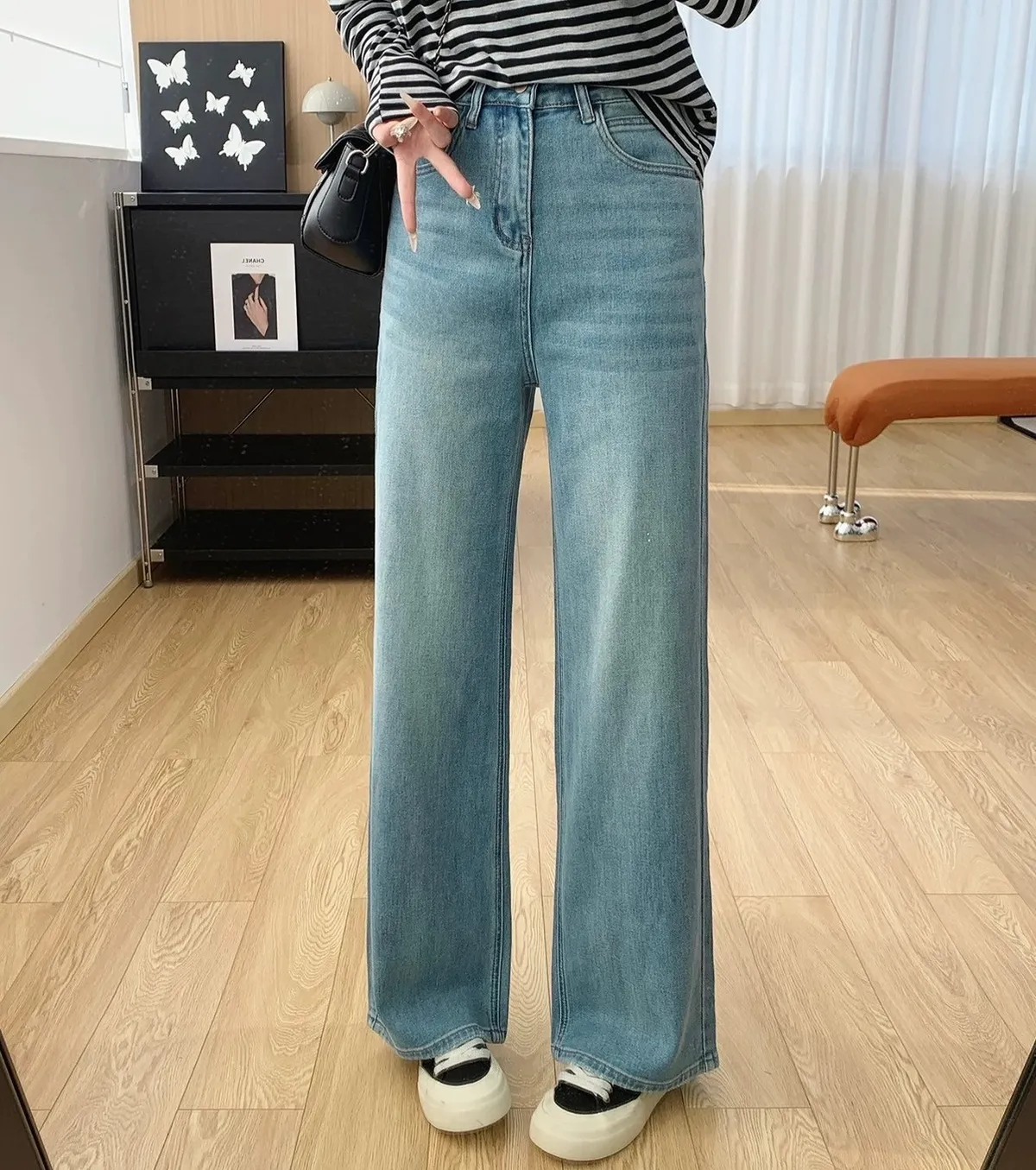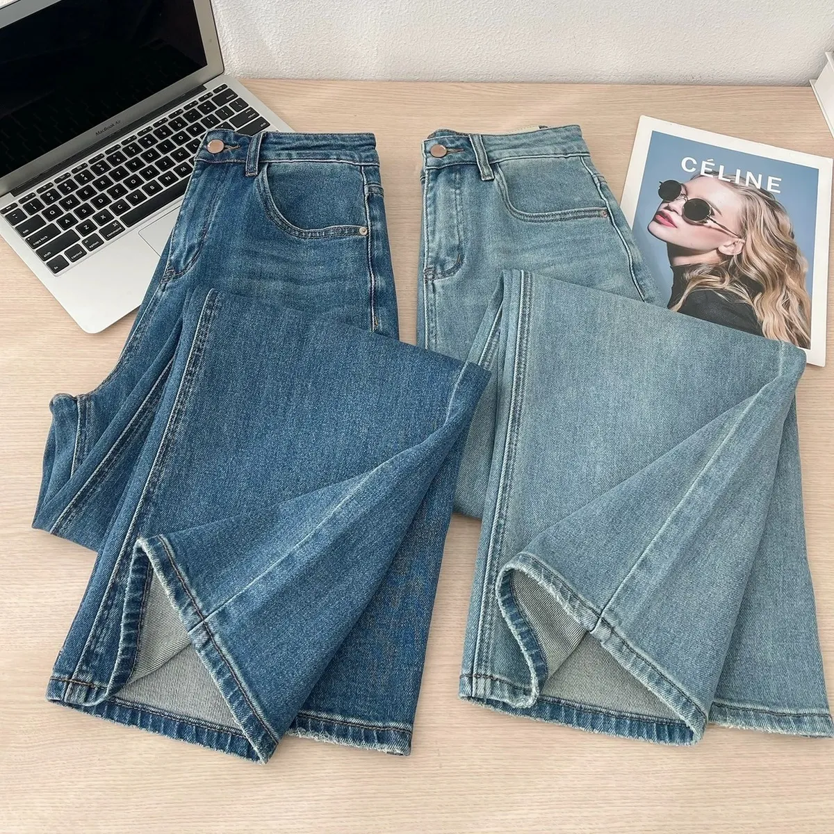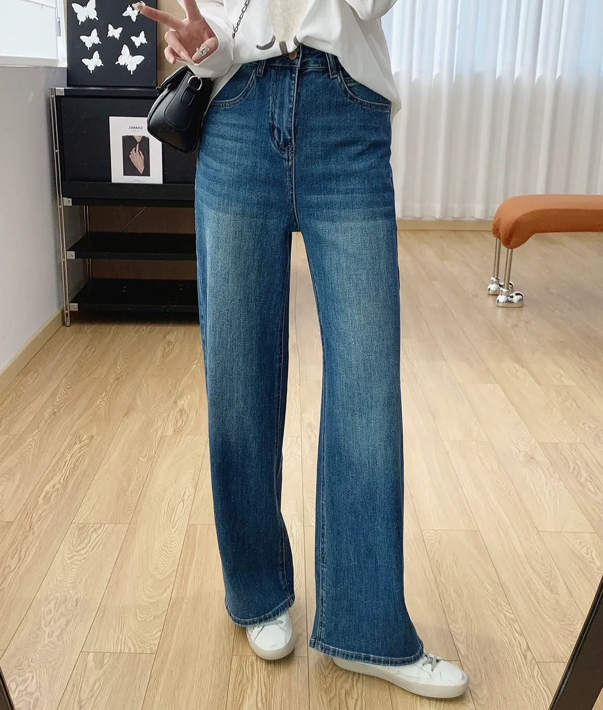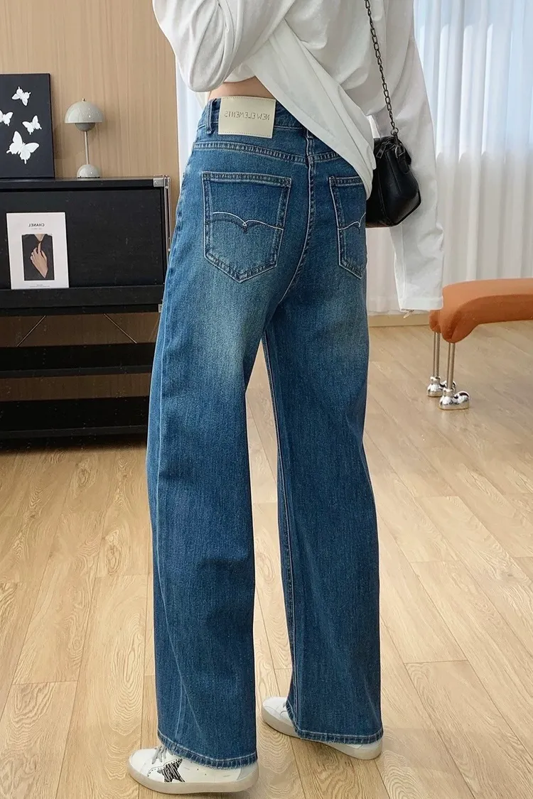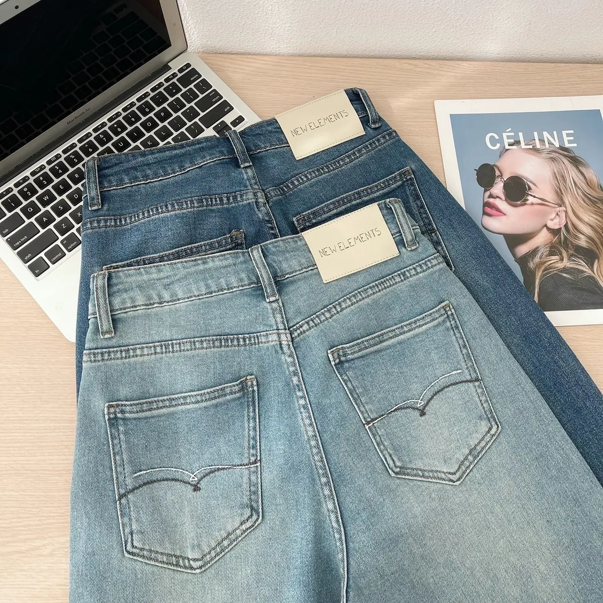 韓國製🇰🇷雙色|好穿家|皮標海鷗線提臀牛仔寬褲S-XL