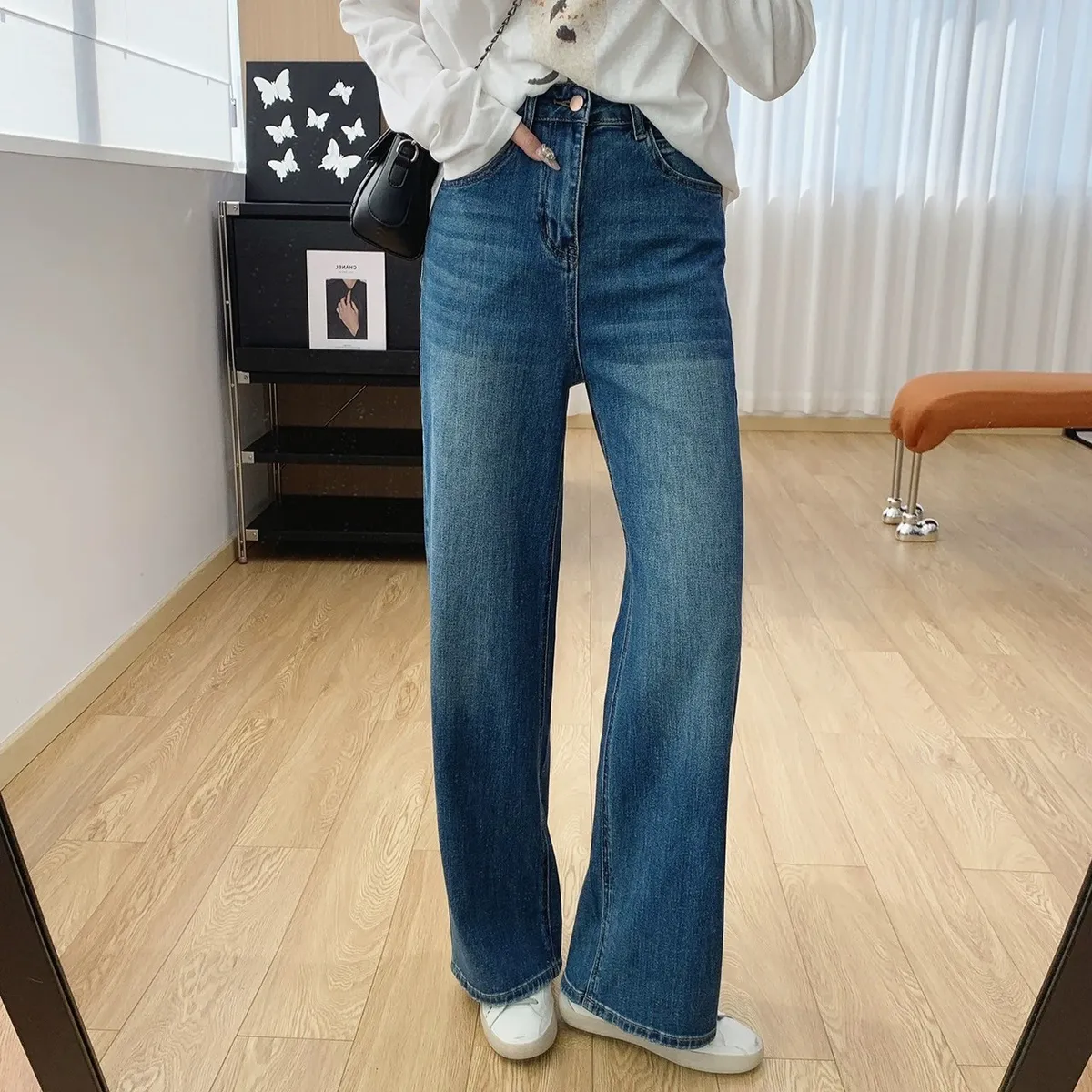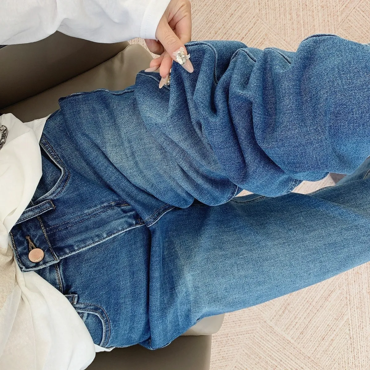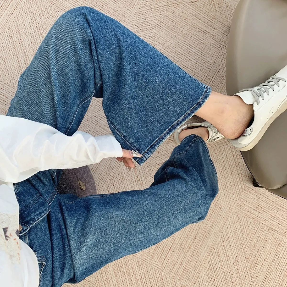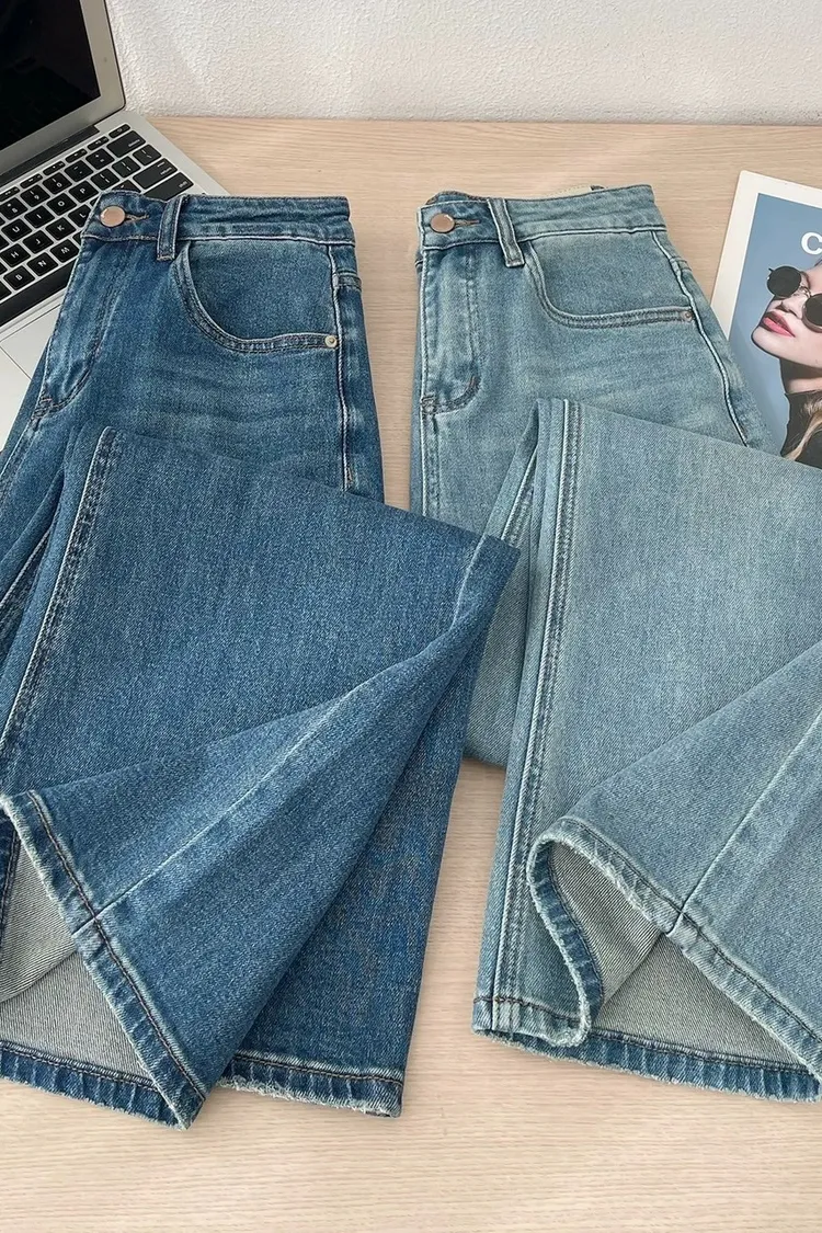 韓國製🇰🇷雙色|好穿家|皮標海鷗線提臀牛仔寬褲S-XL
