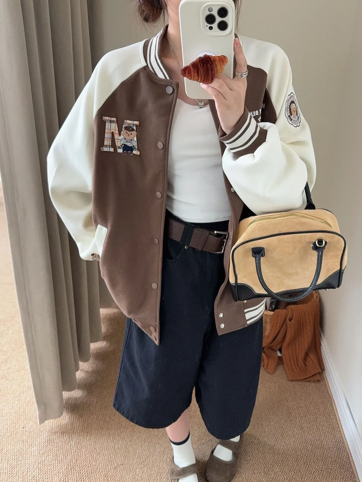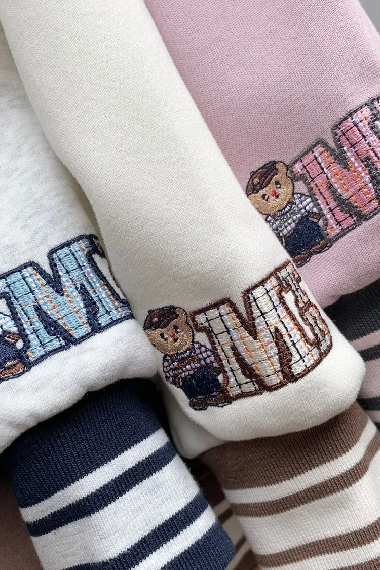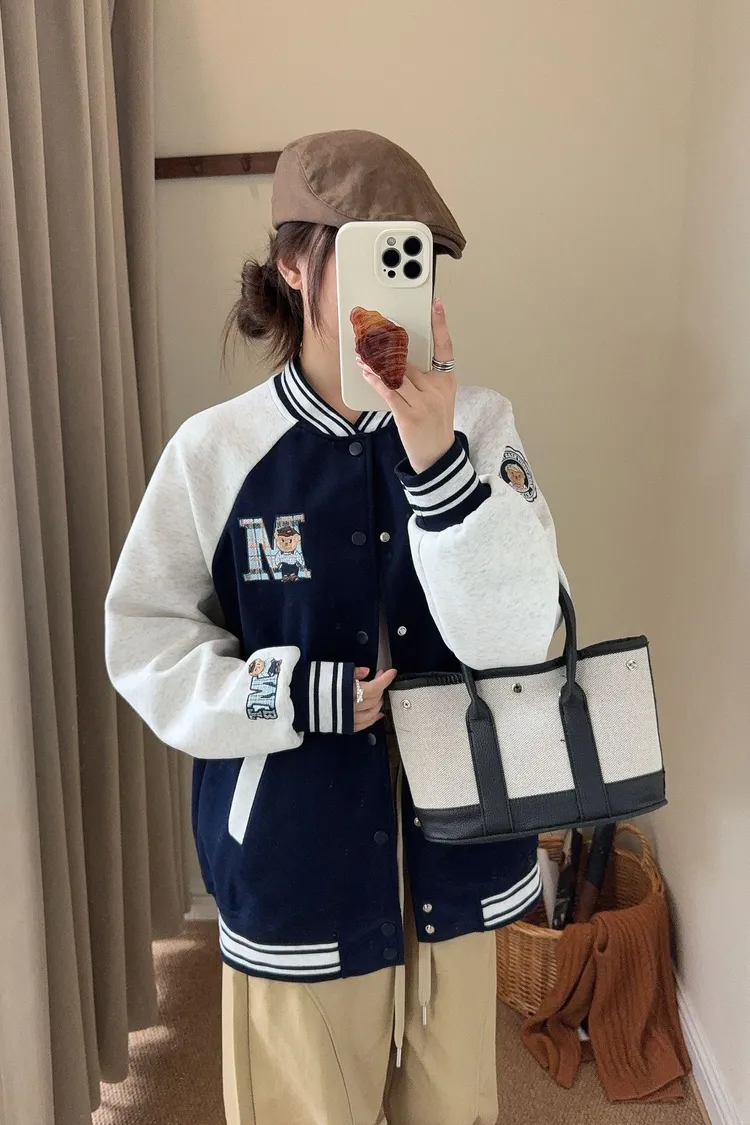 泰迪熊撞色拼接,讓休閒多了小巧思