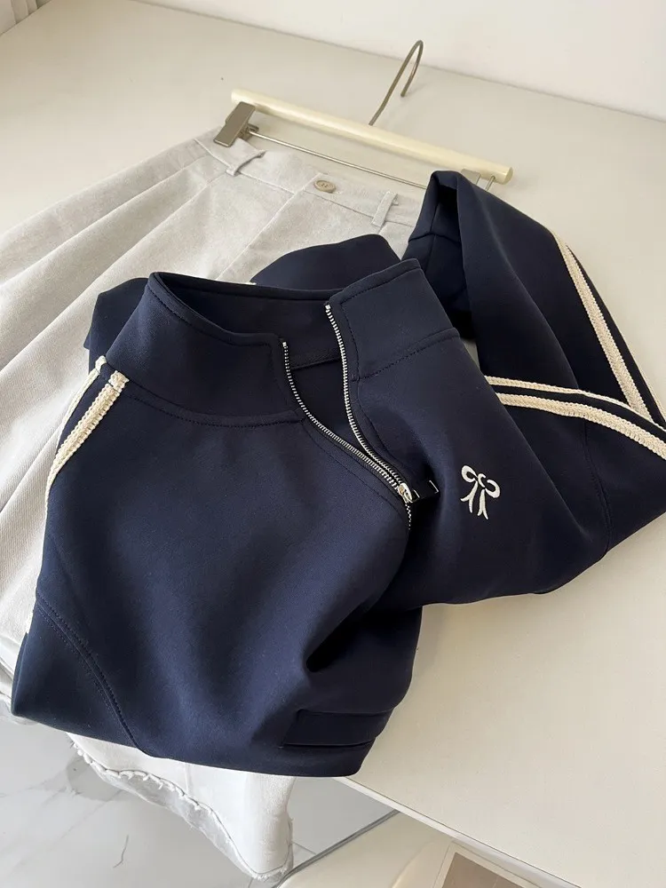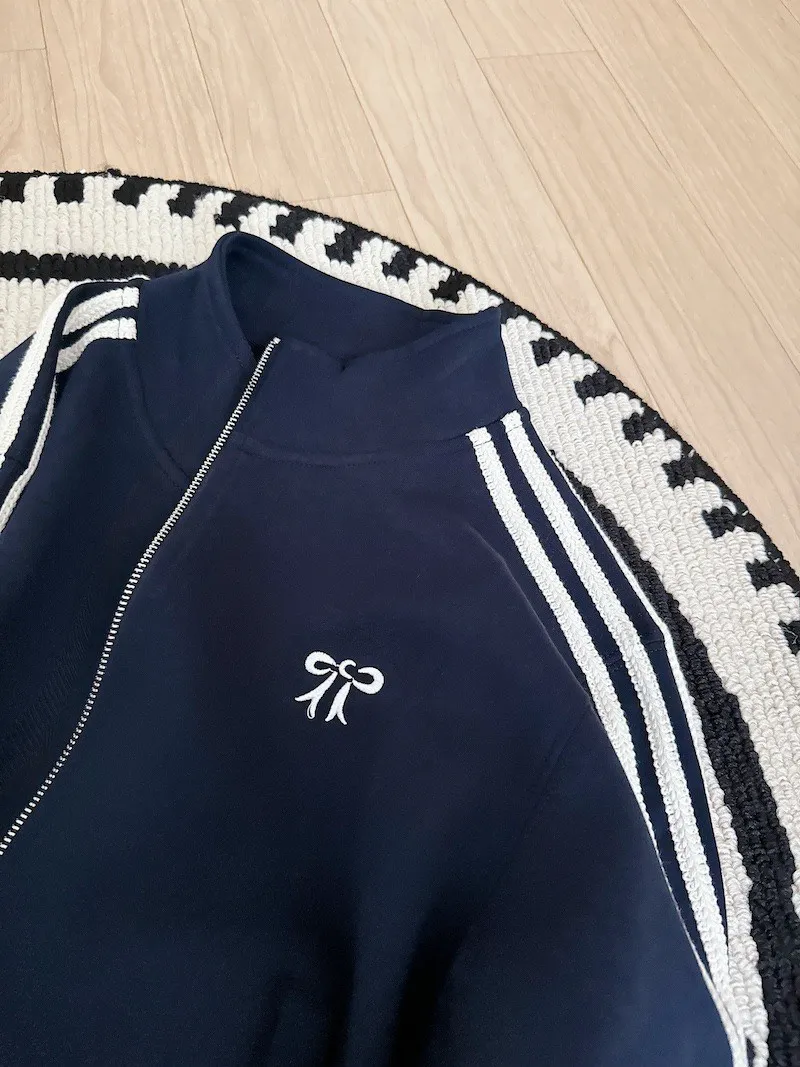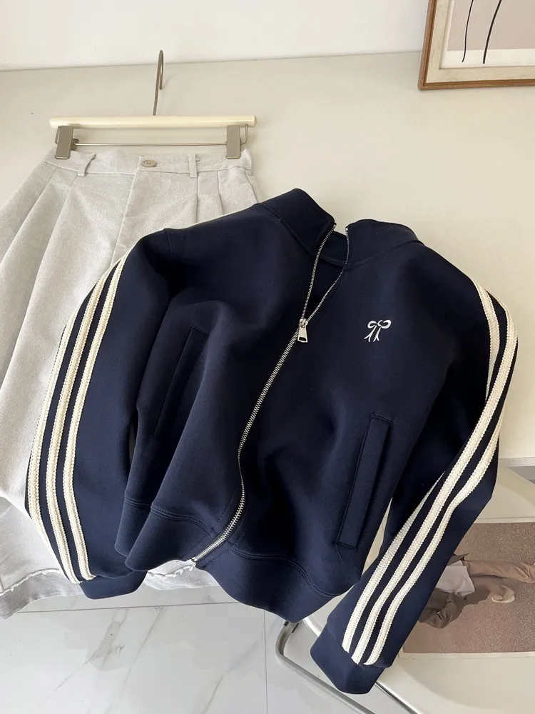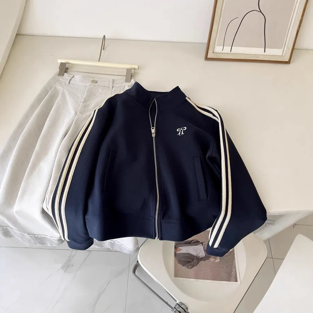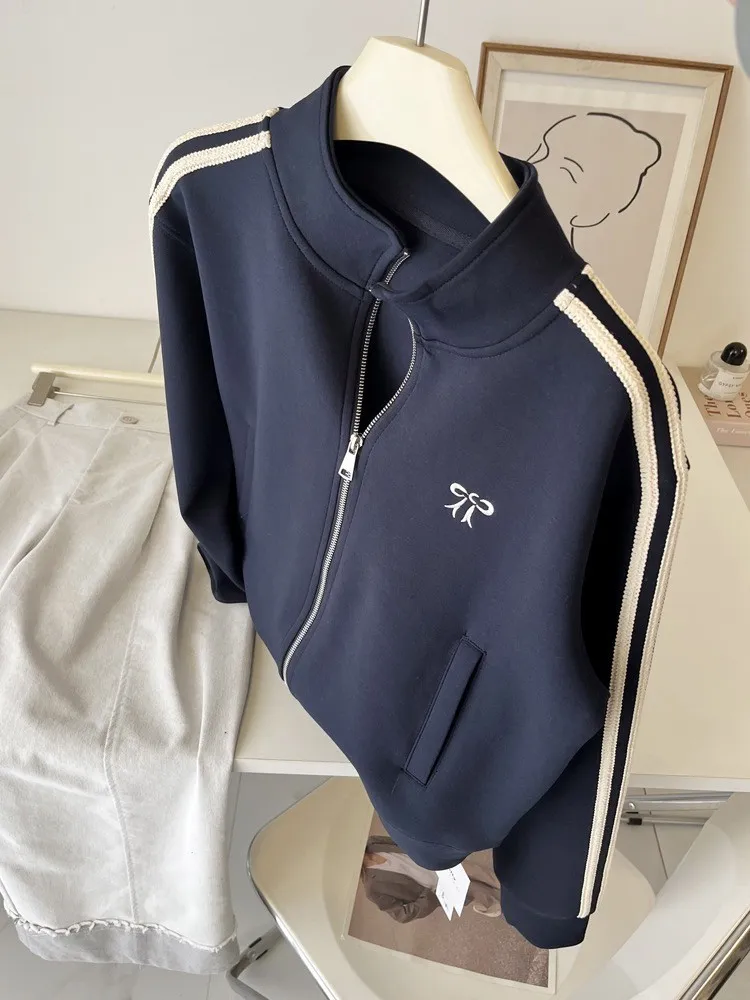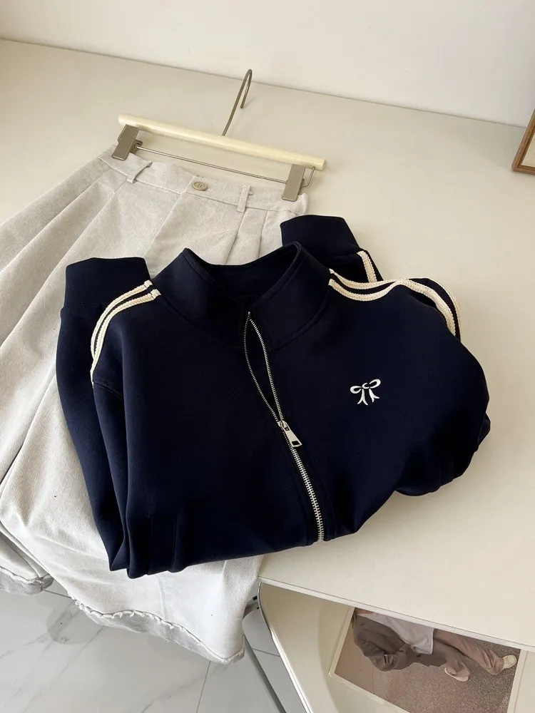 【蝴蝶結刺繡】短版立領太空棉休閒外套