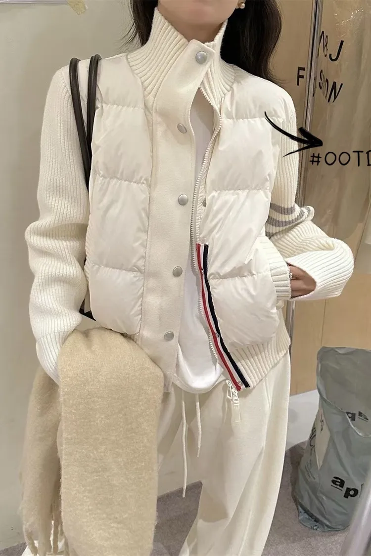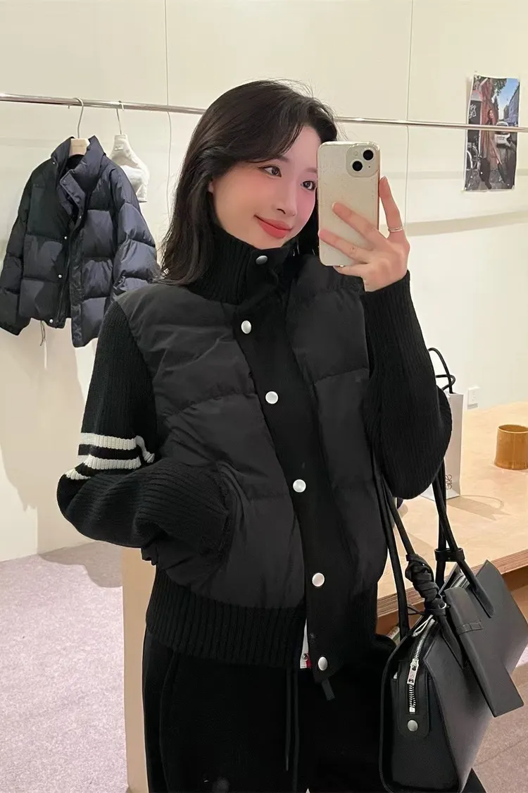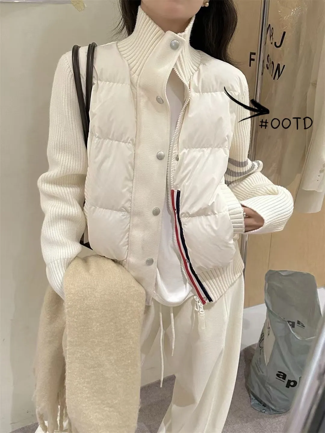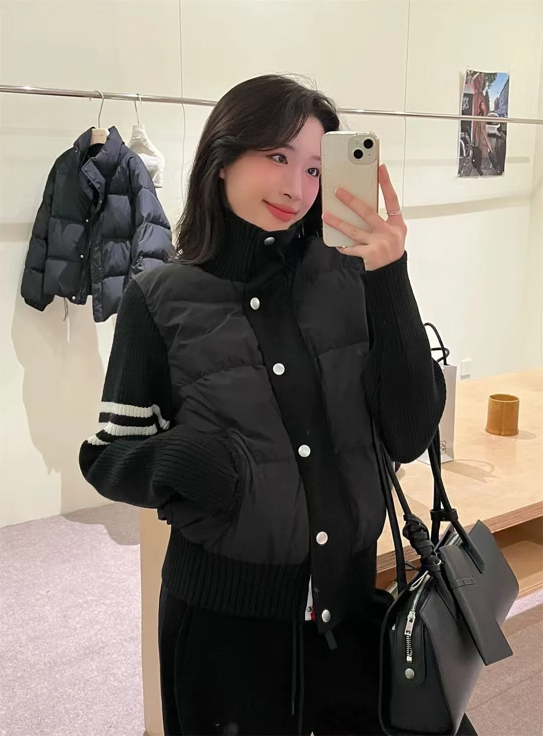 【絨織防風】防風白鴨絨拼接針織立領外套