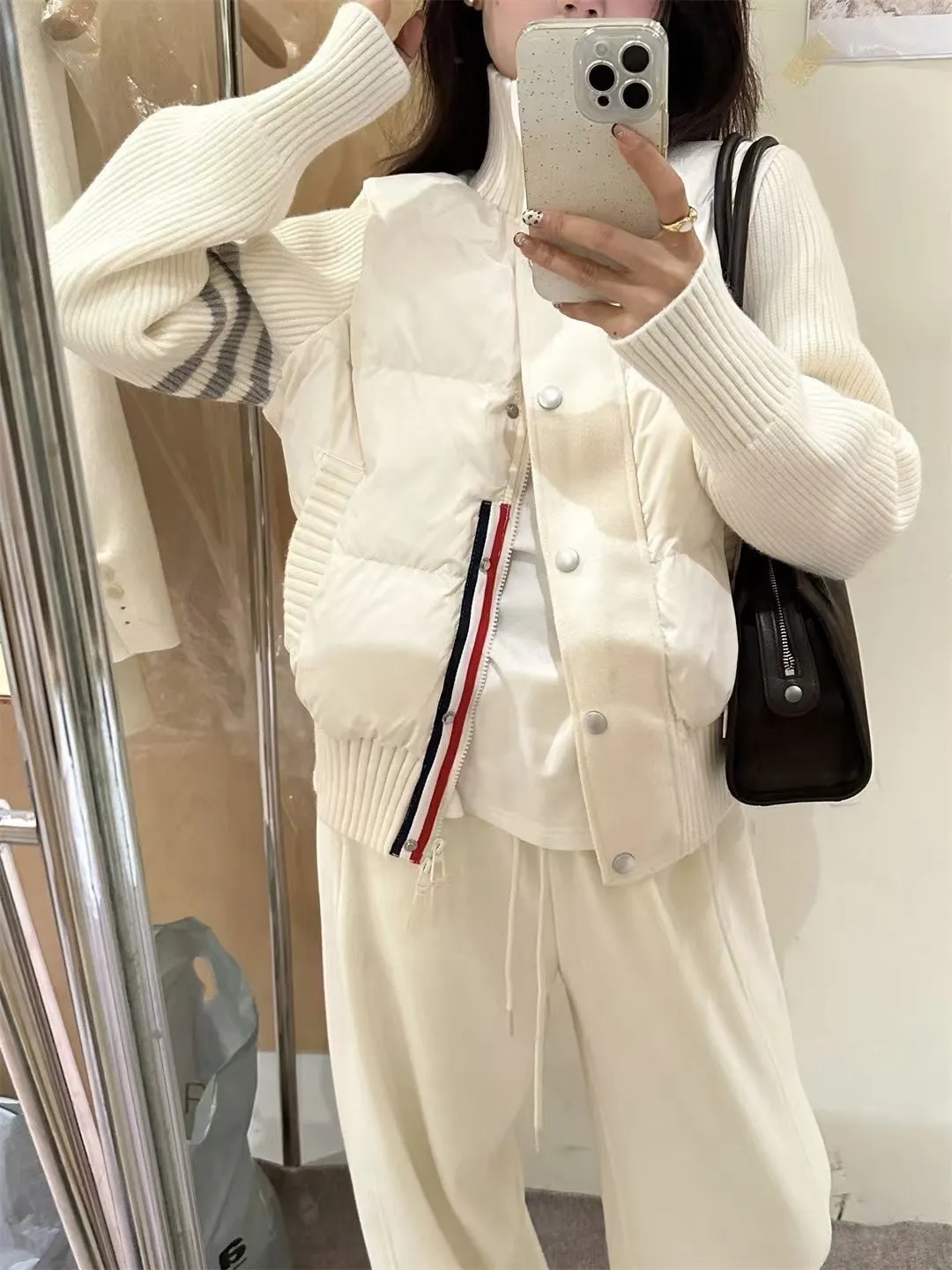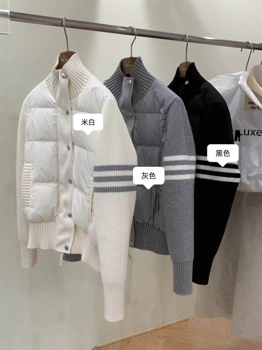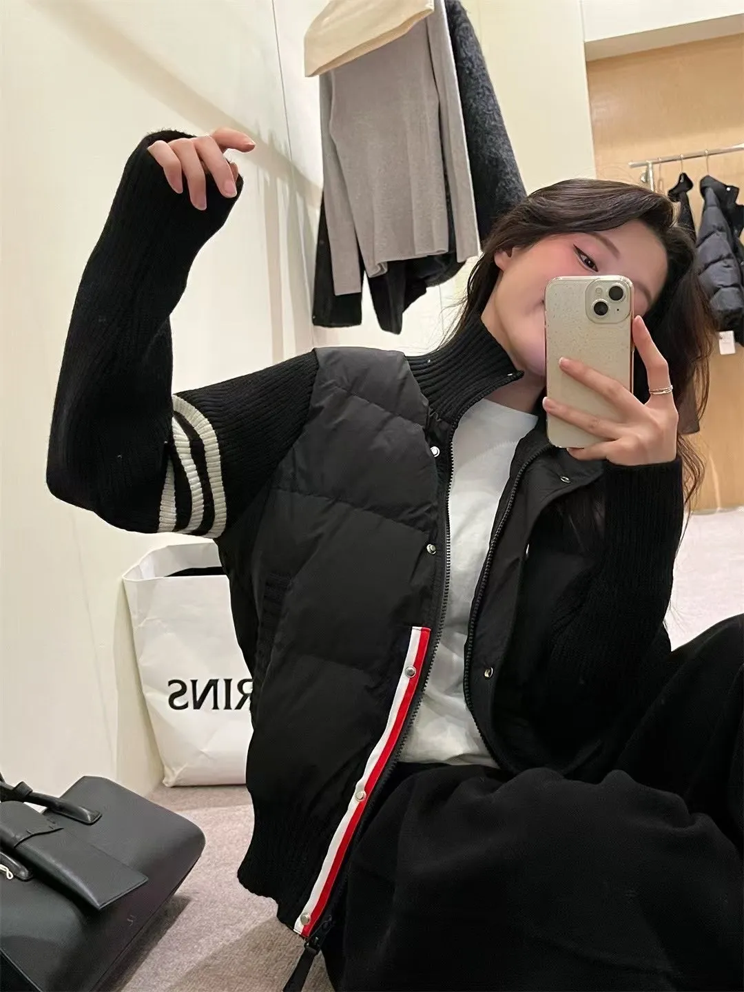 【絨織防風】防風白鴨絨拼接針織立領外套