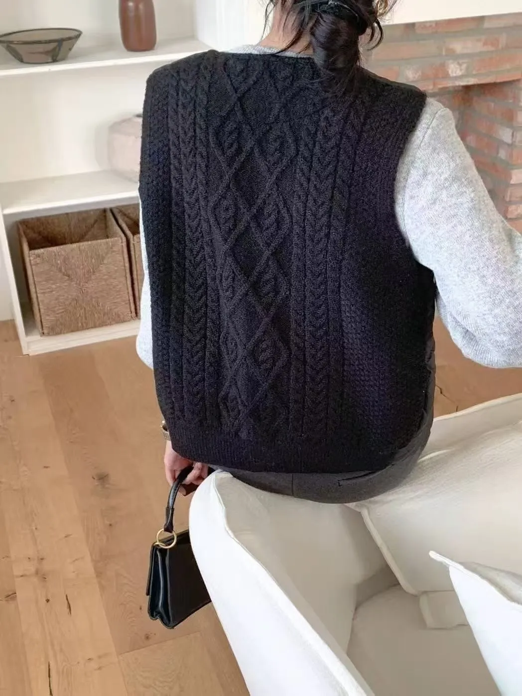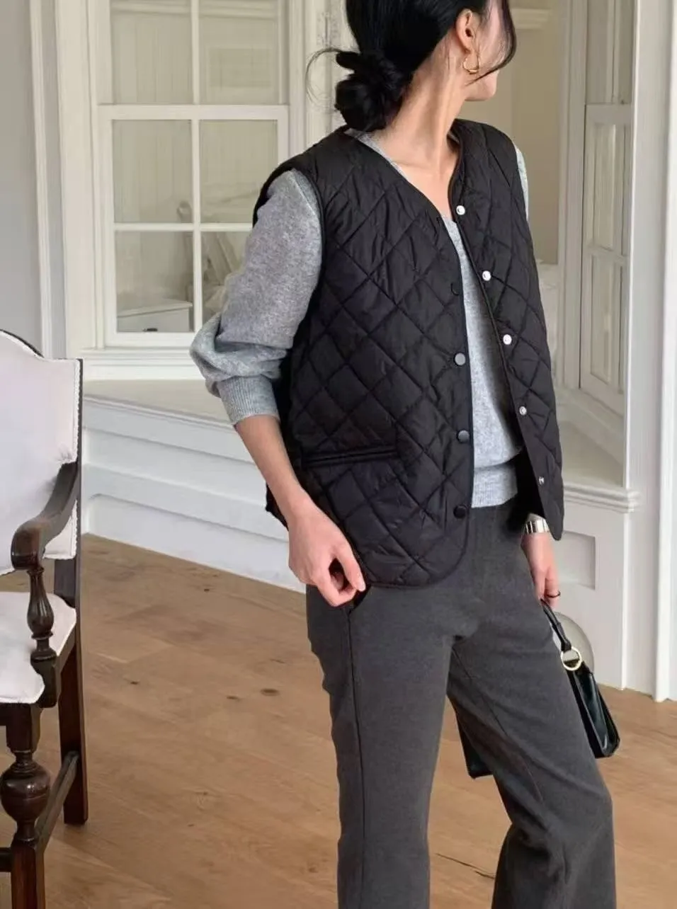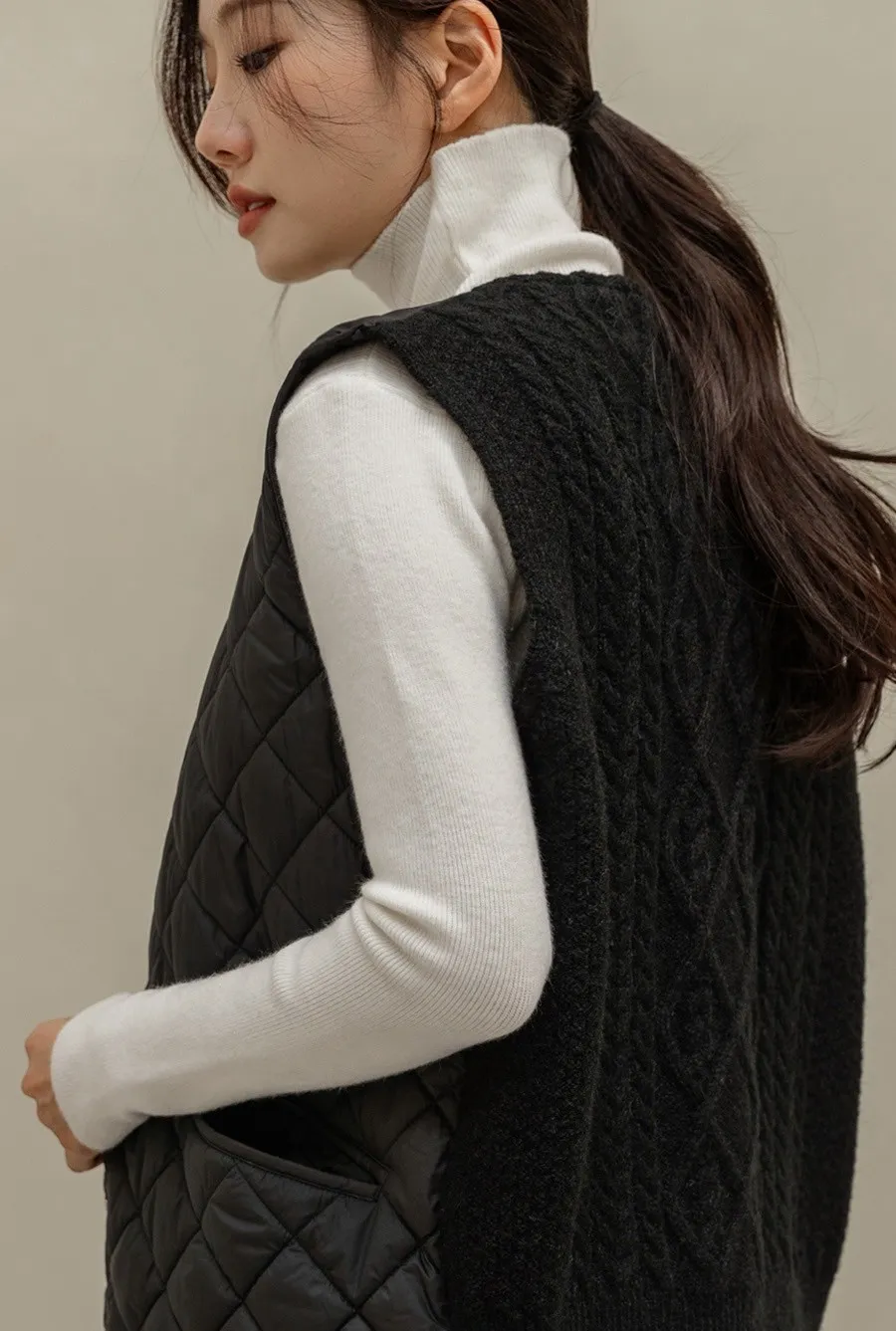 ᴷᴼᴿᴱᴬ겨울韓國正版TH家菱格防風羽絨拼接麻花背心