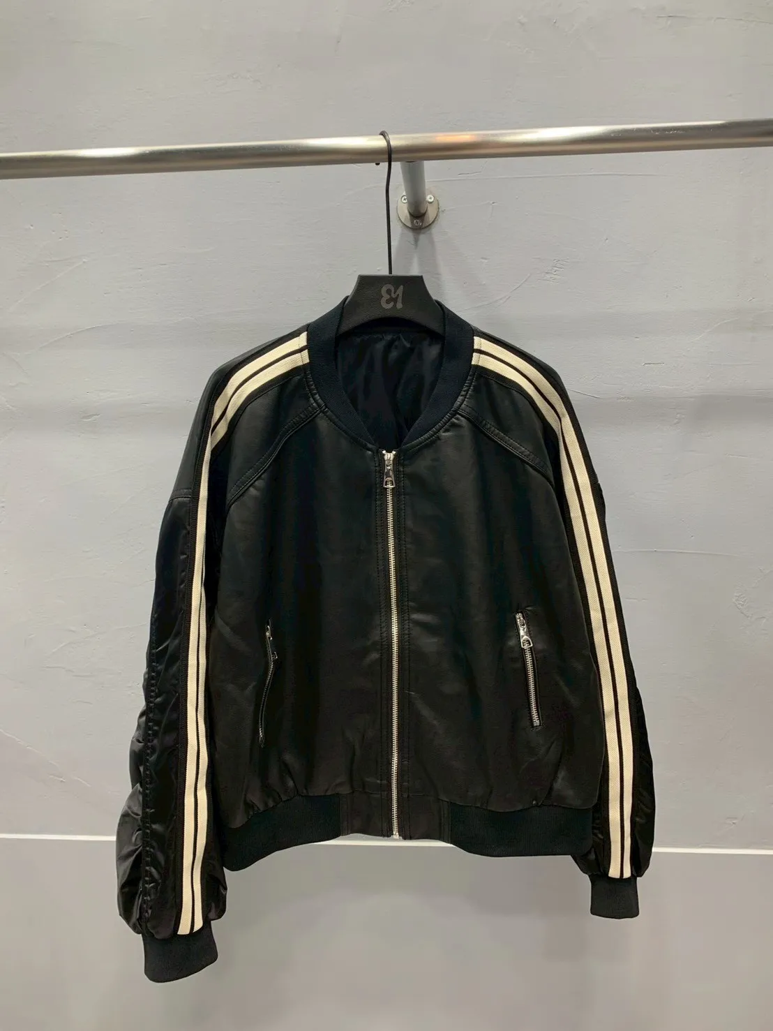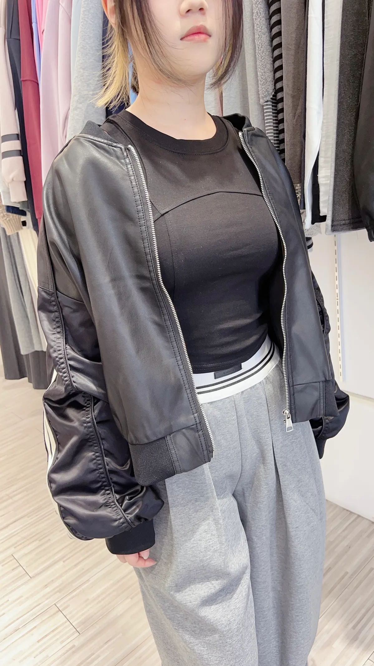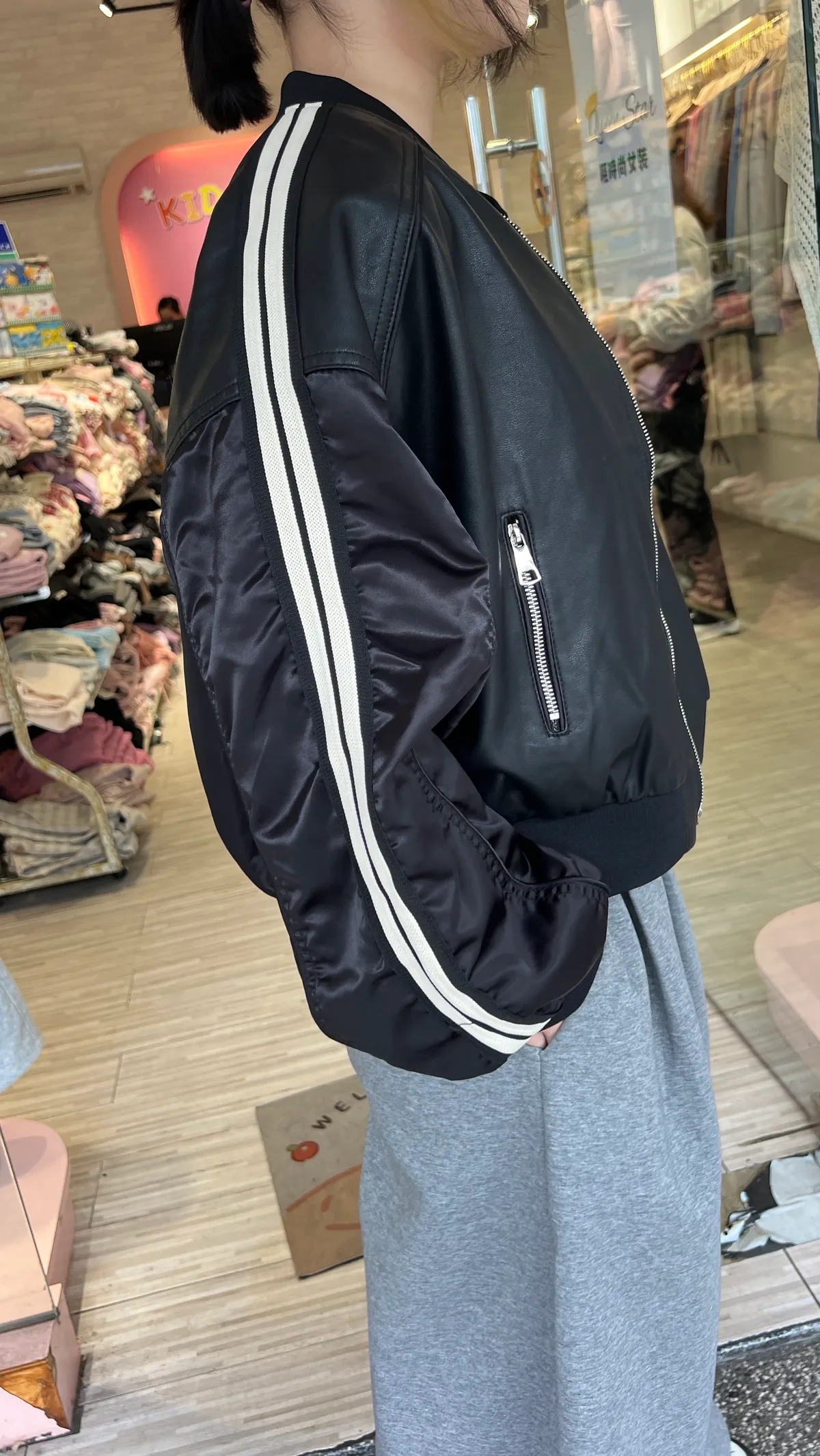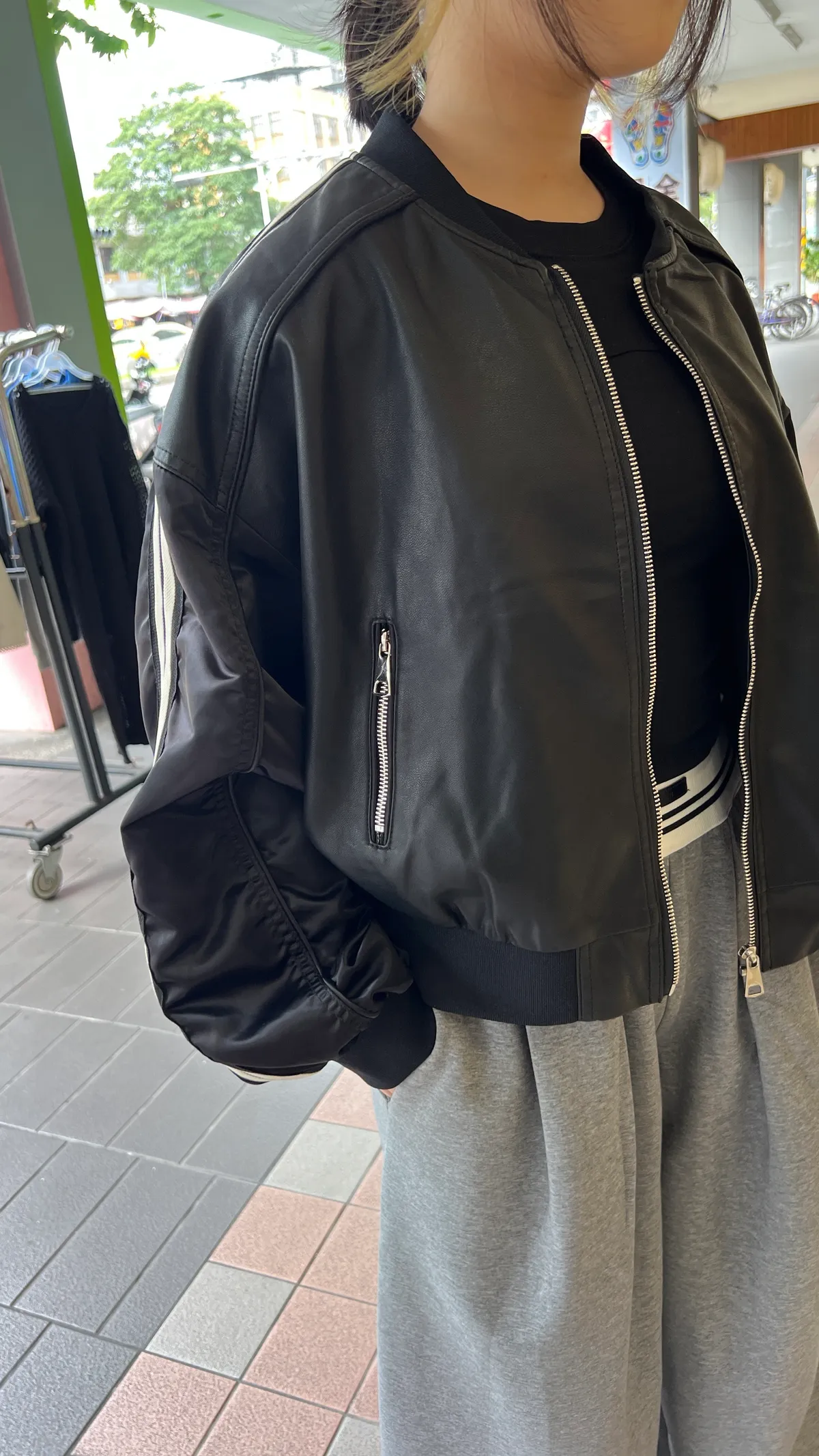 【酷帥有態度】雙線條側抓皺皮革飛行夾克