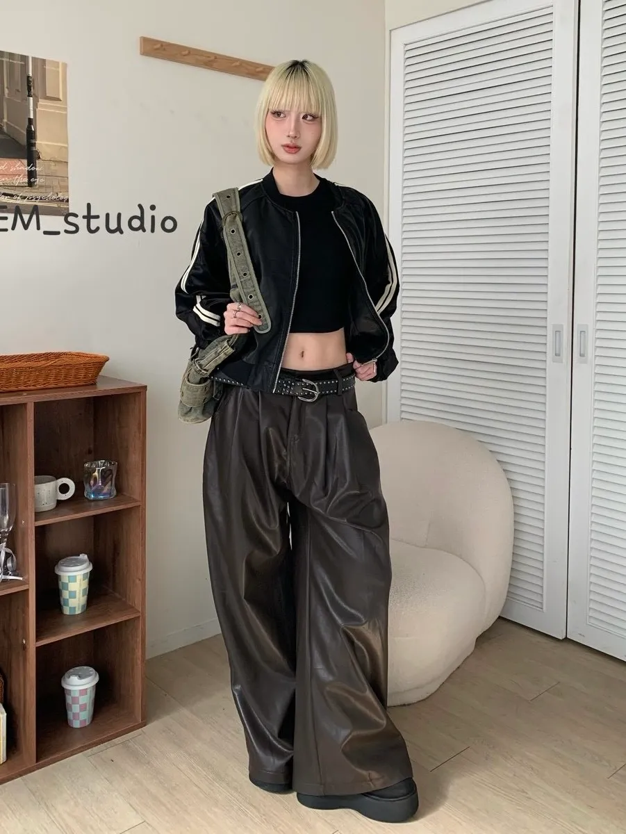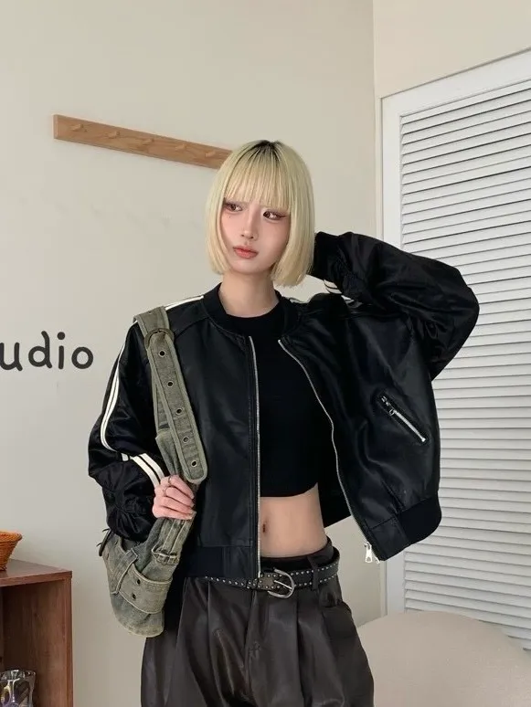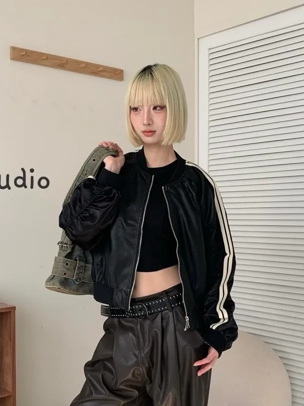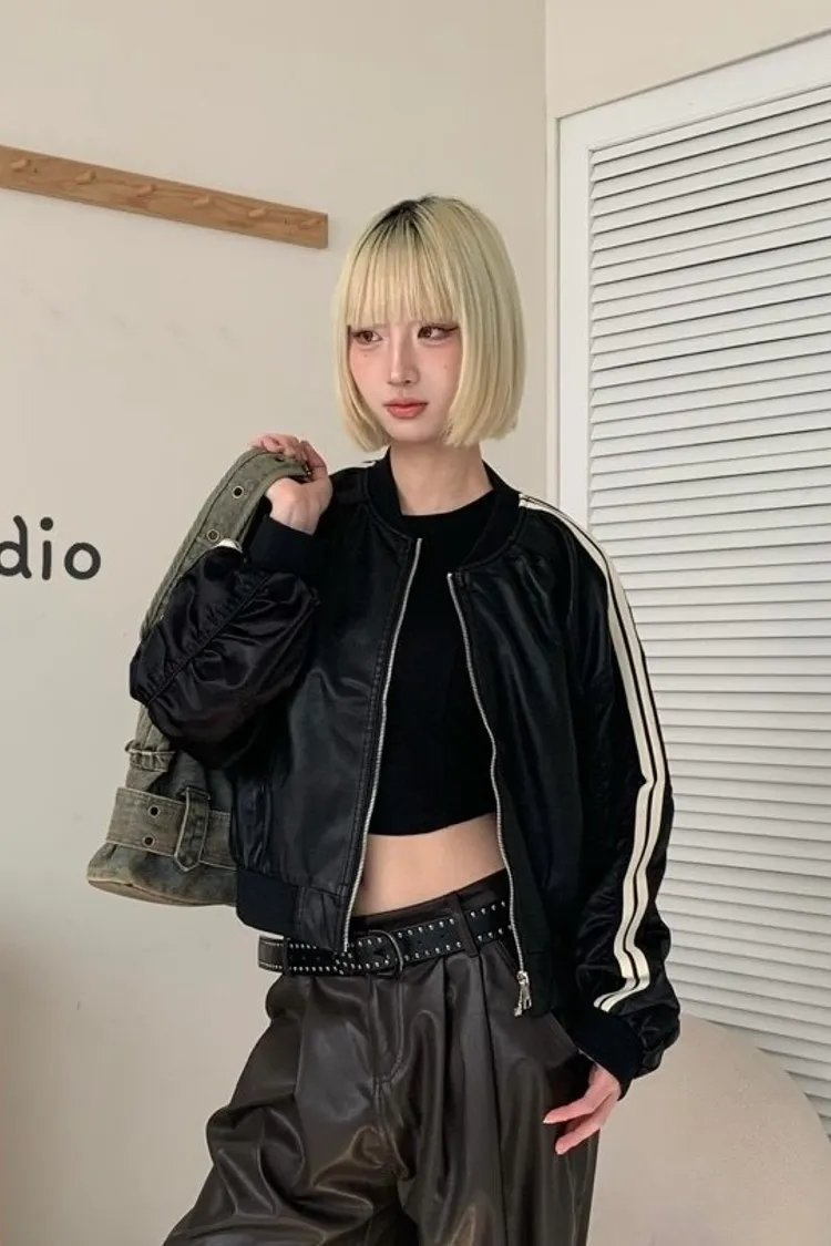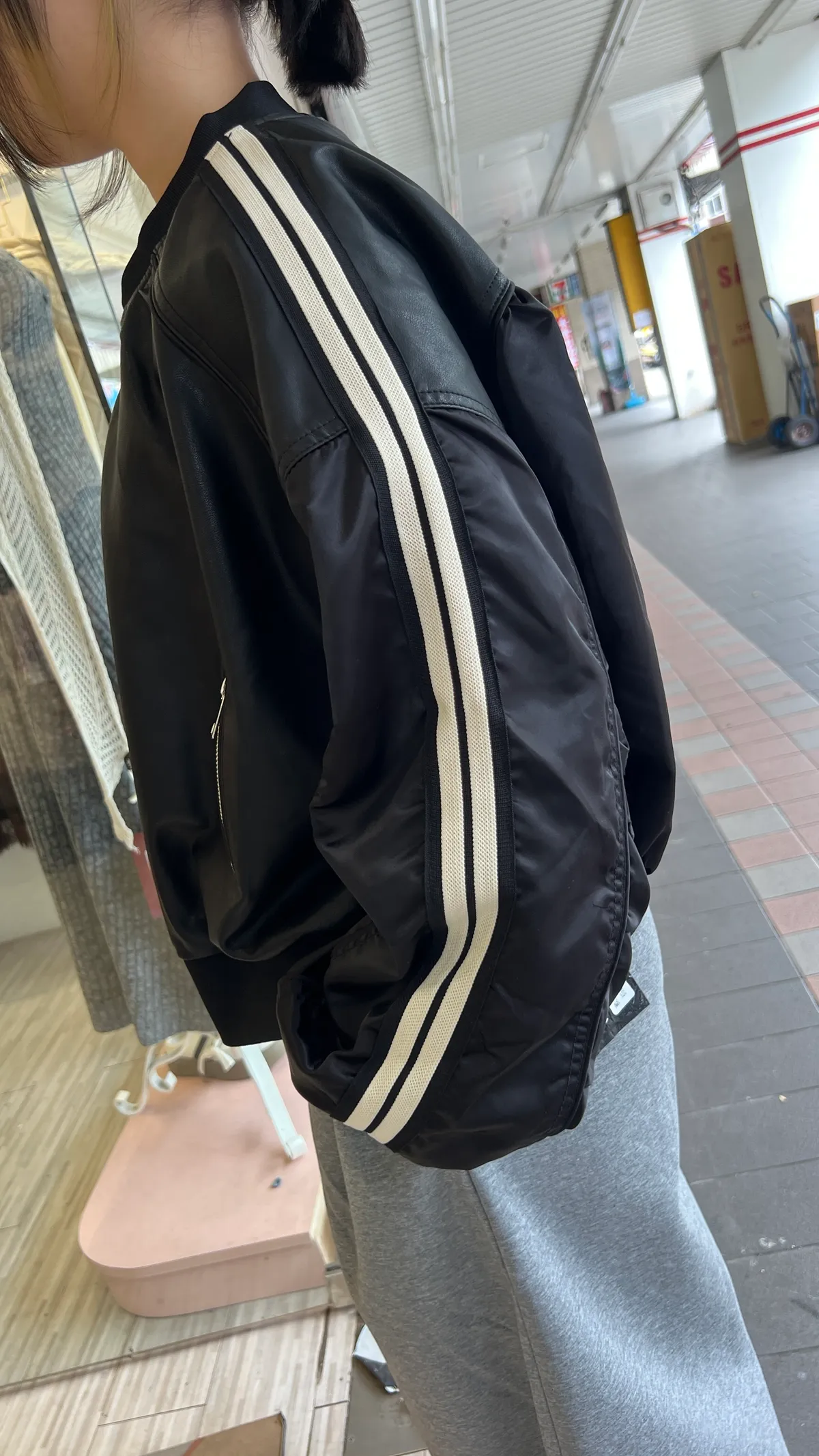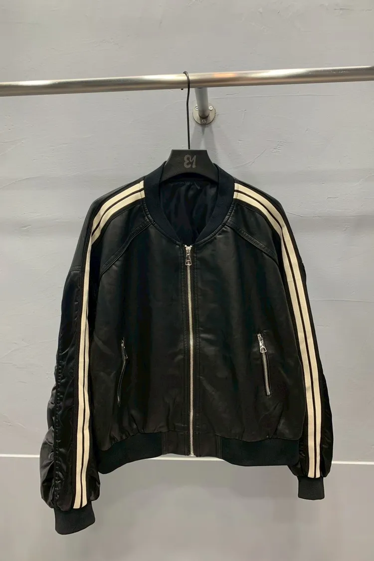 【酷帥有態度】雙線條側抓皺皮革飛行夾克