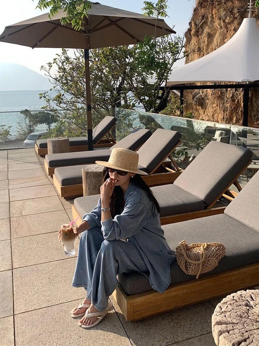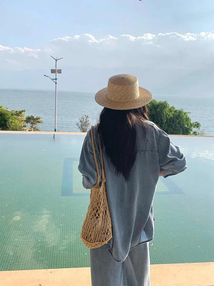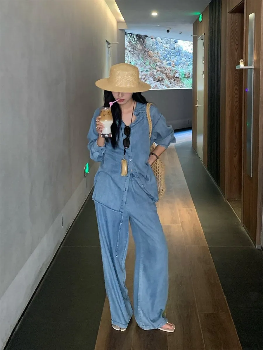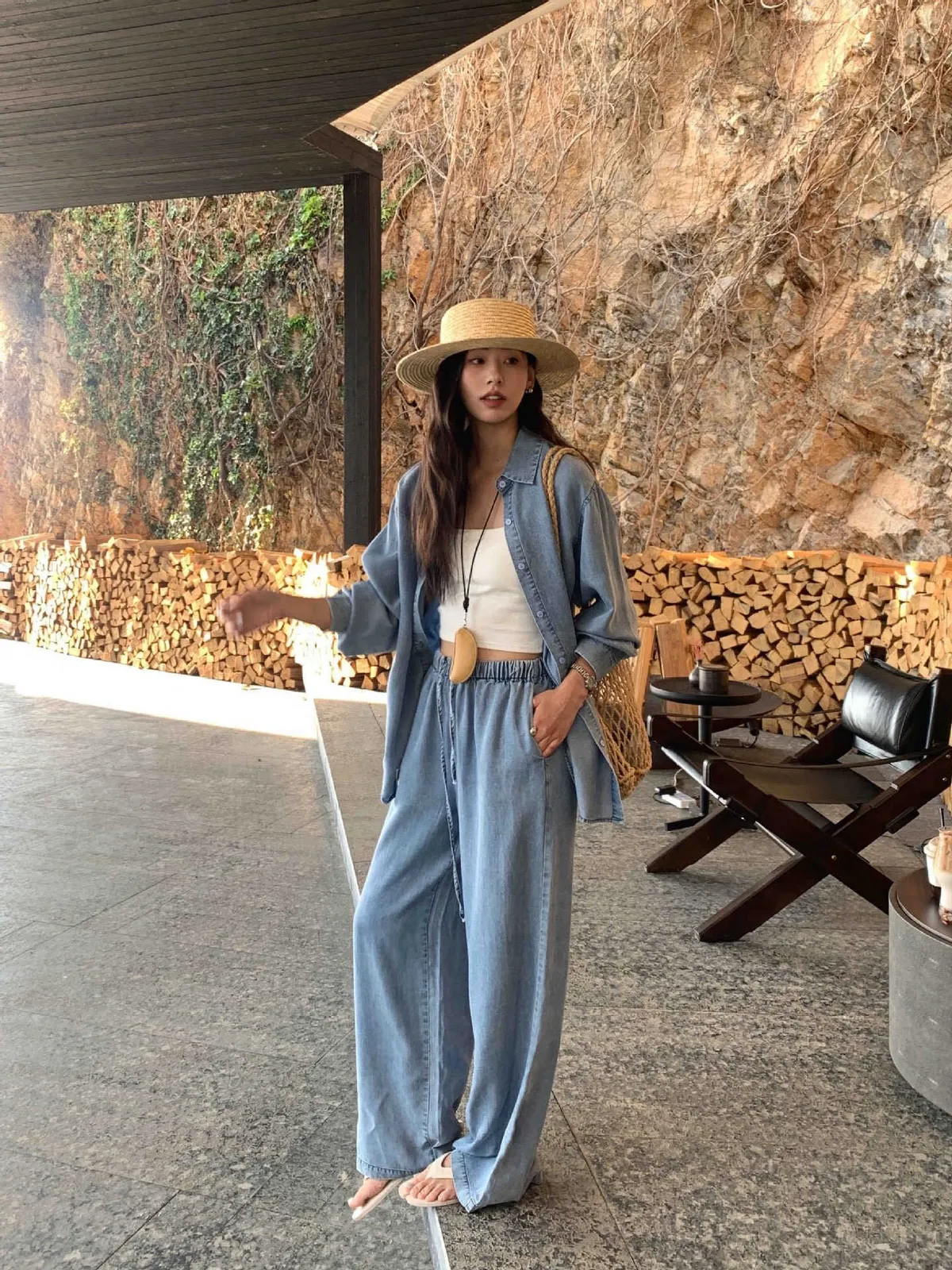 走進春夏的微風裡 輕柔又率性的牛仔套裝! 天絲棉材質涼爽親膚 寬鬆剪裁讓每一步都自在灑脫 簡約襯衫上衣+闊腿抽繩褲 穿出慵懶隨性的度假感 搭配草帽、編織包就能輕鬆駕馭森林系穿搭 是你週末小旅行的命定OOTD! 材質:天絲棉
