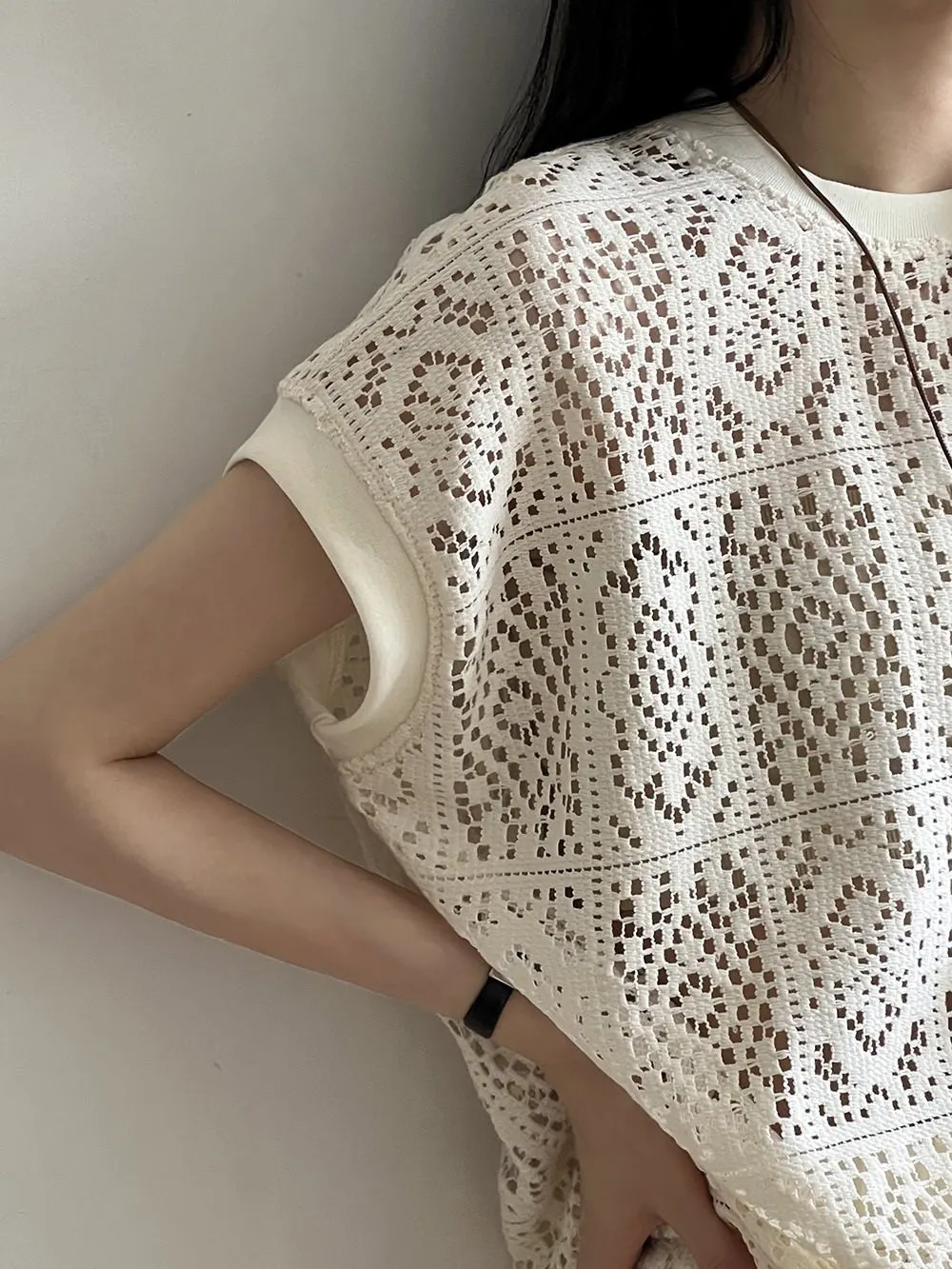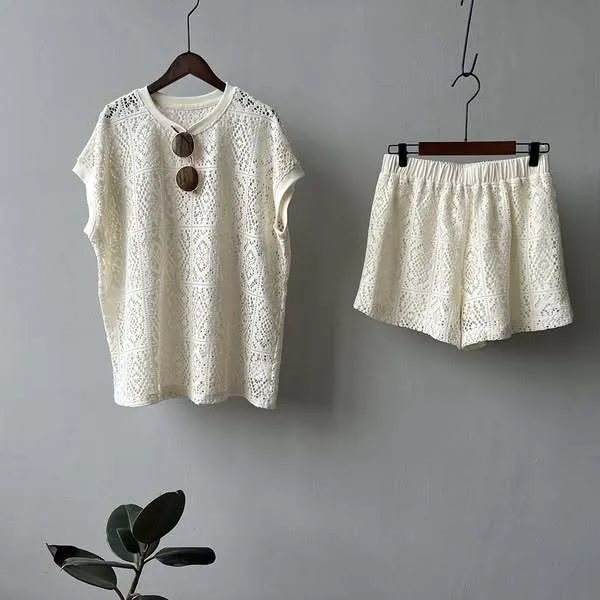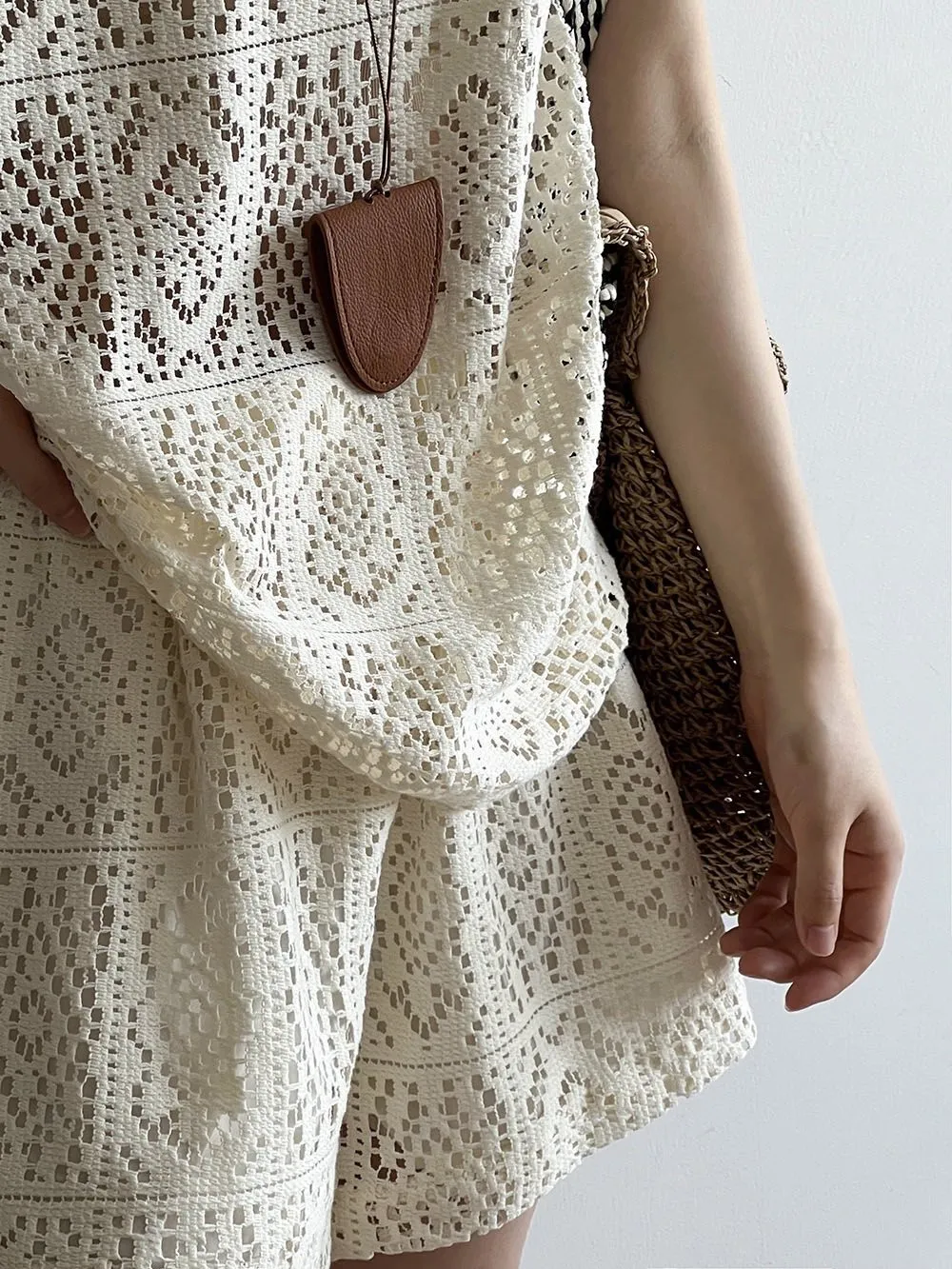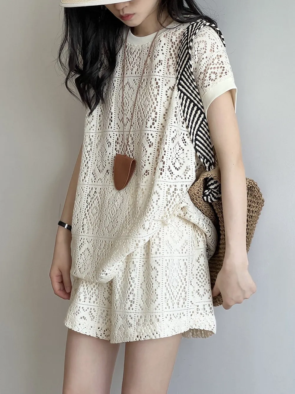 【夏日微光】鏤空蕾絲套裝(上衣+短褲)