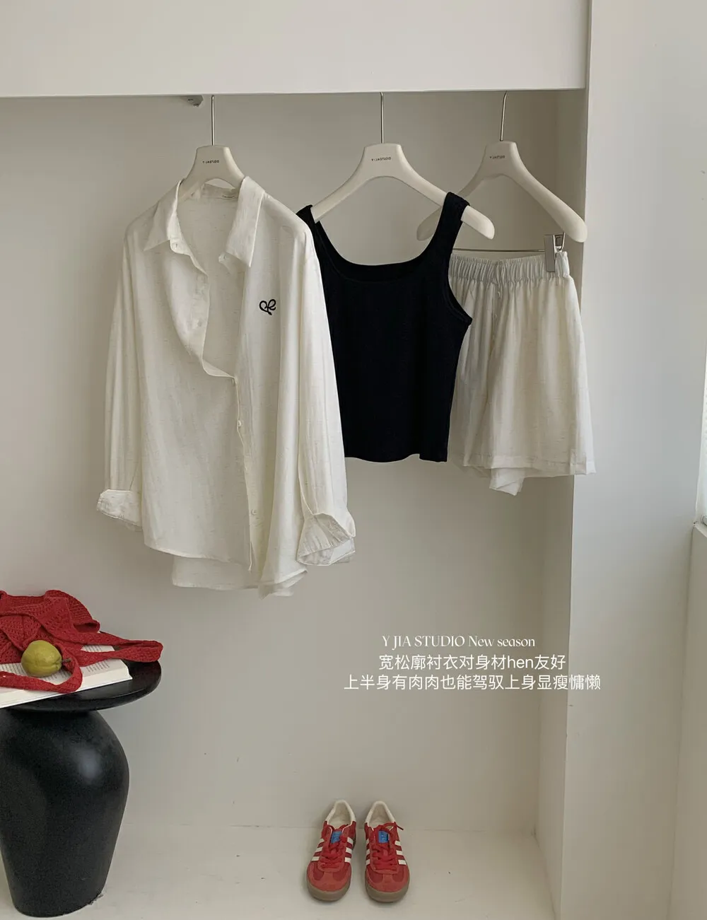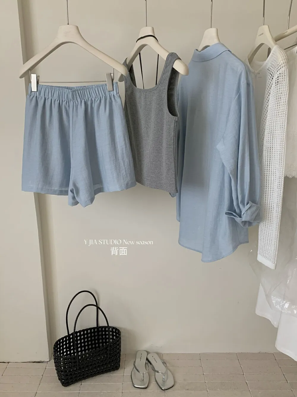 採用輕透亞麻混紡,貼近肌膚的呼吸節奏