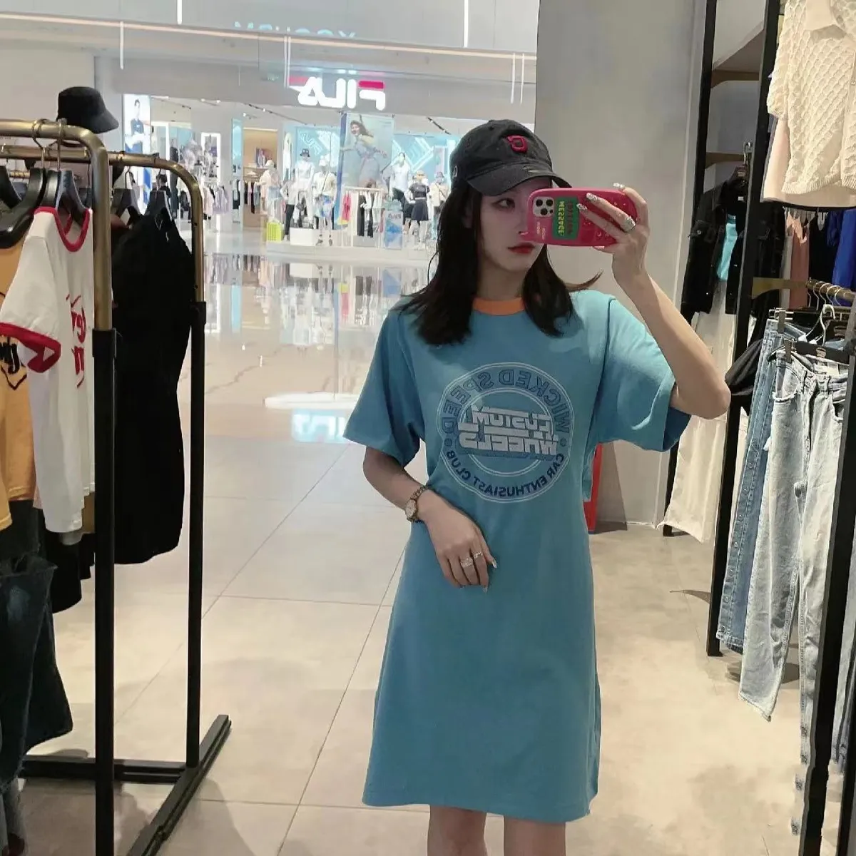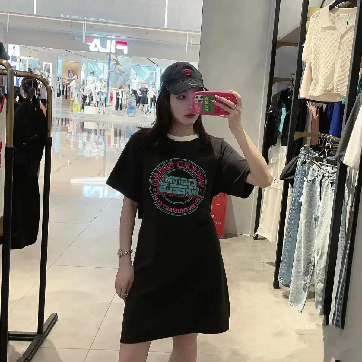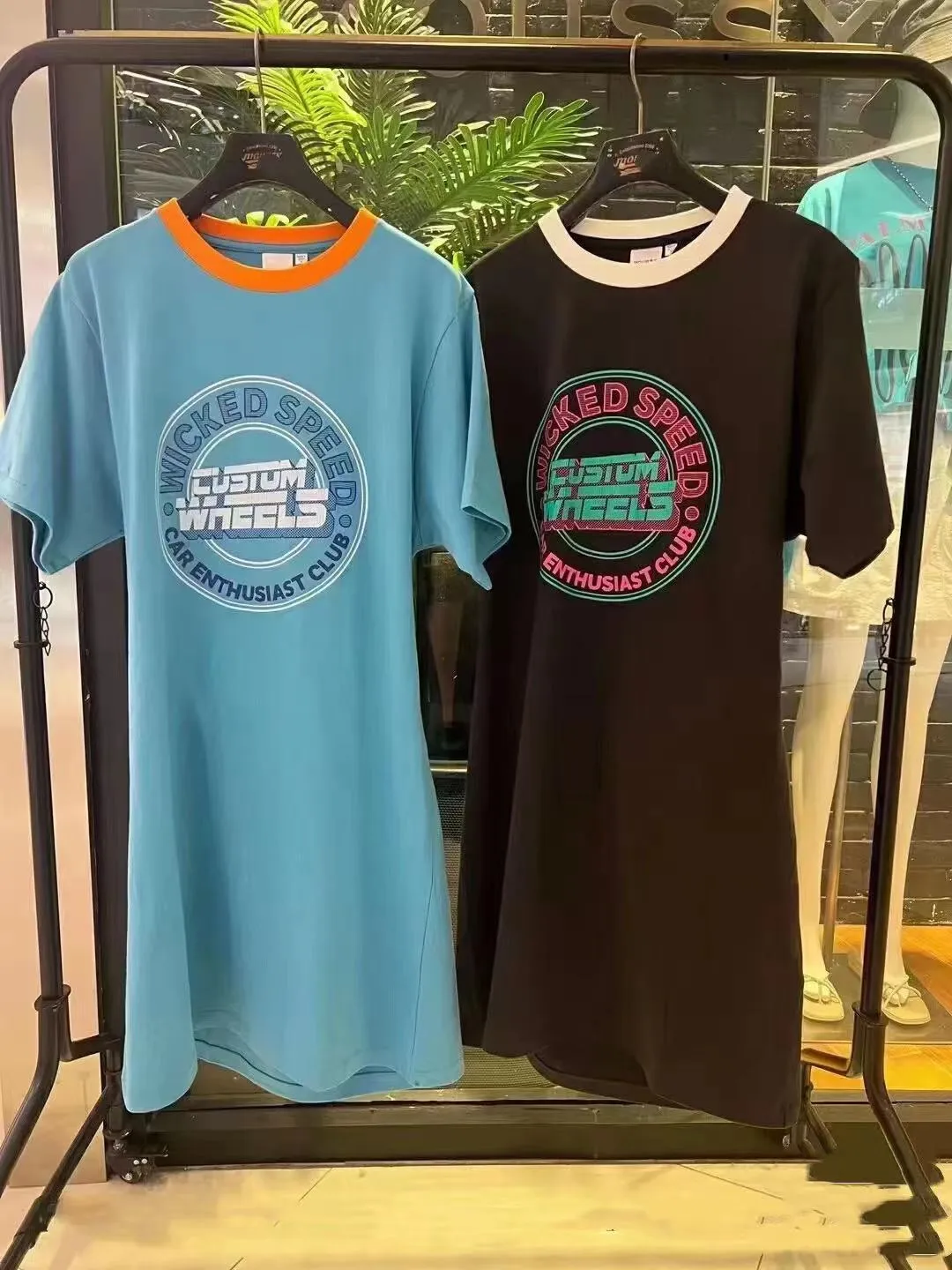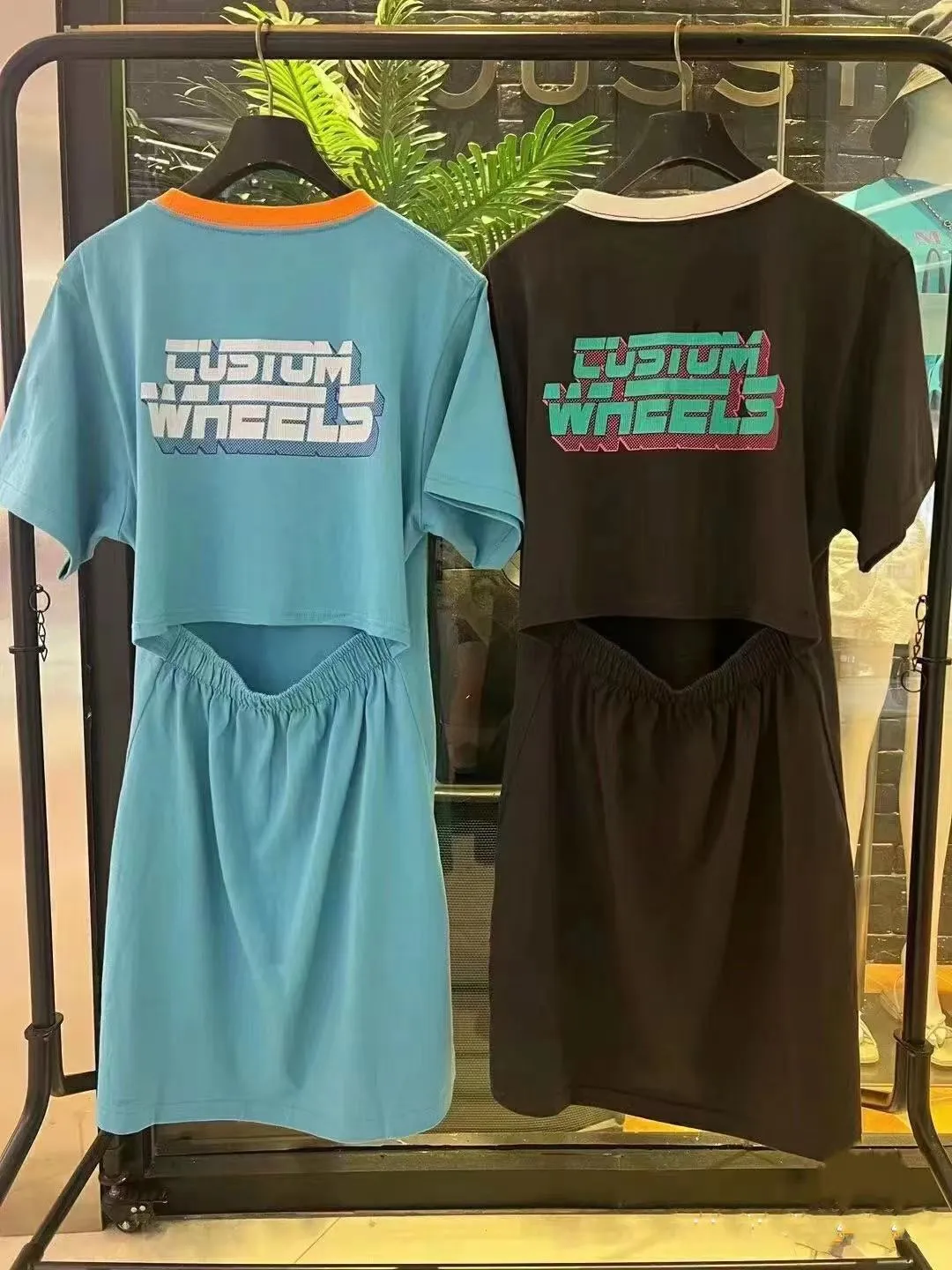 MOUSSY潮流撞色圓領後背挖空洋裝