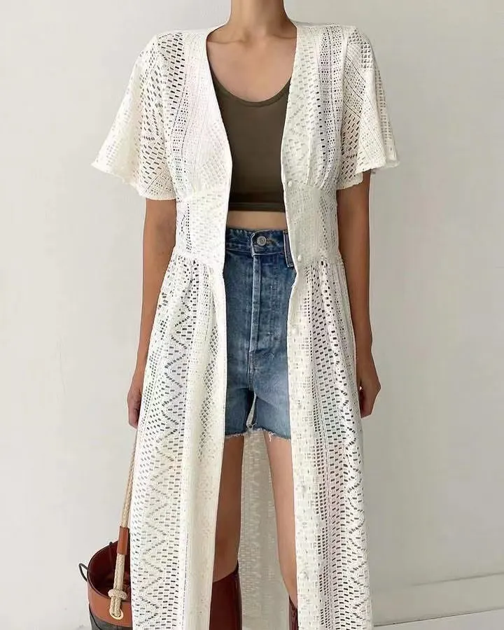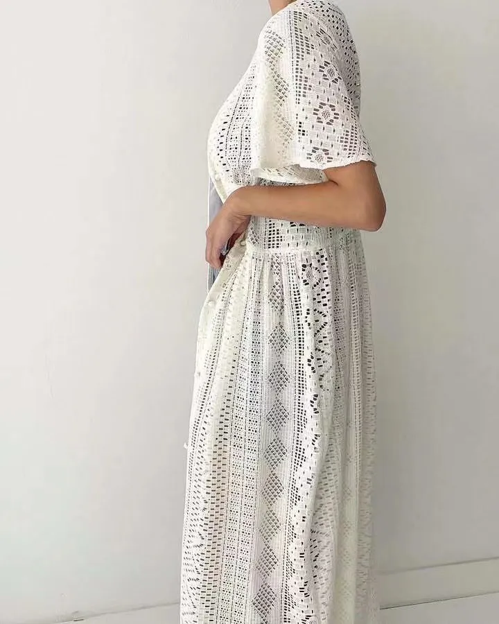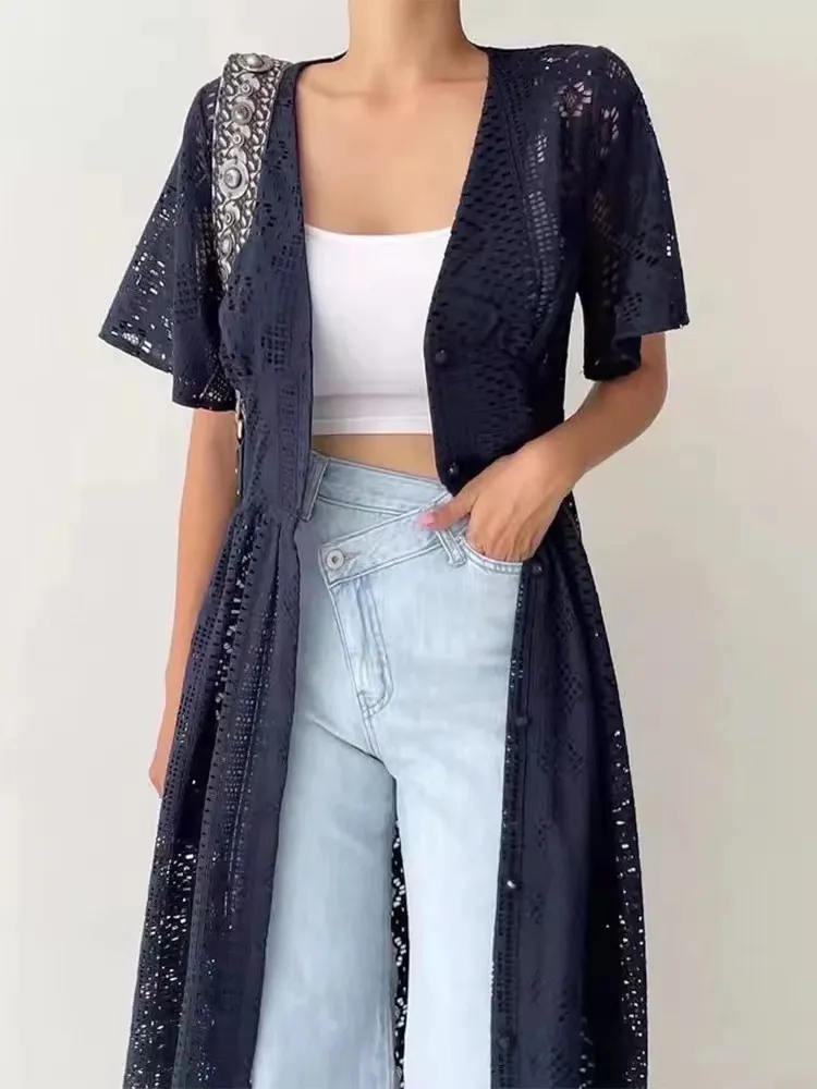 夏天的仙女必備神器來啦~優雅白/神秘藍 兩色入魂!柔美V領搭配細緻鏤空蕾絲隨風飄逸的長版剪裁,走路都有主角光環不管是海邊比基尼罩衫,還是日常牛仔短褲混搭氣質、時髦度100分🖤輕盈不悶熱,夏日完美穿搭🤍甜美也能小性感,日夜都好駕馭!