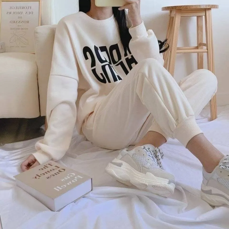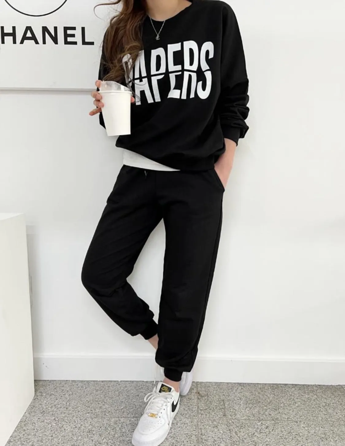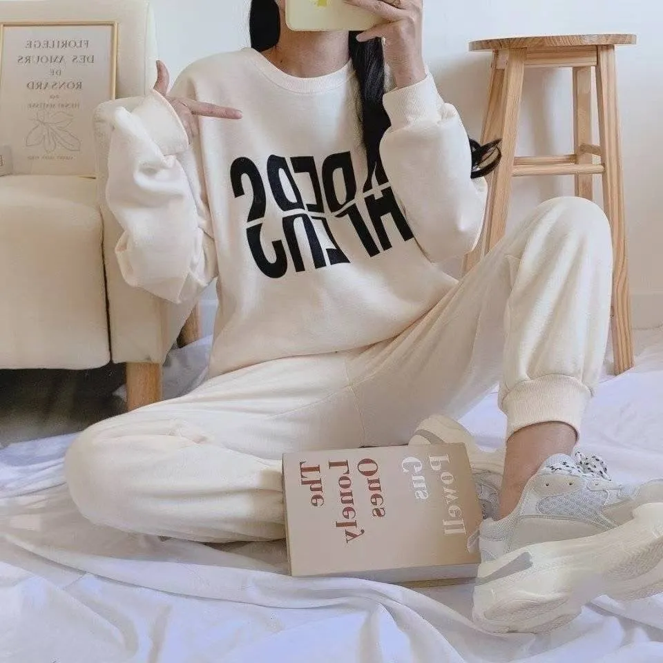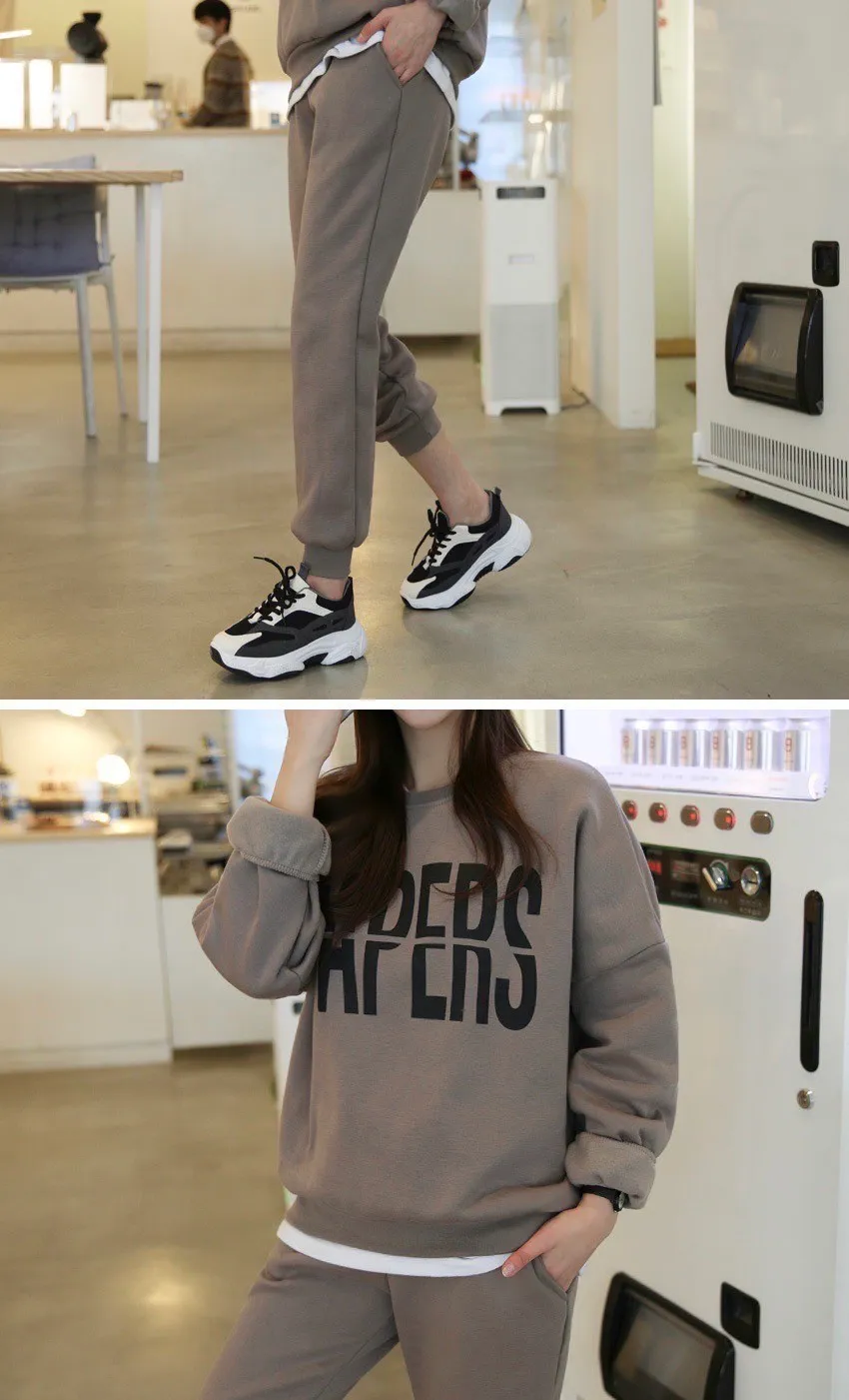 韓國製🇰🇷個性斷層英文刷毛休閒套裝