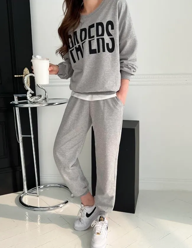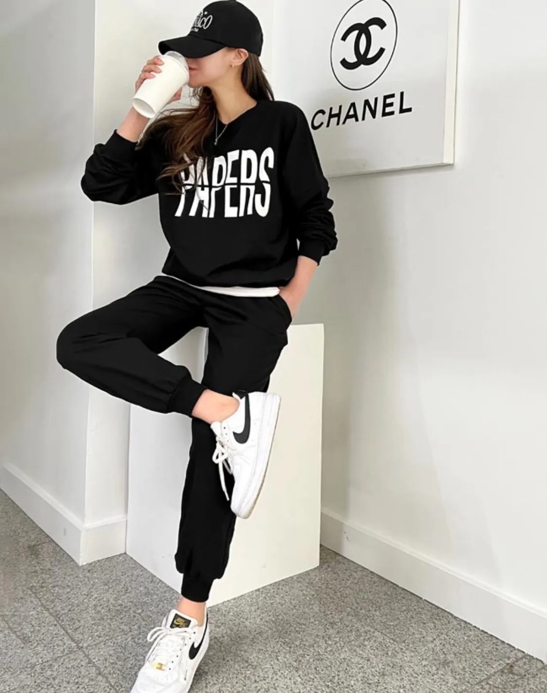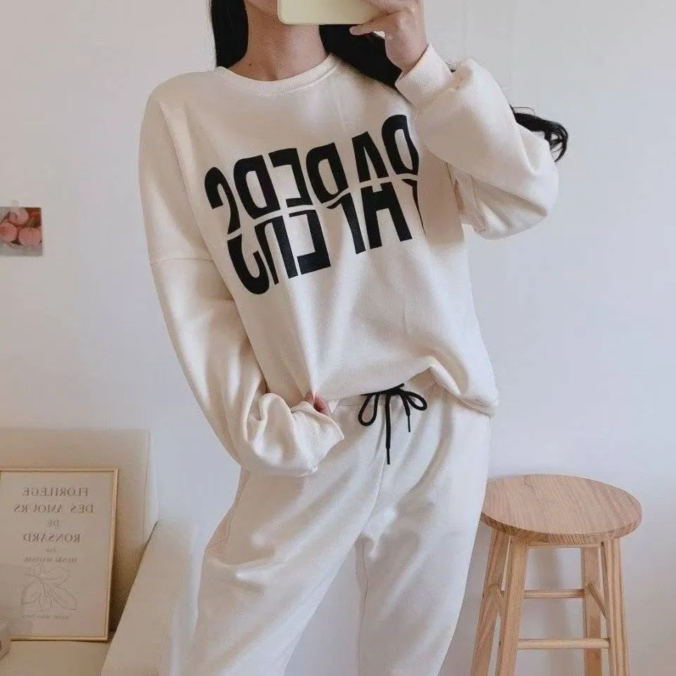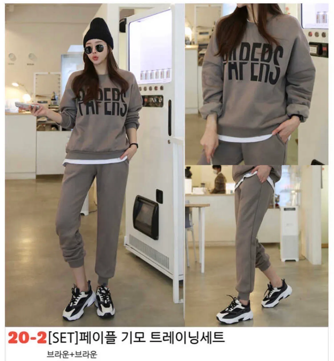 韓國製🇰🇷個性斷層英文刷毛休閒套裝