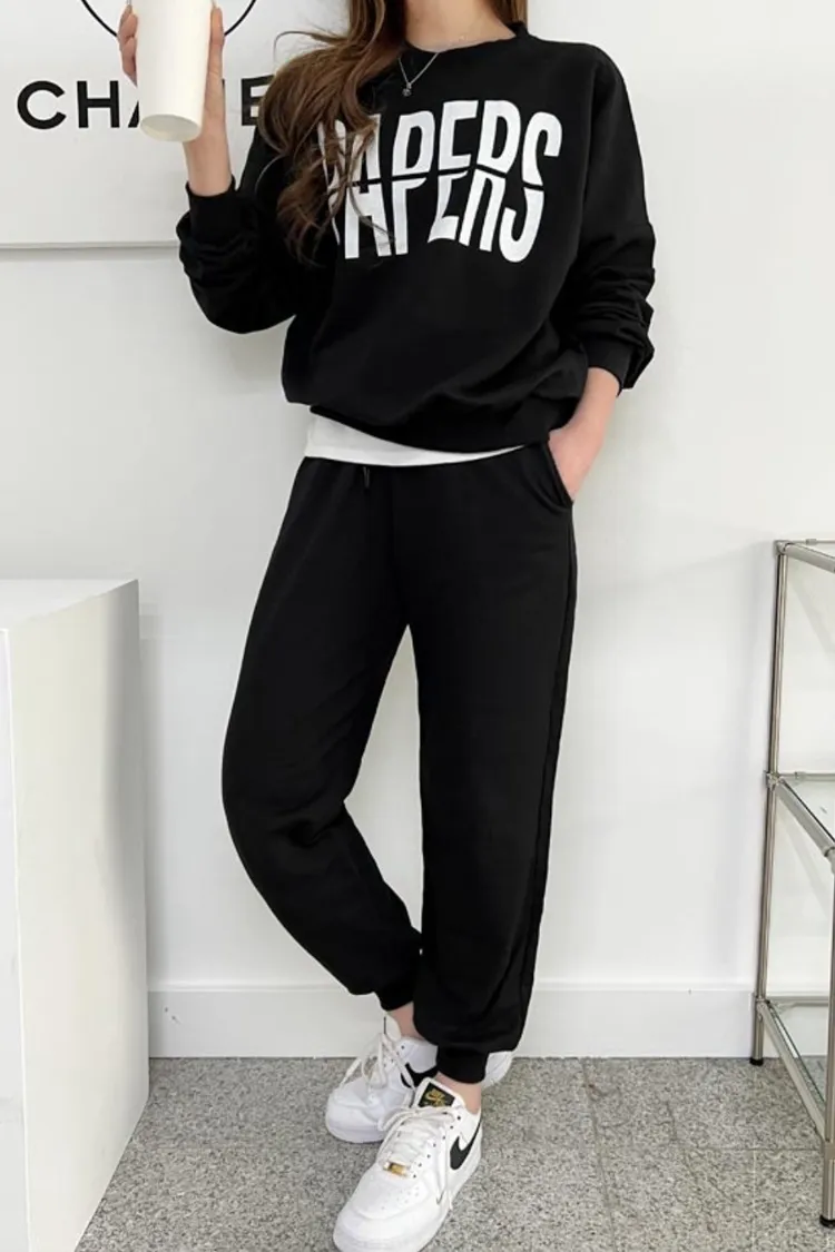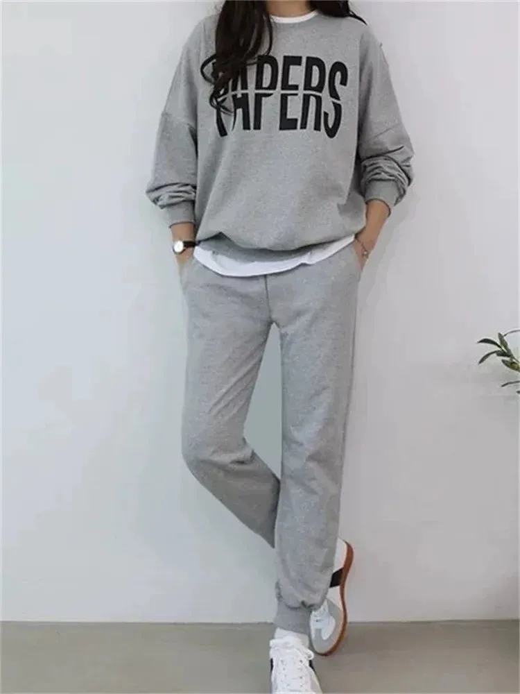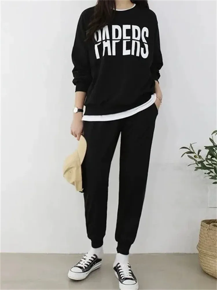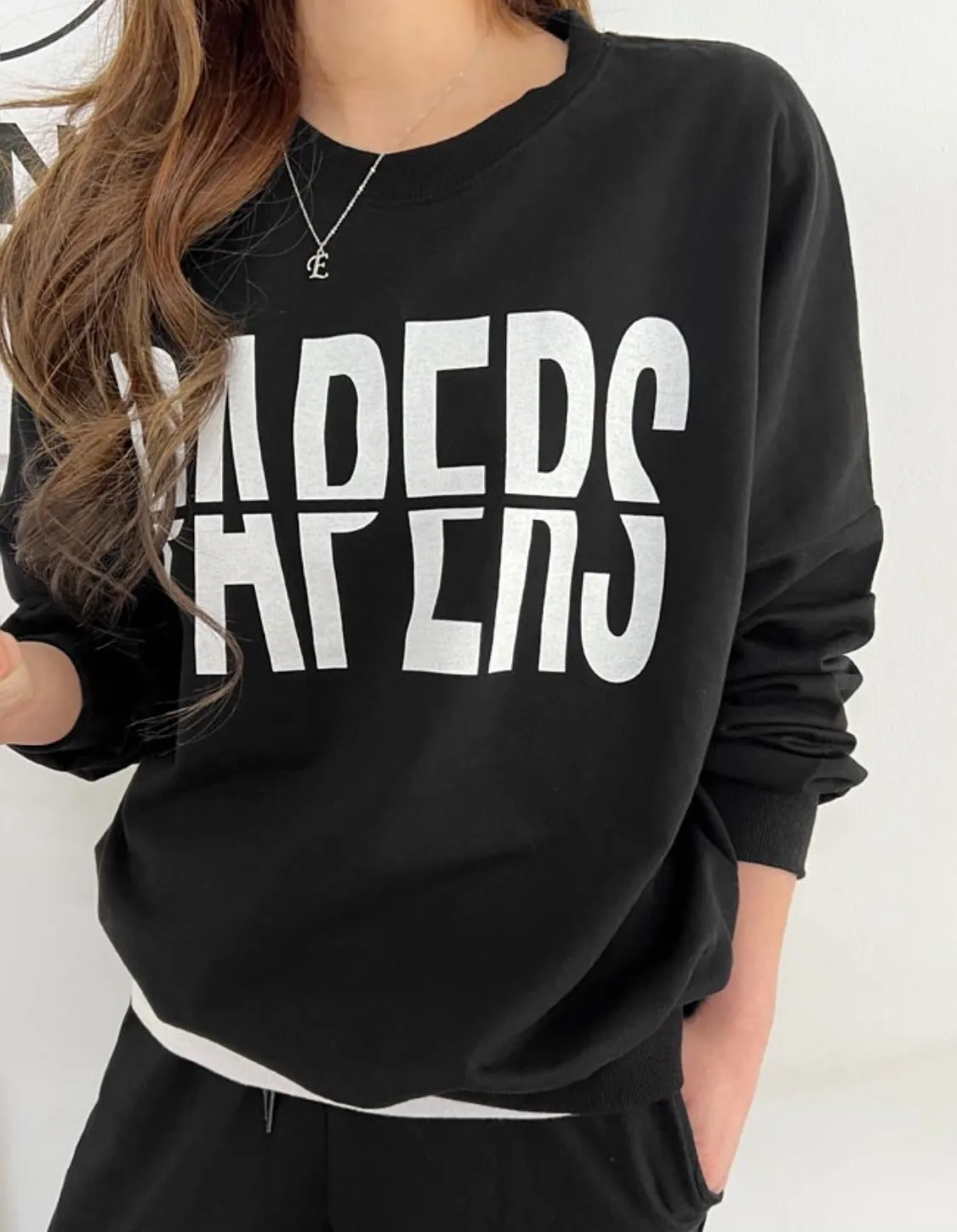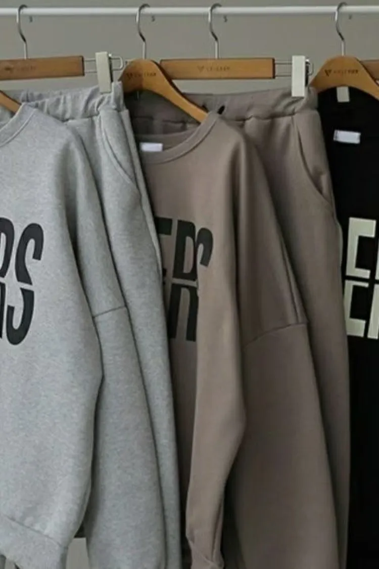 韓國製🇰🇷個性斷層英文刷毛休閒套裝