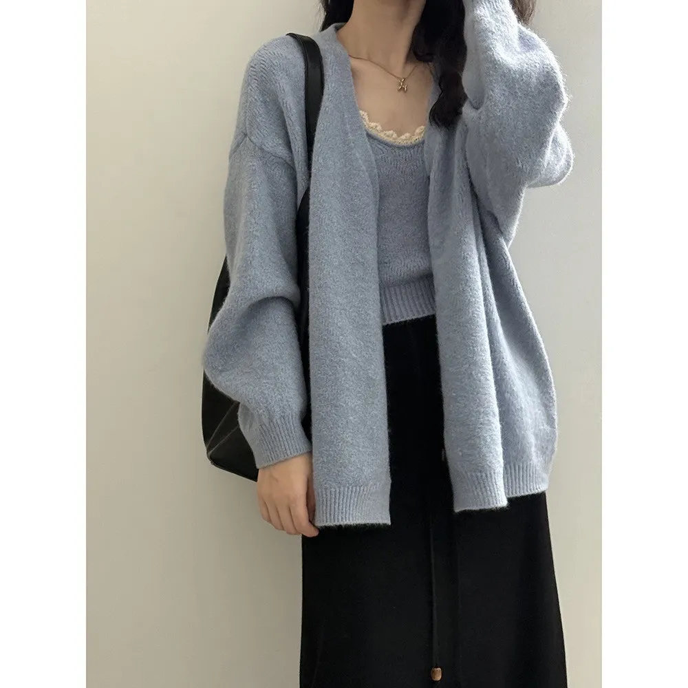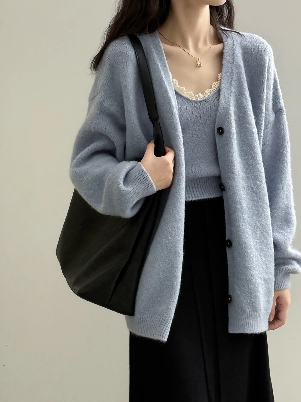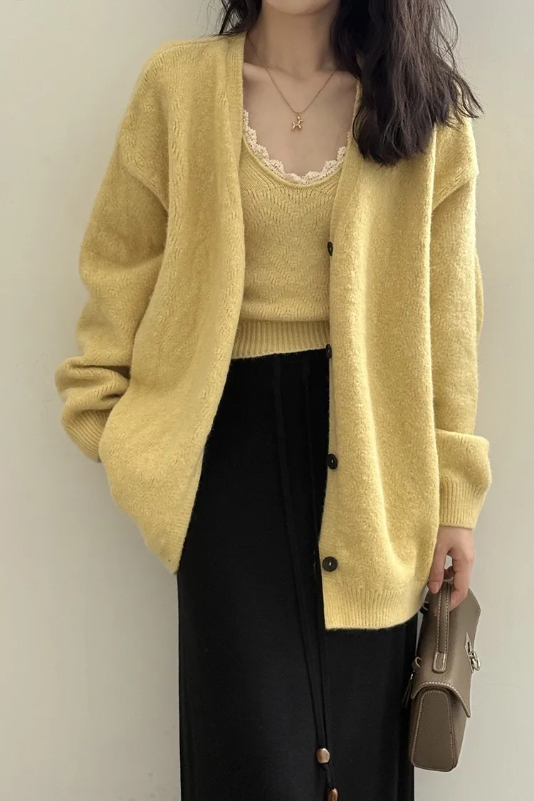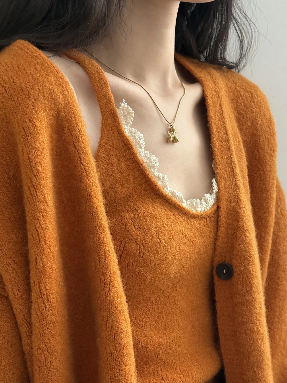 【慵懶軟糯感】花邊針織背心+開衫兩件套