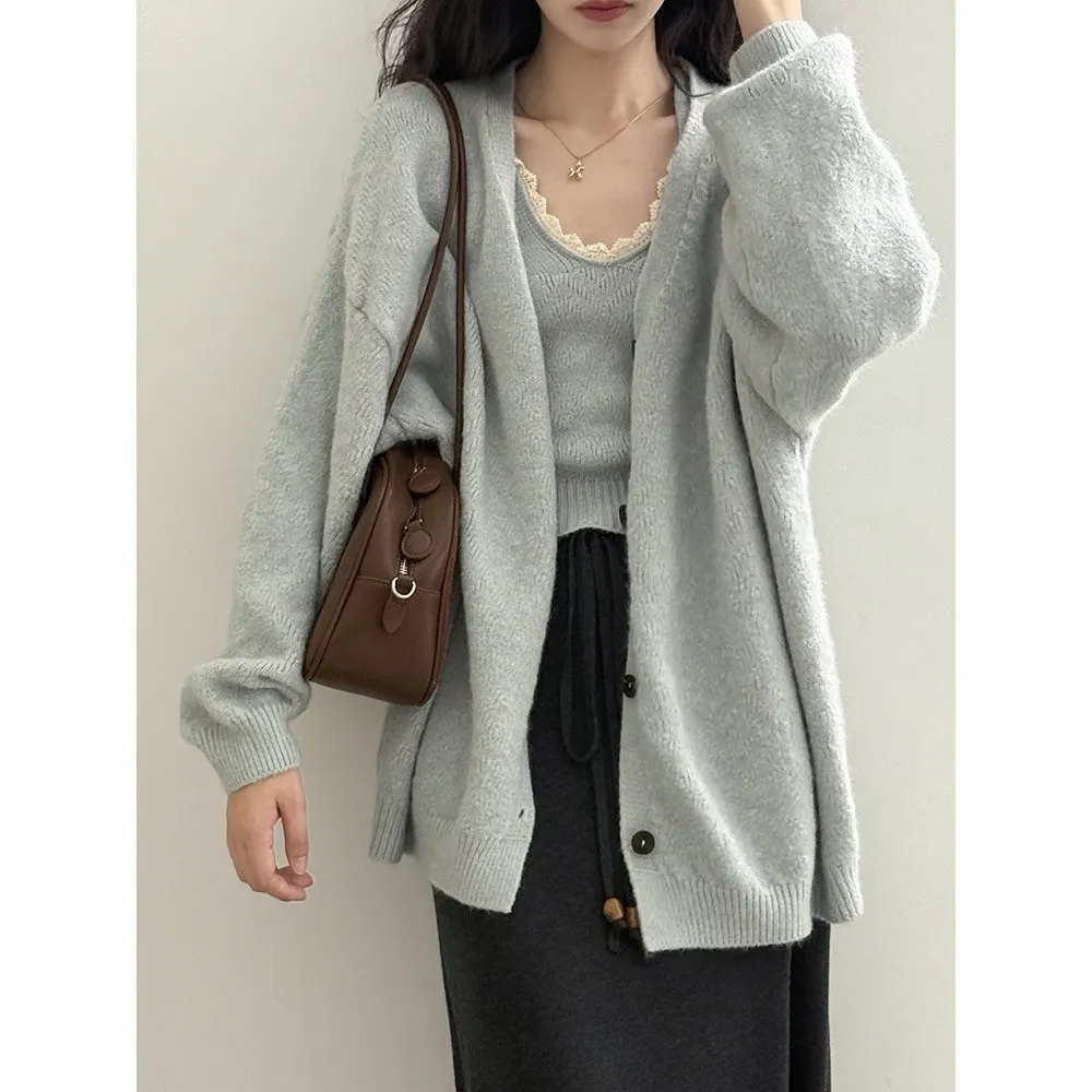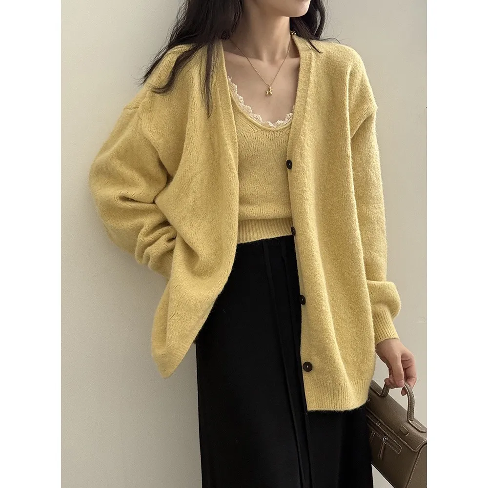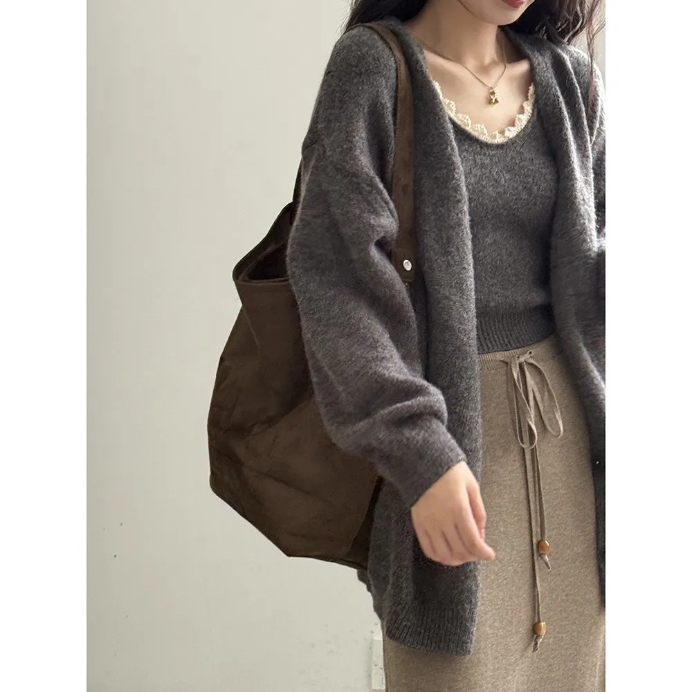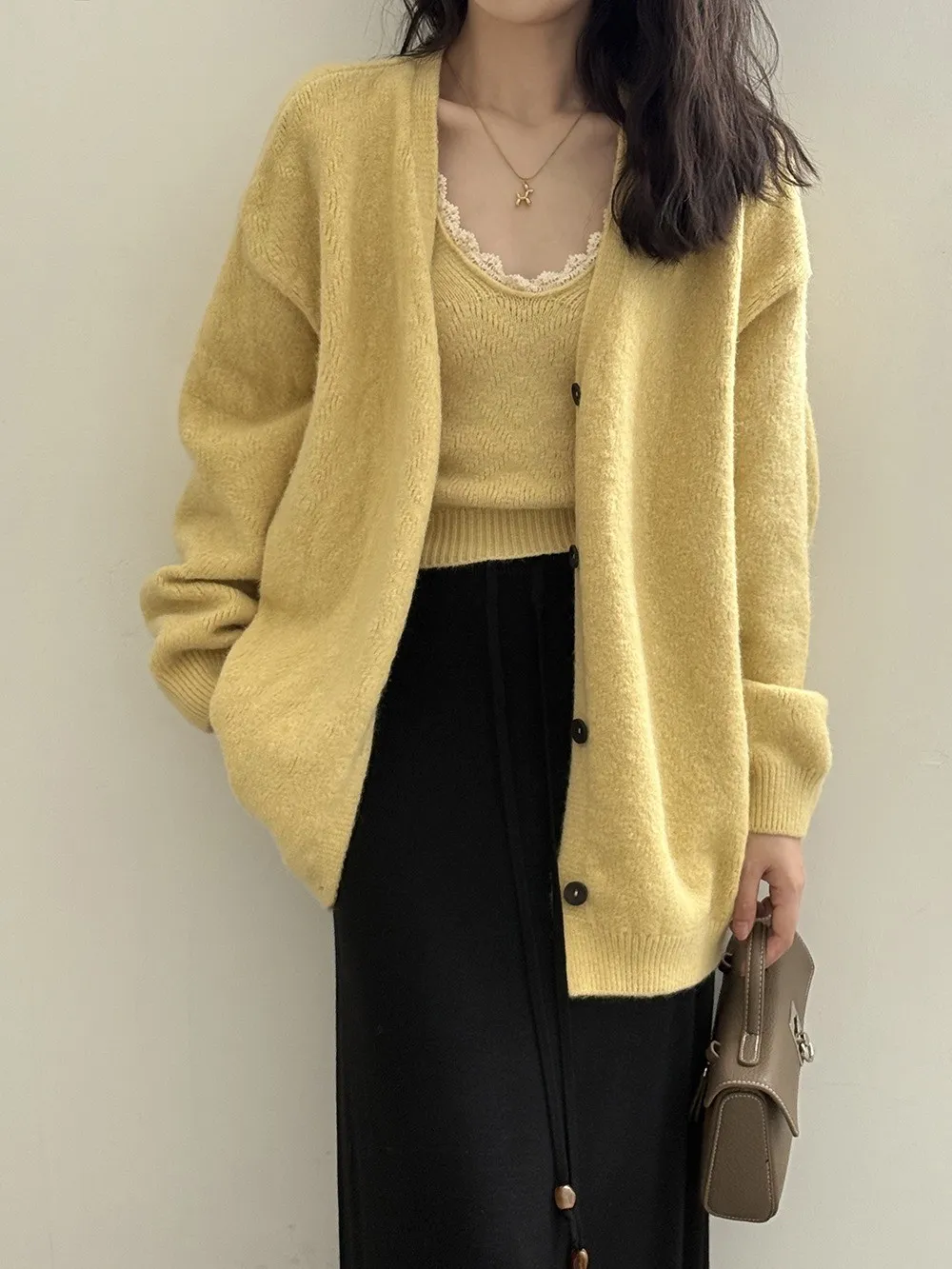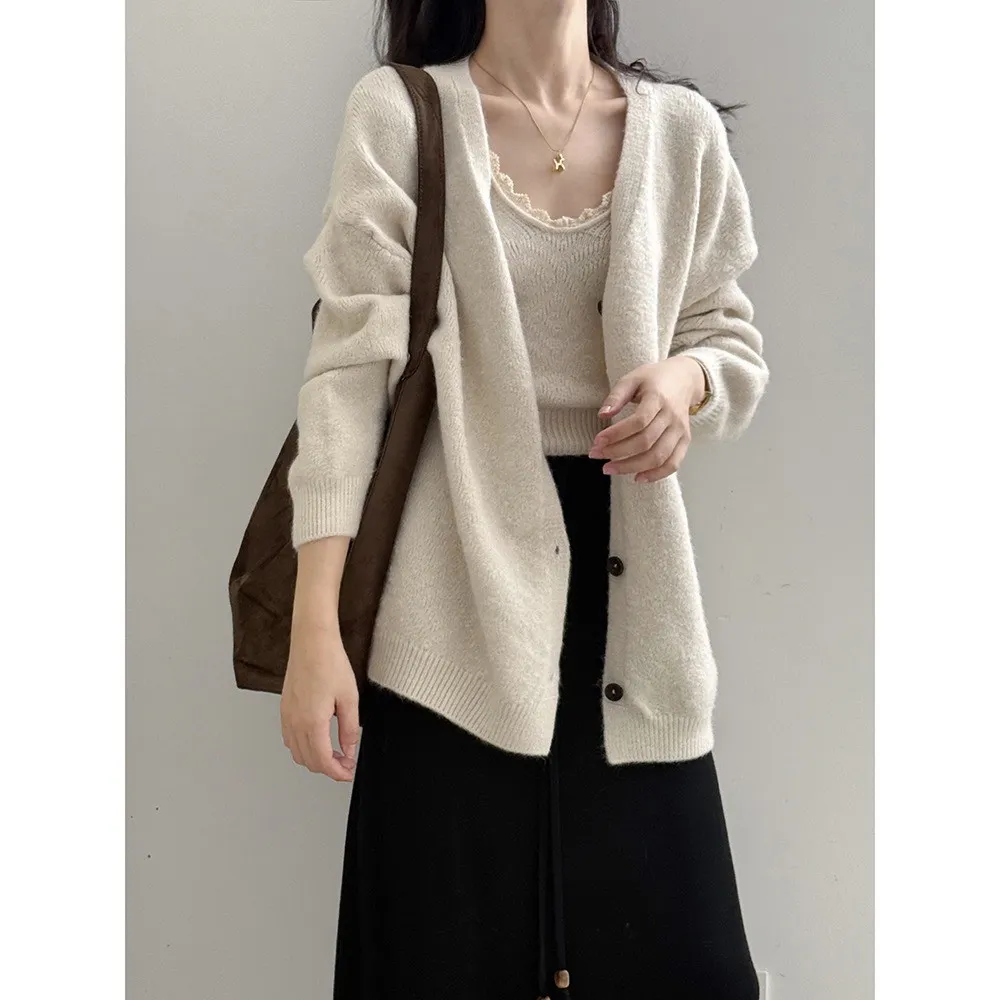 【慵懶軟糯感】花邊針織背心+開衫兩件套