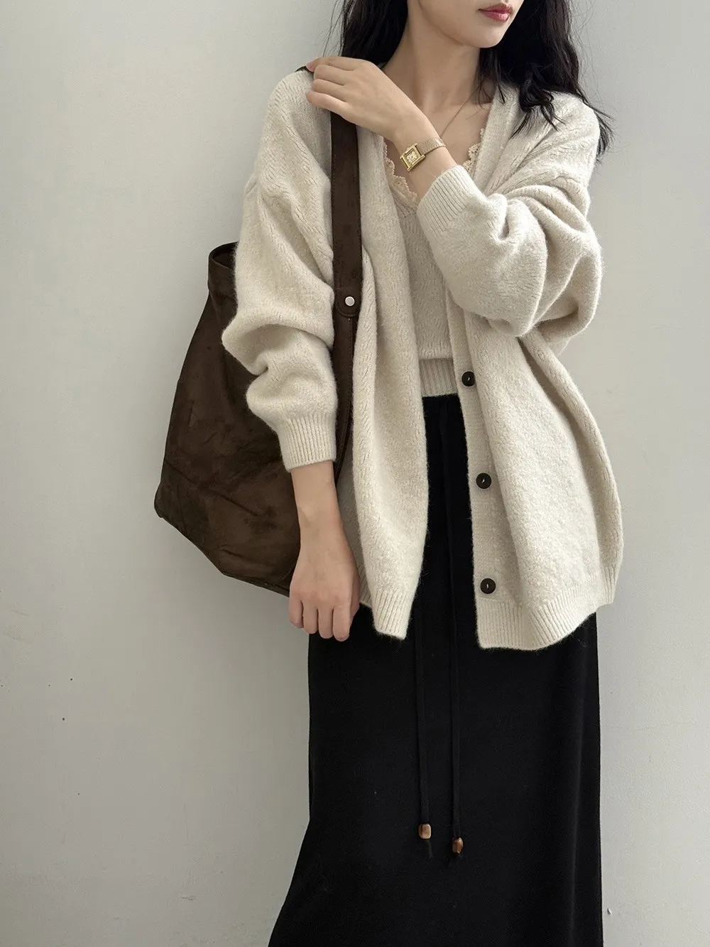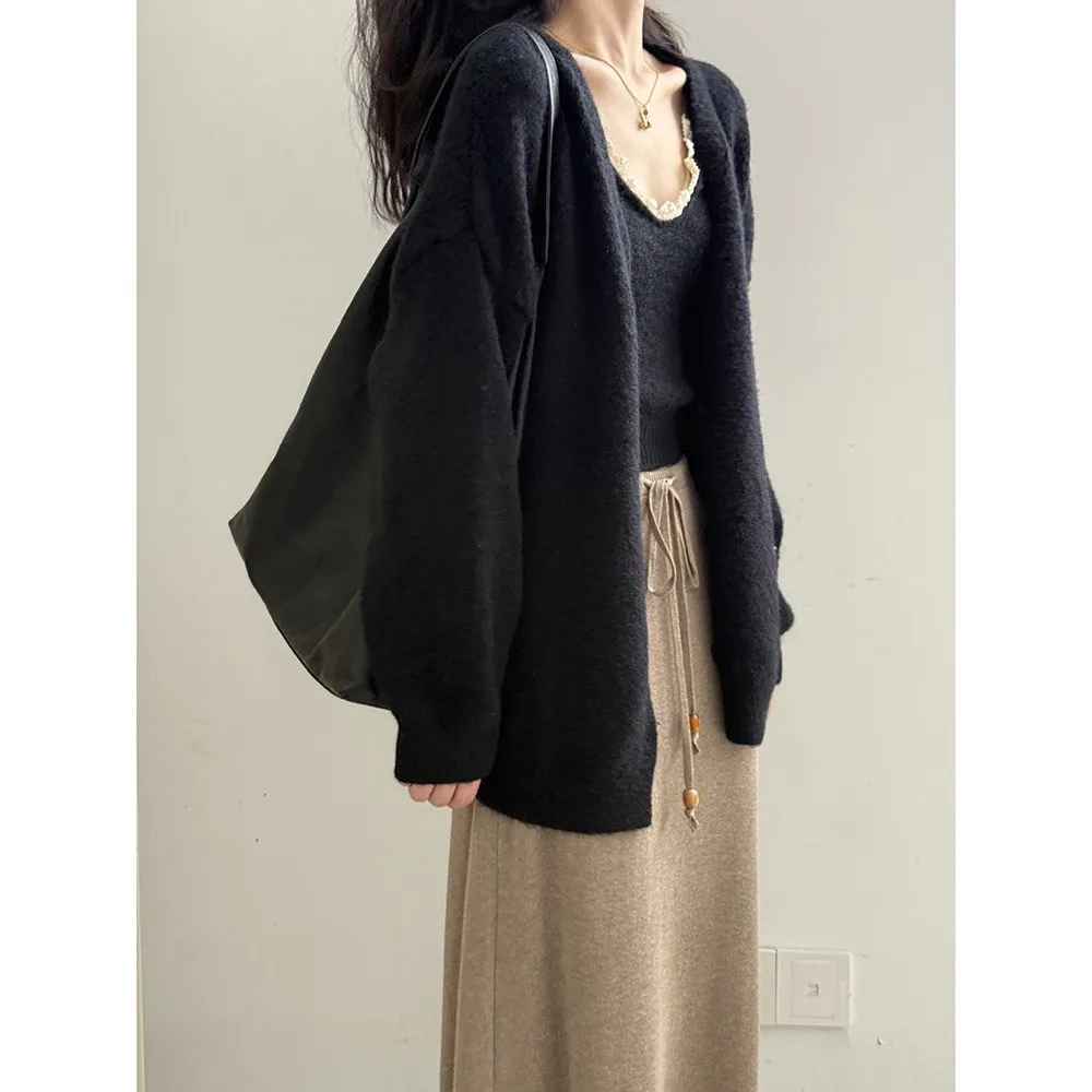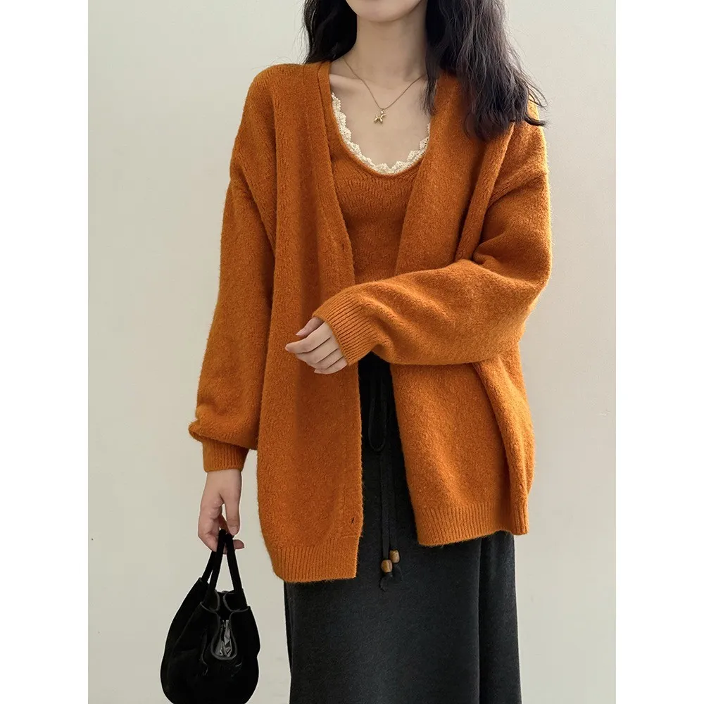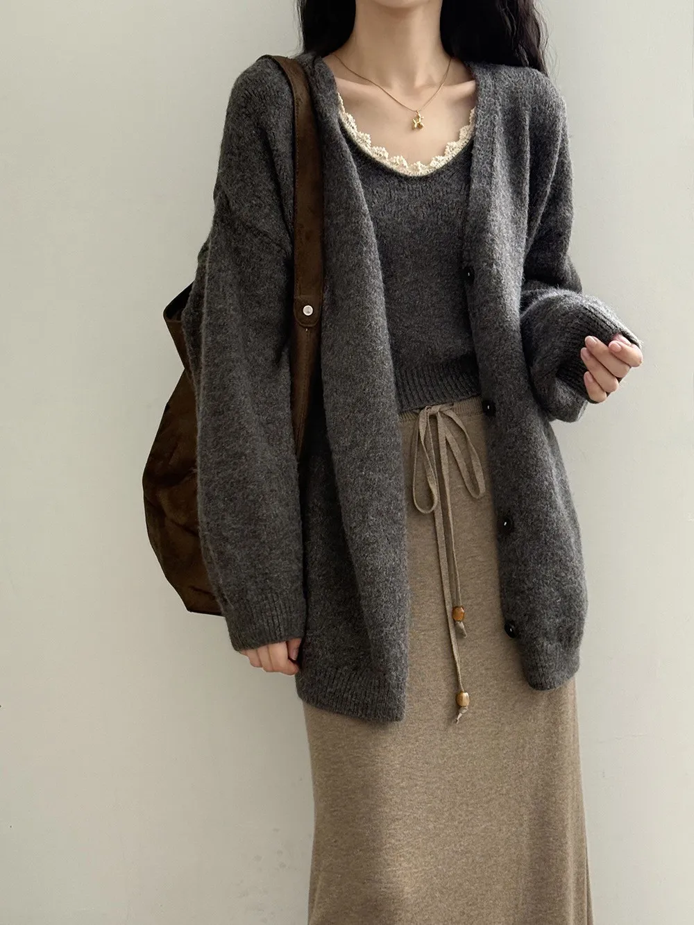 【慵懶軟糯感】花邊針織背心+開衫兩件套