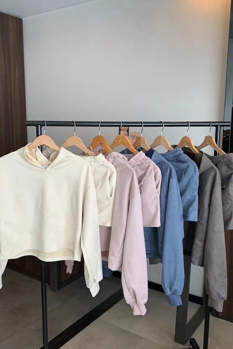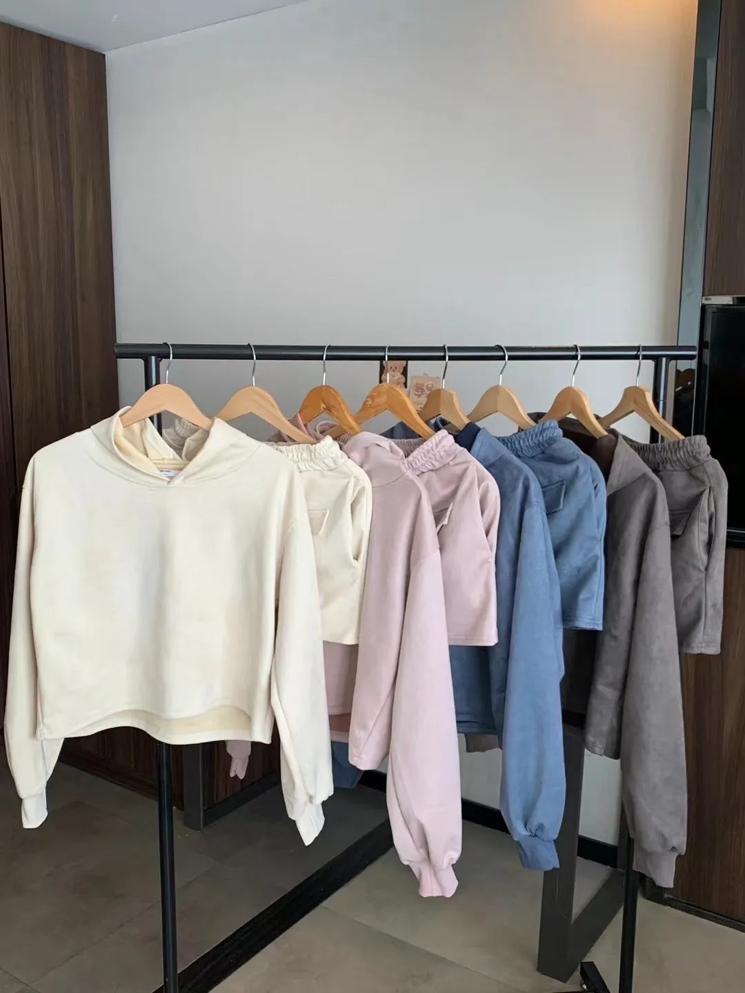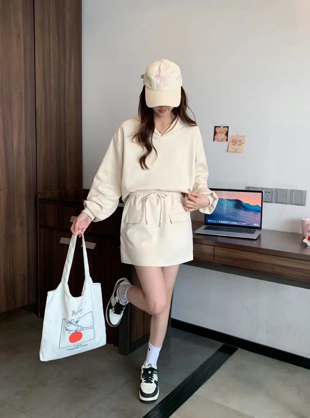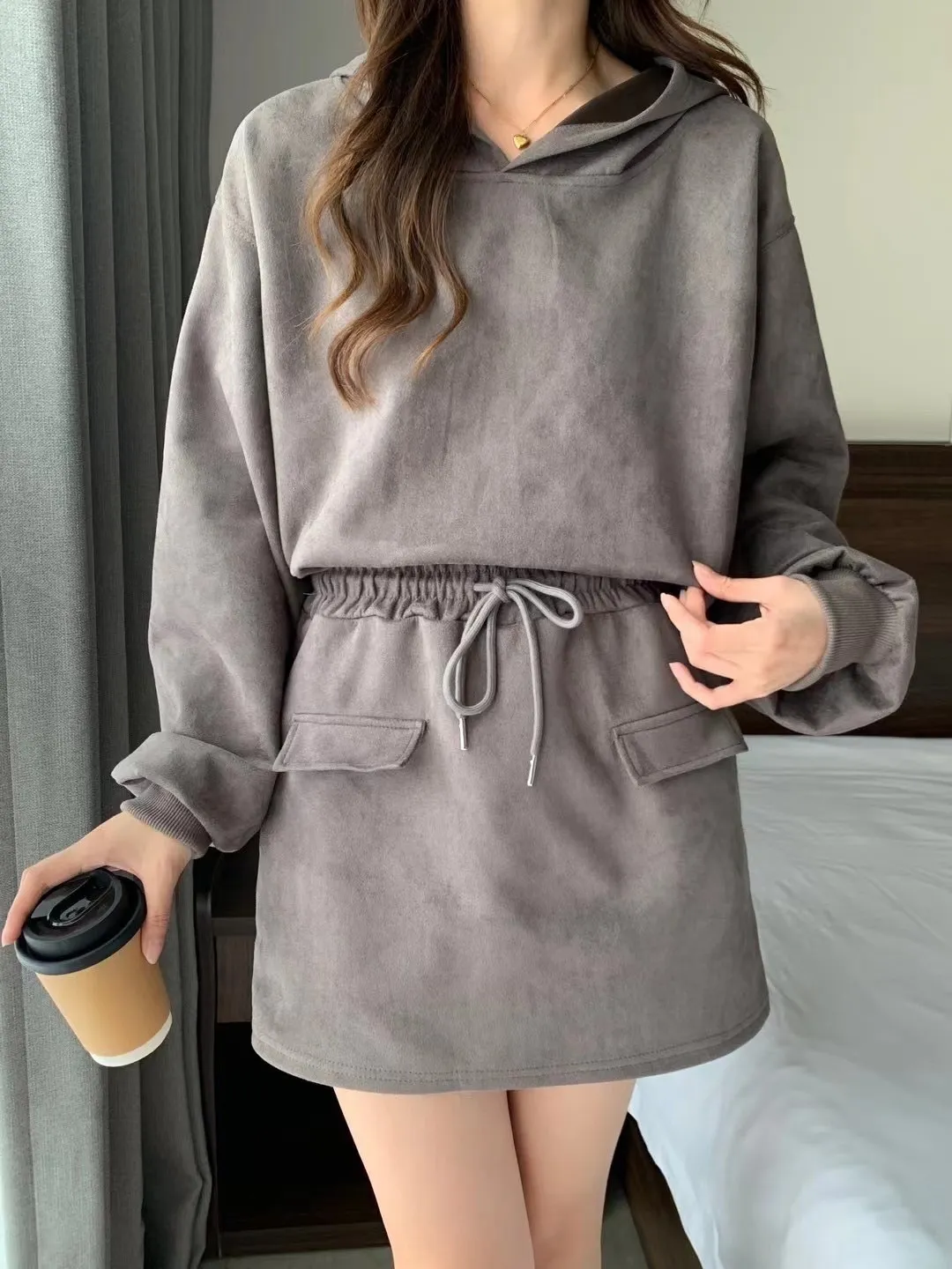 【柔霧軟糯】麂皮絨連帽短版上衣+褲裙套裝
