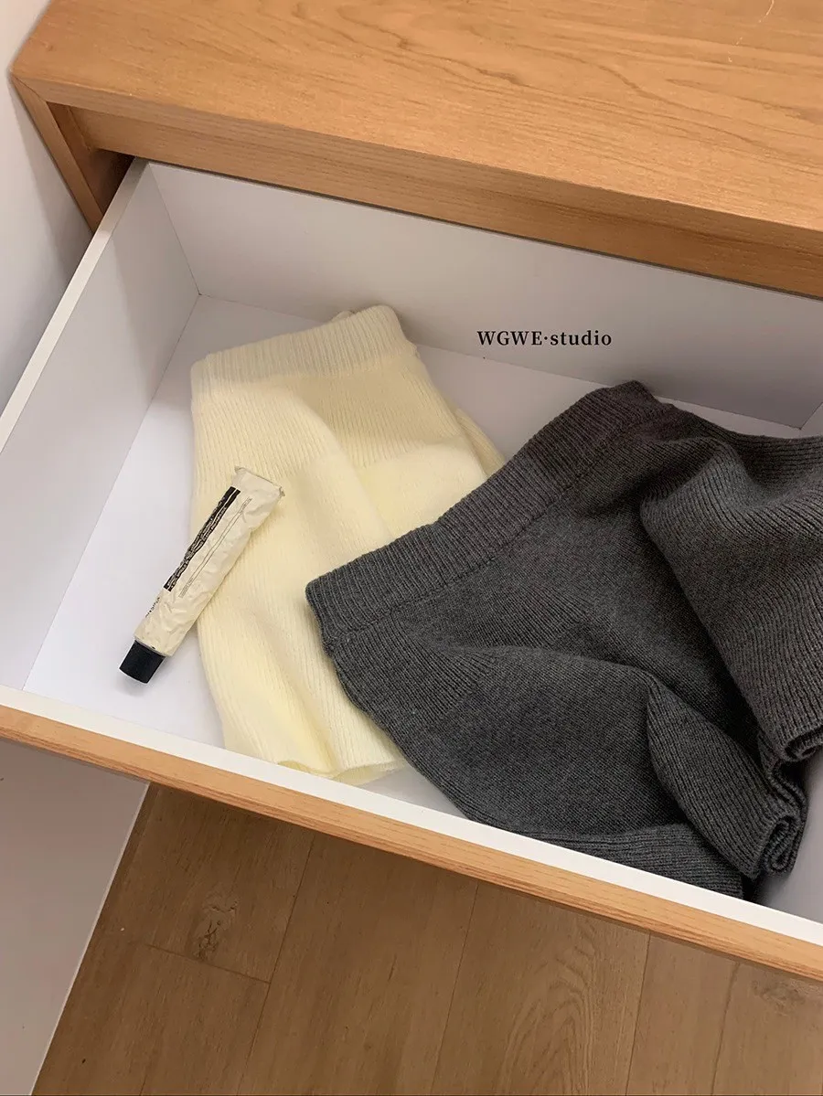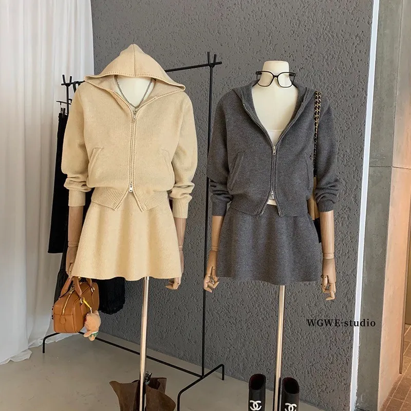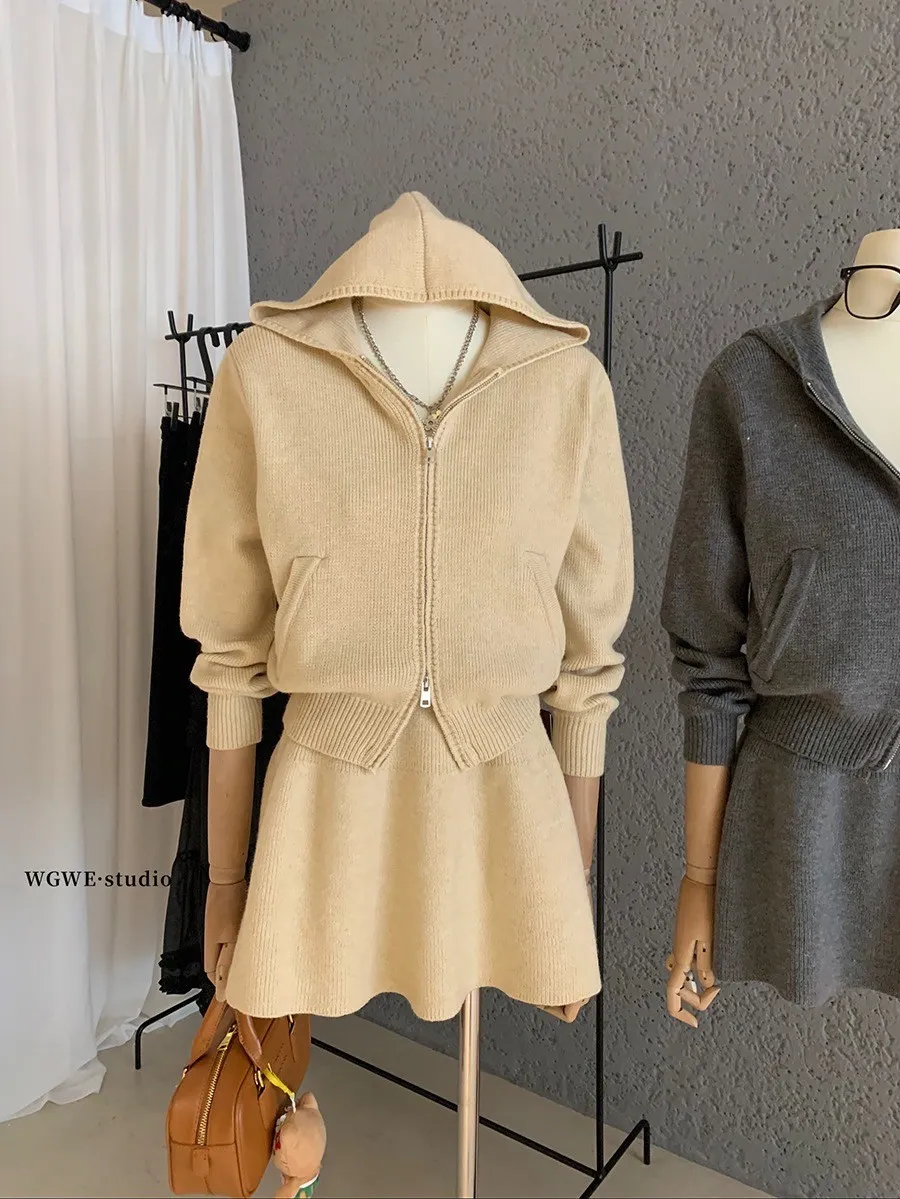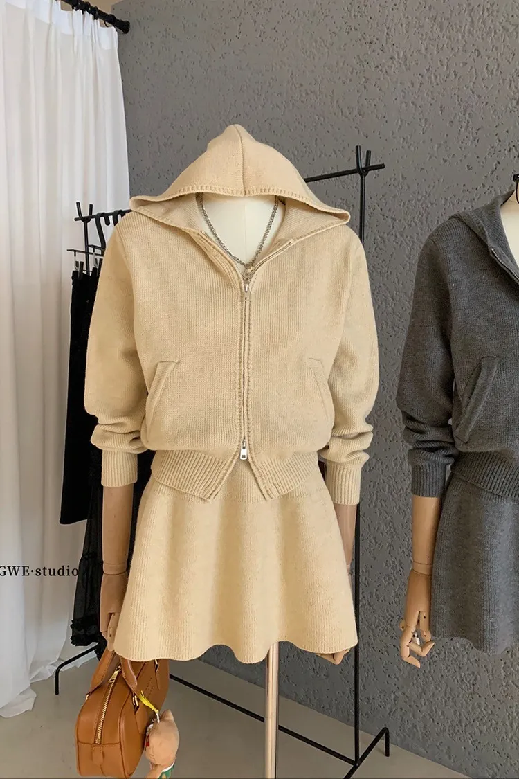 【輕氧素顏】極簡毛衣針織外套+圓裙兩件套