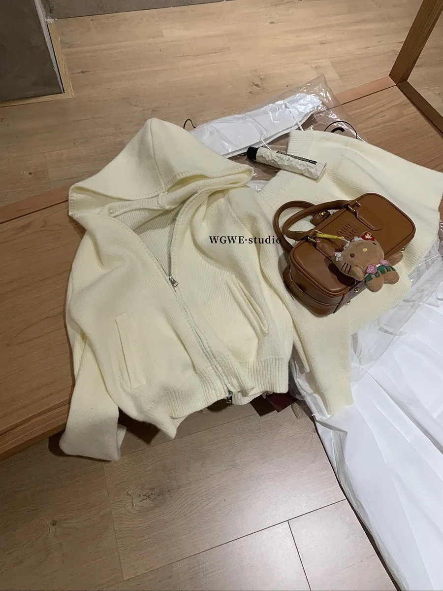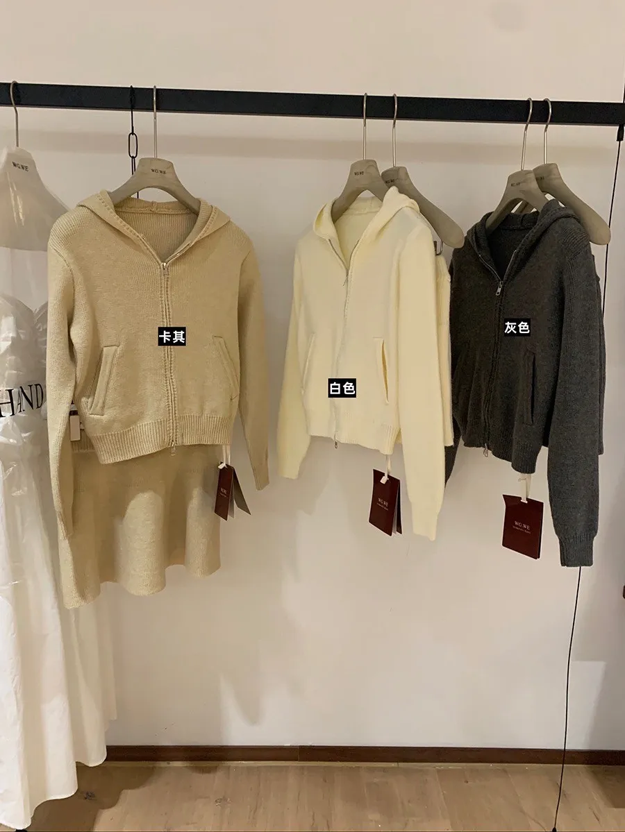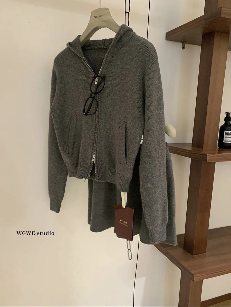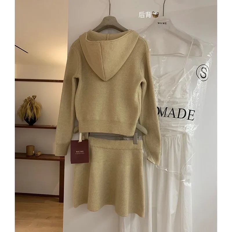 【輕氧素顏】極簡毛衣針織外套+圓裙兩件套