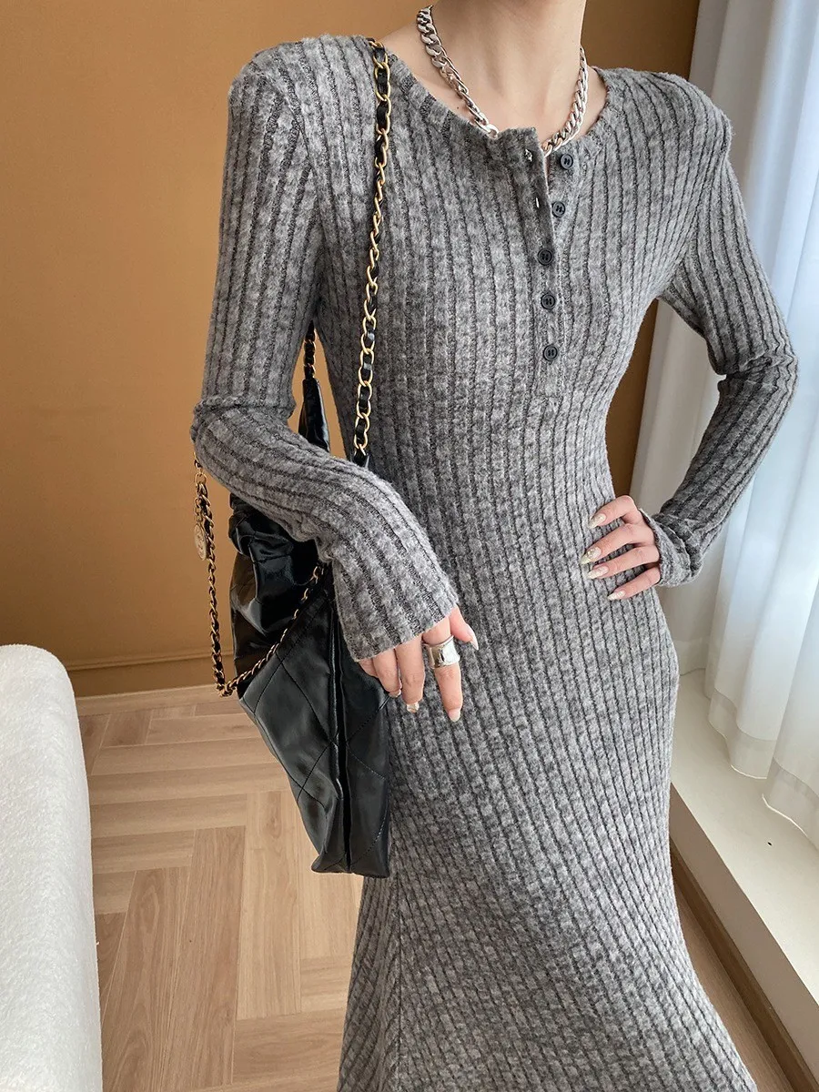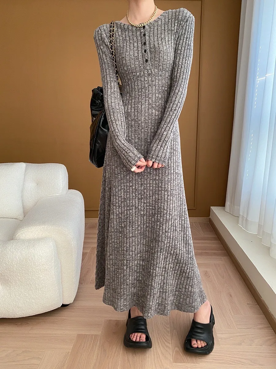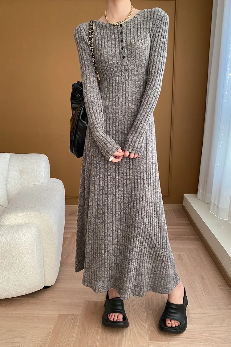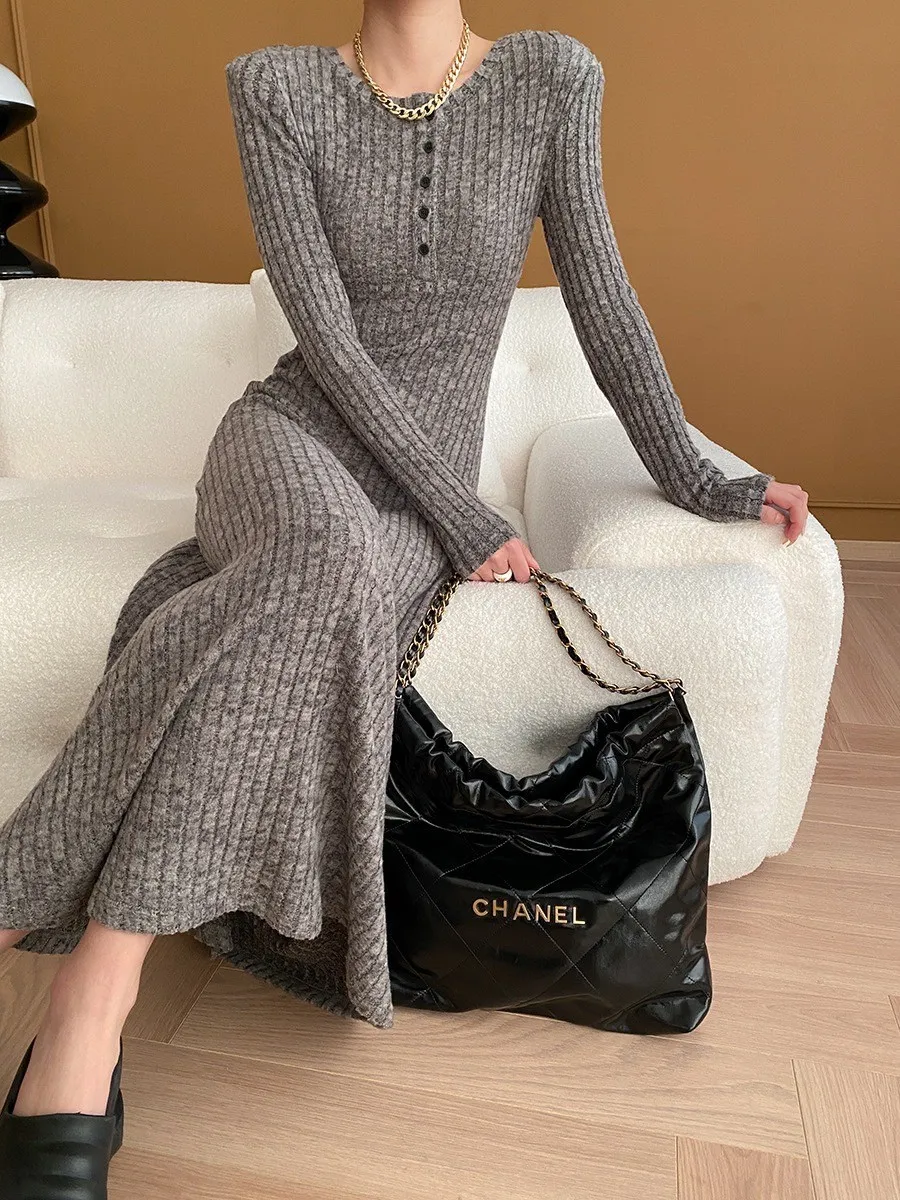 【氣場仙登場】法式墊肩坑條顯瘦針織長洋