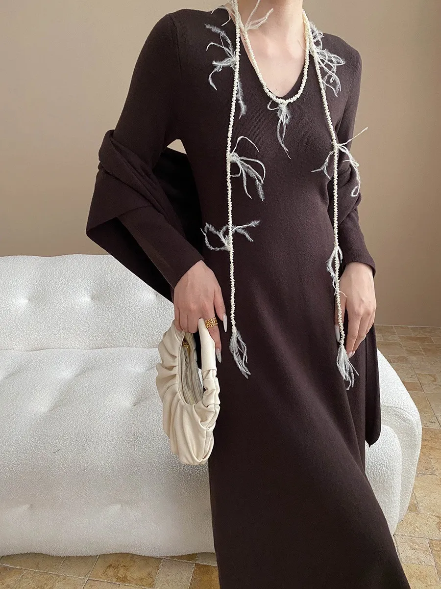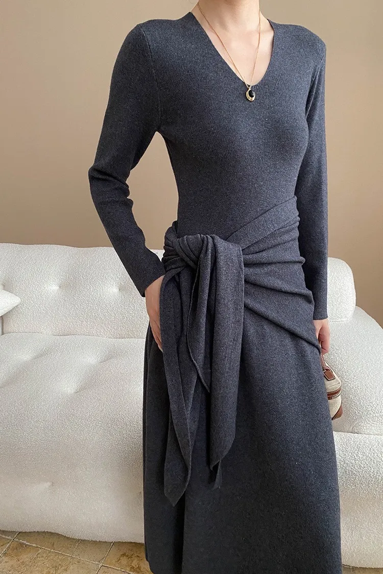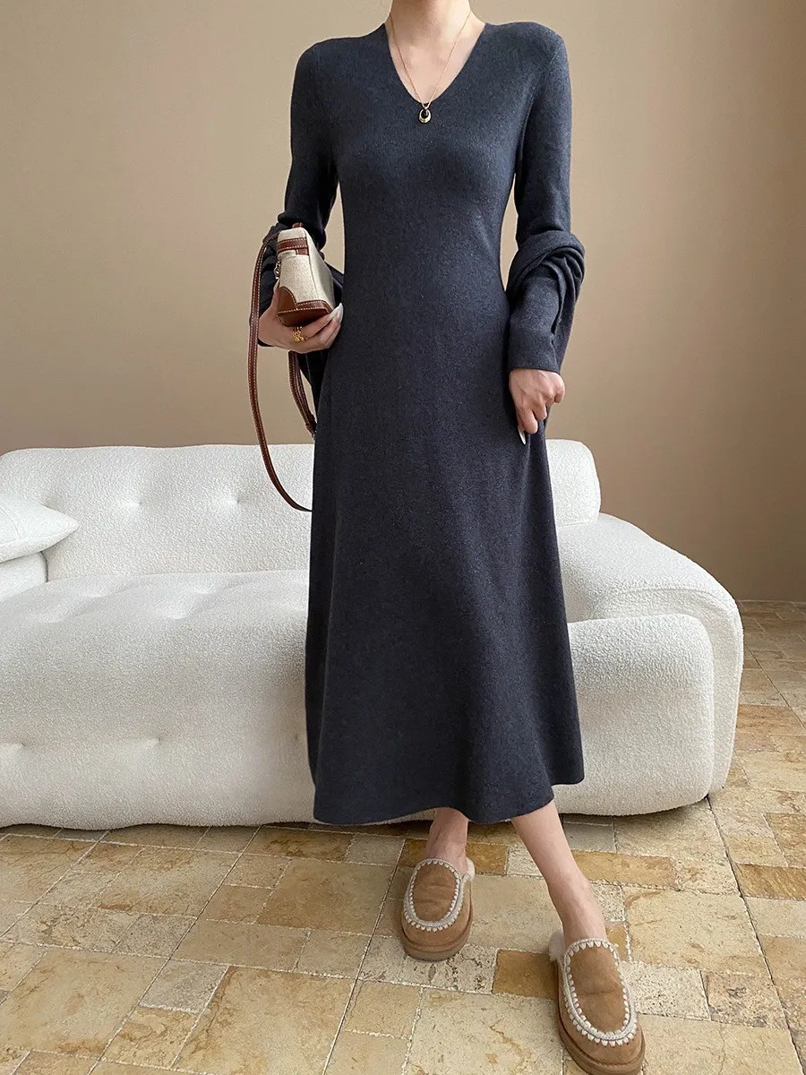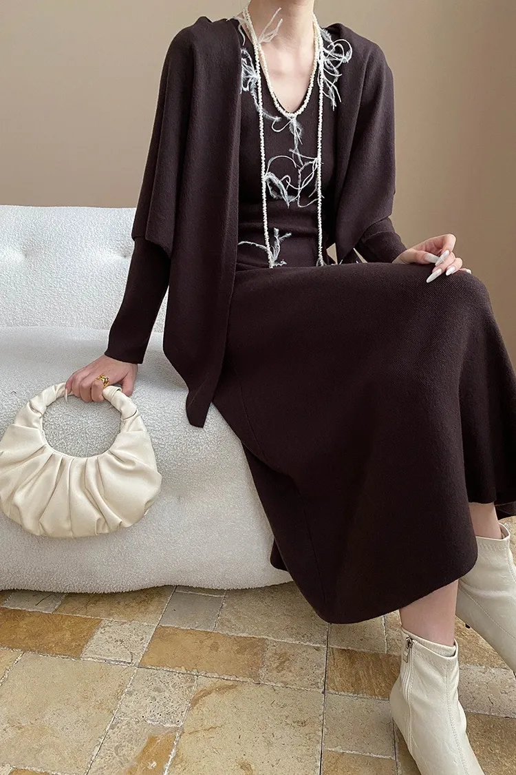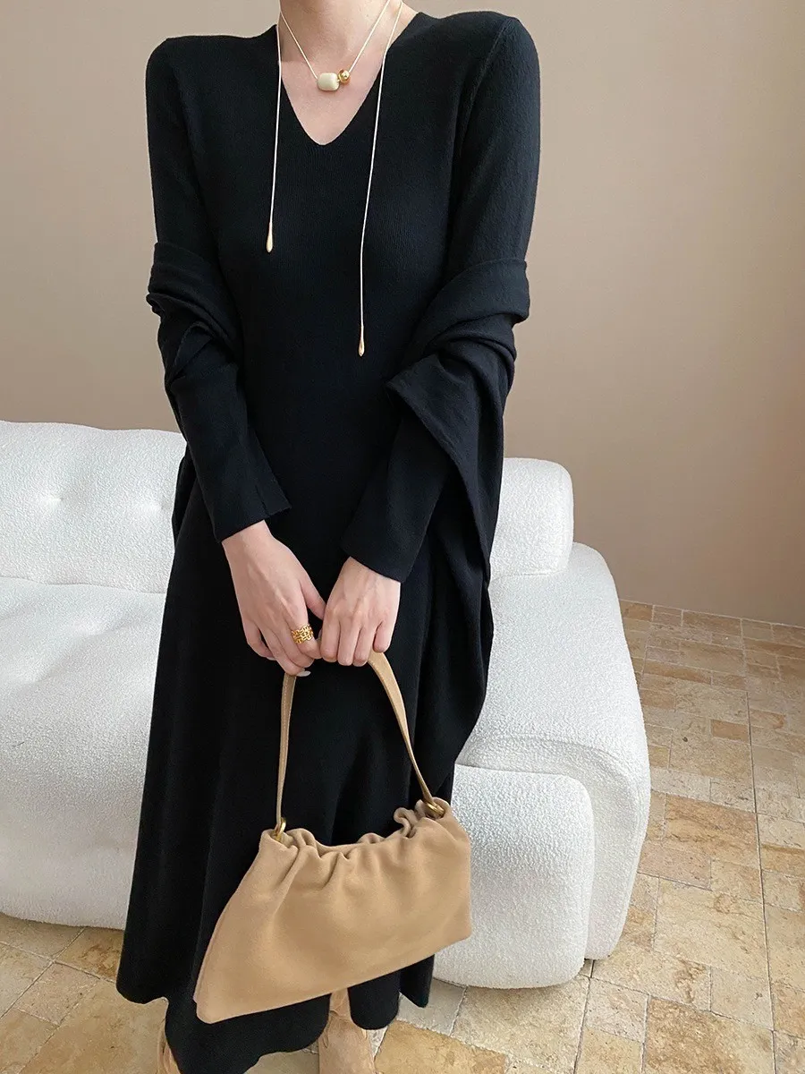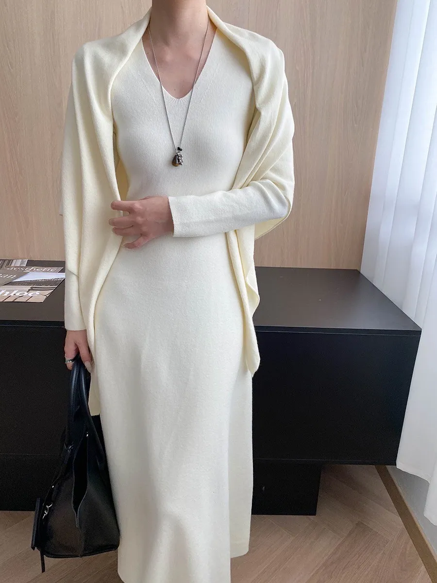 【至簡靜奢】法式V領垂感針織披肩長洋