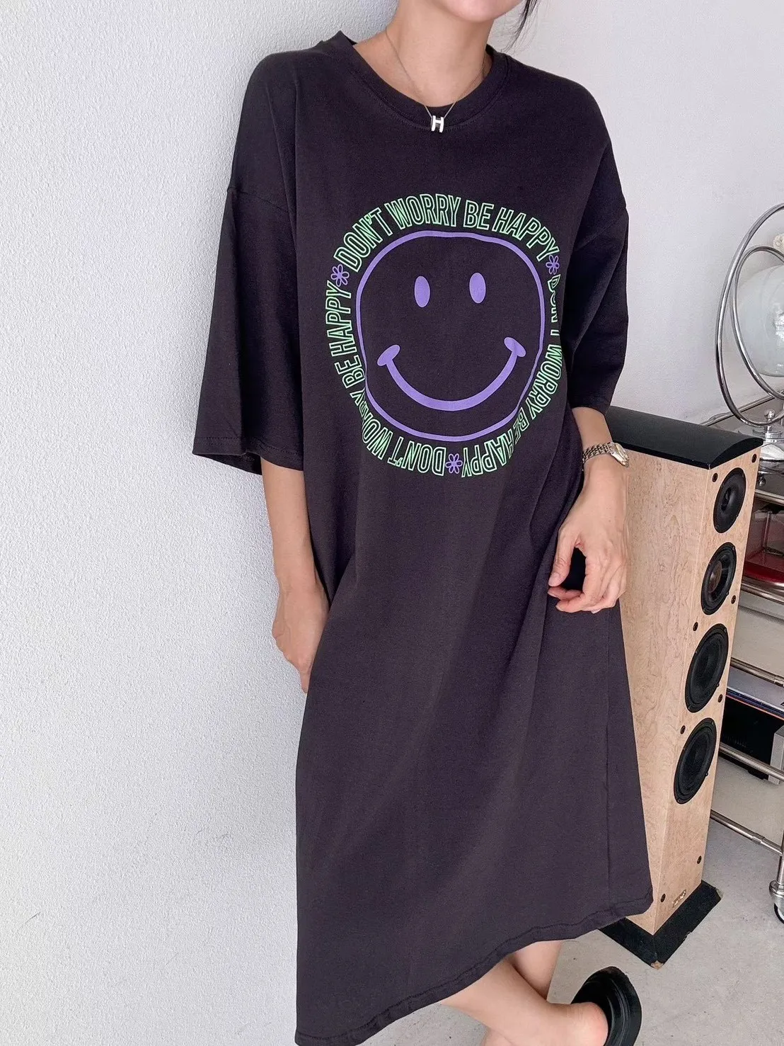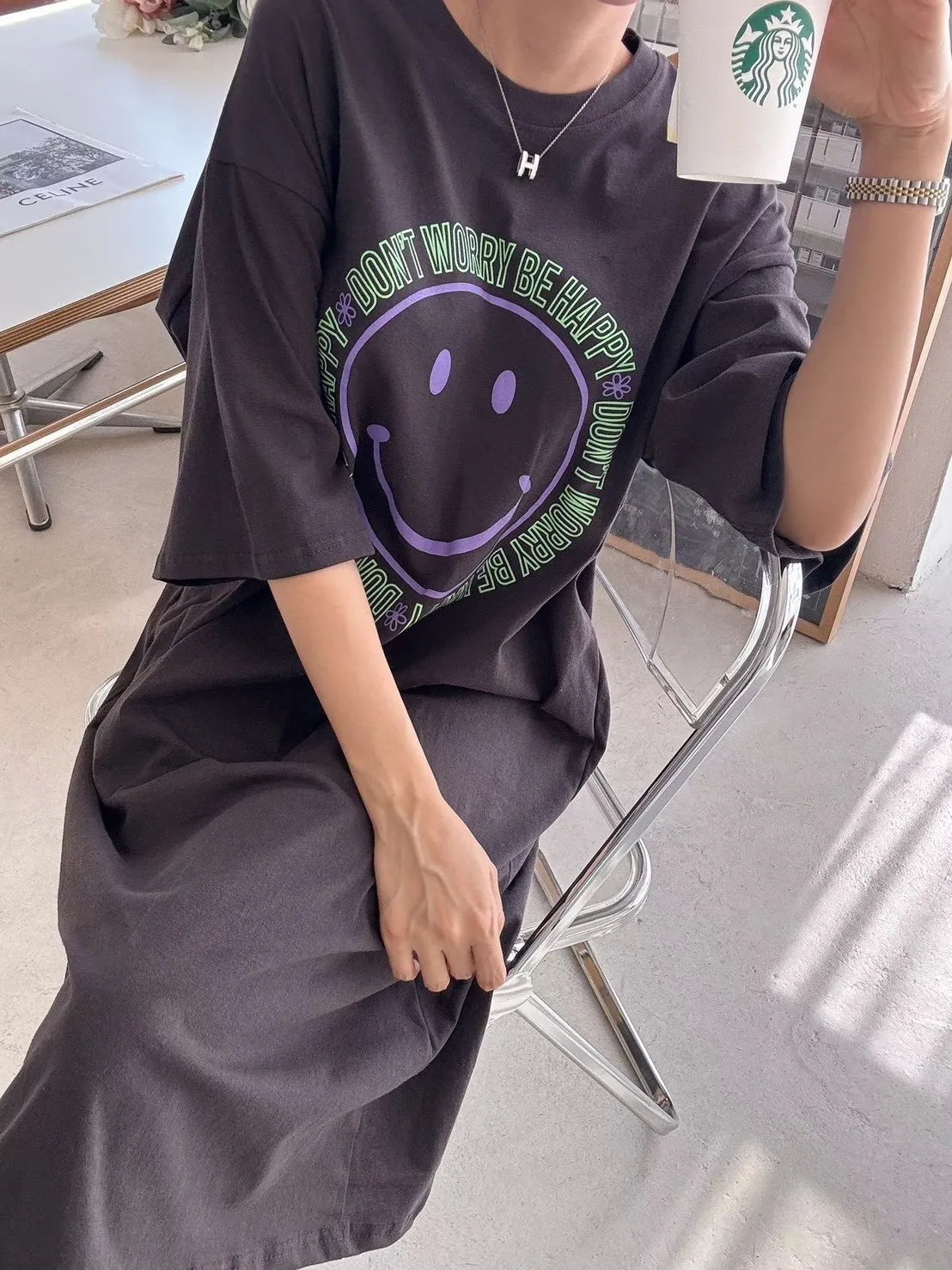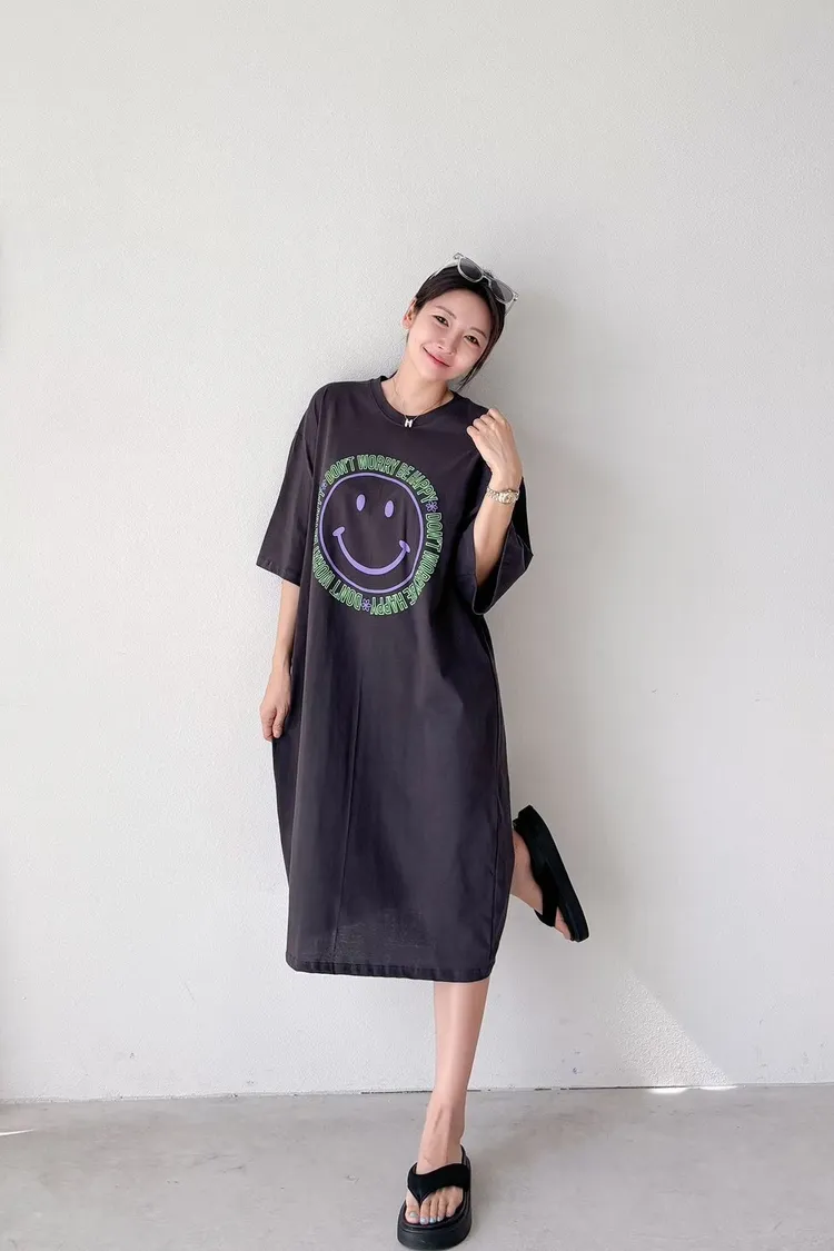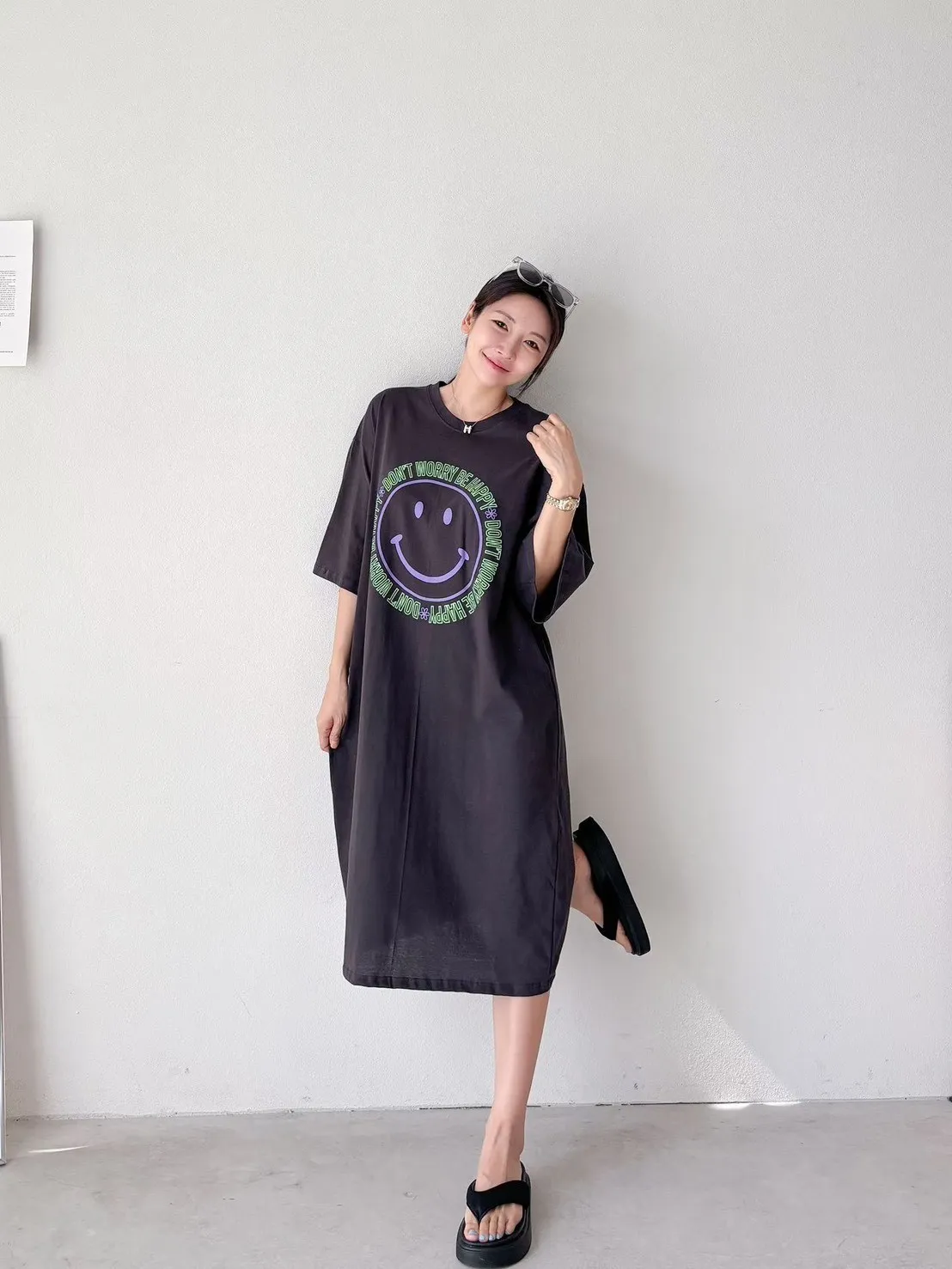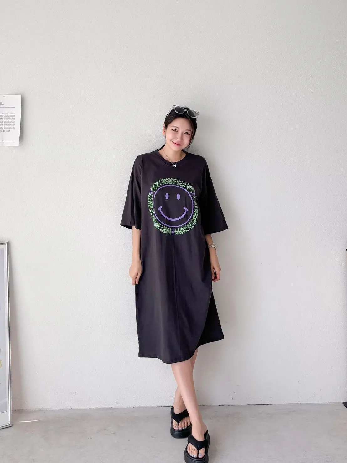韓國製🇰🇷懶人純棉笑臉寬鬆長洋裝