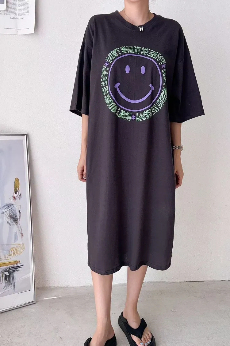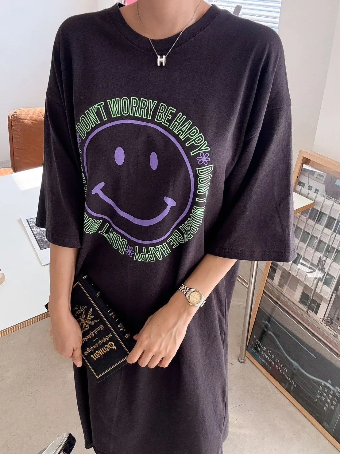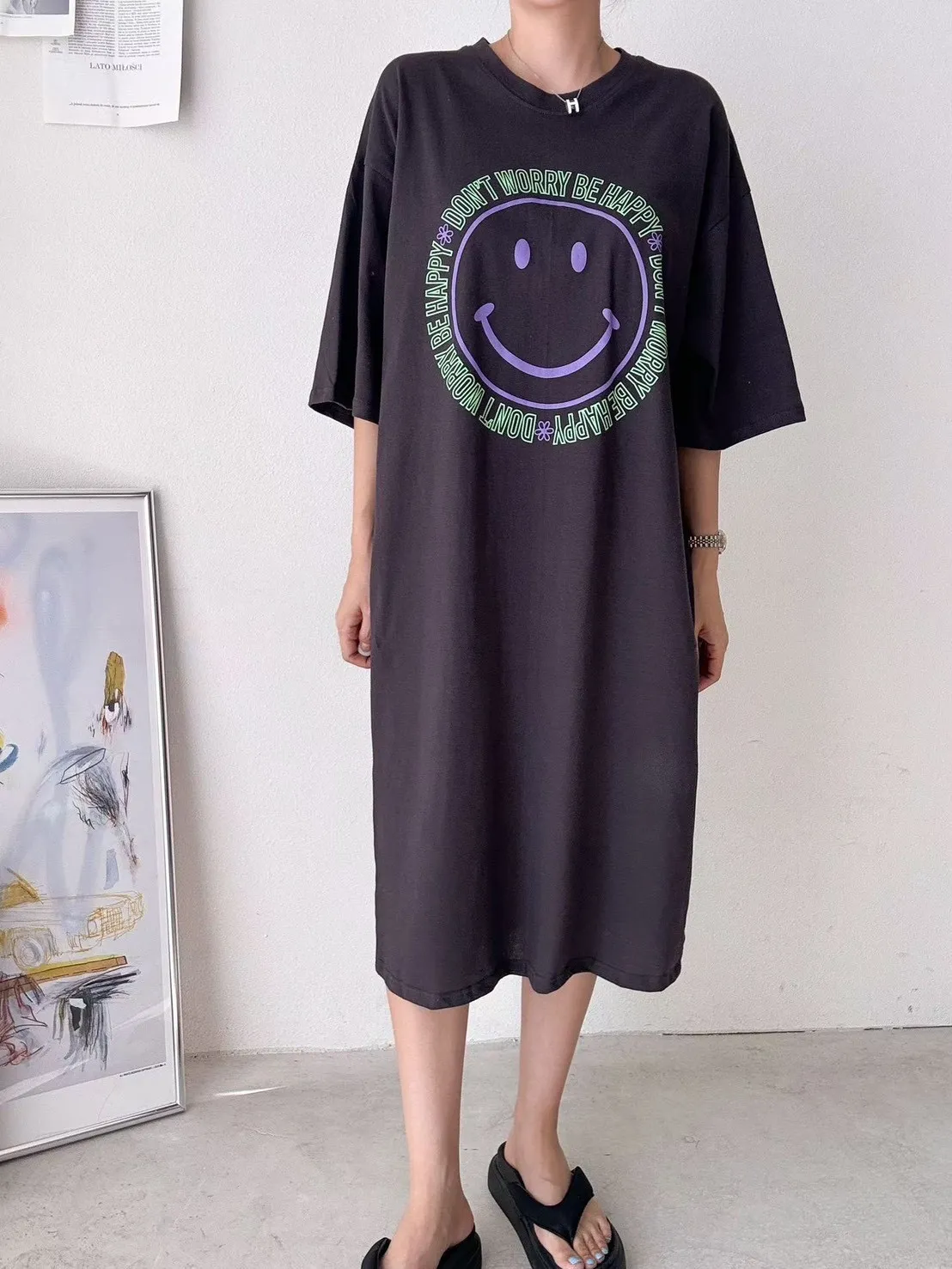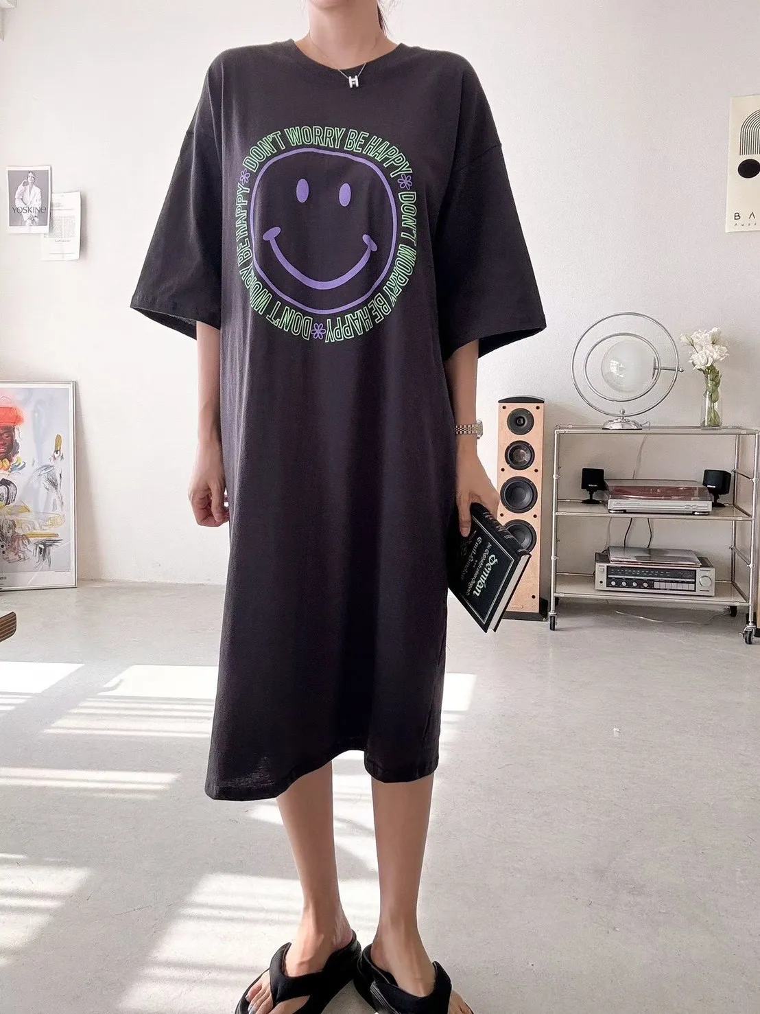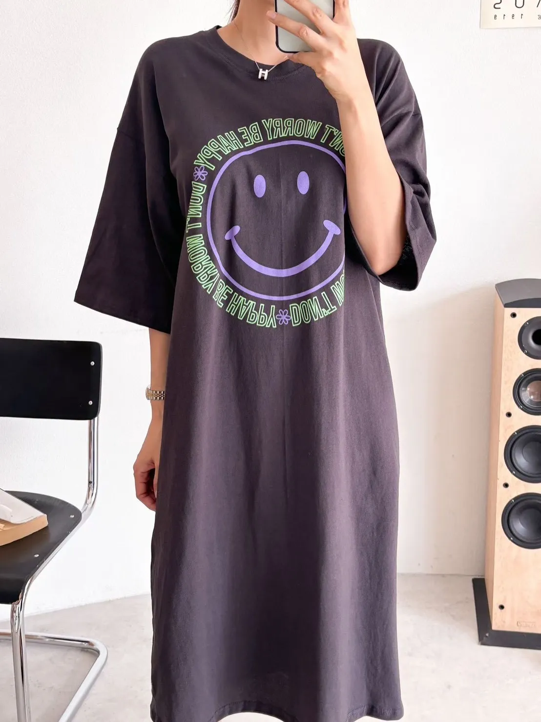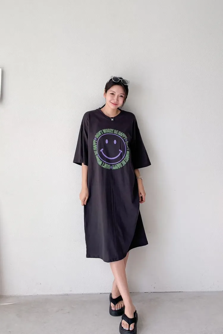 韓國製🇰🇷懶人純棉笑臉寬鬆長洋裝