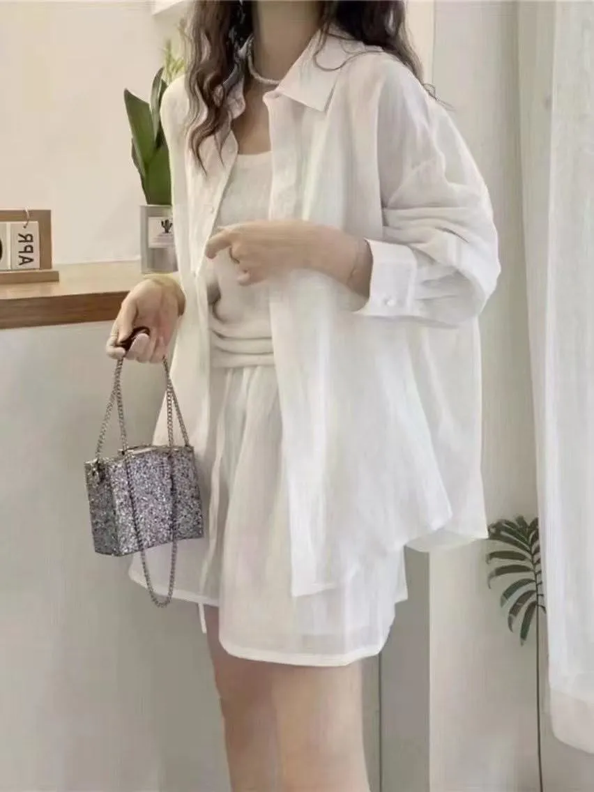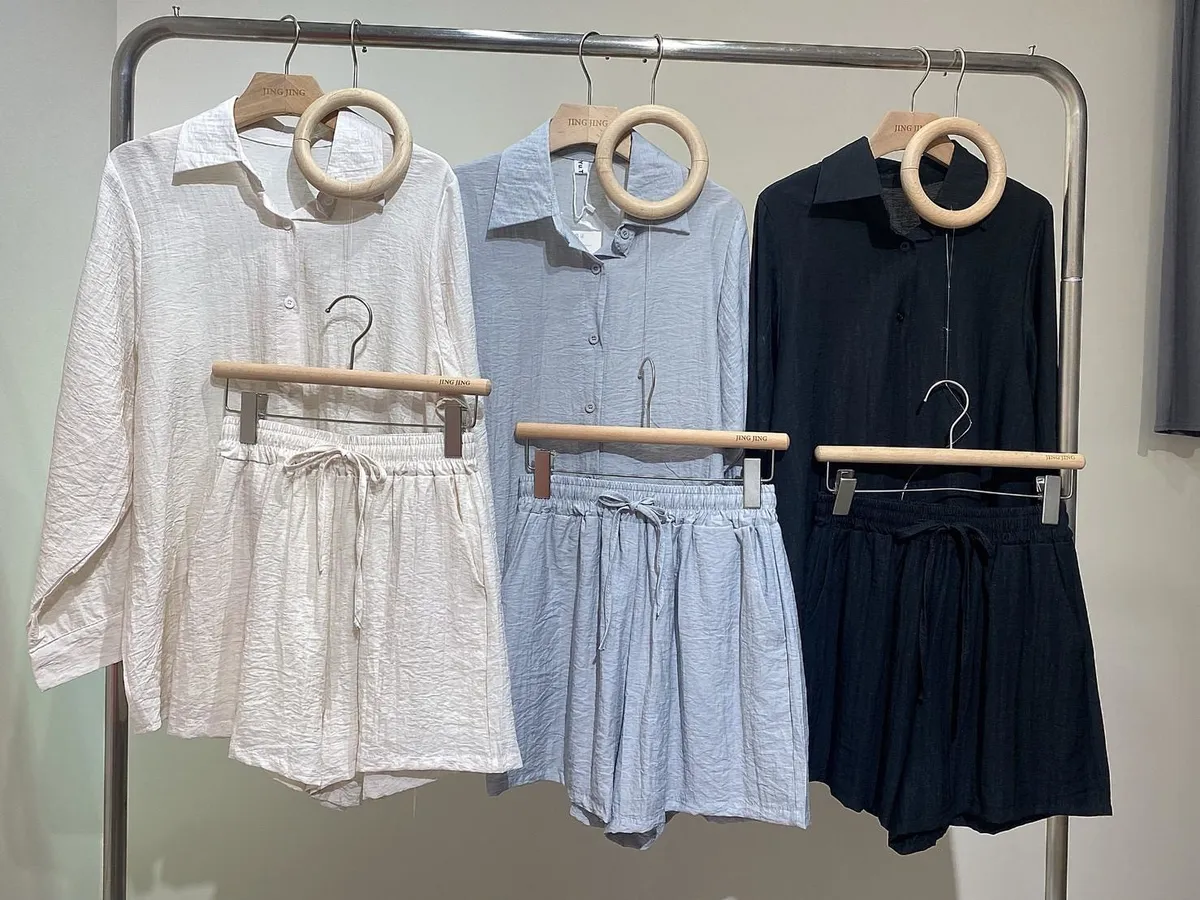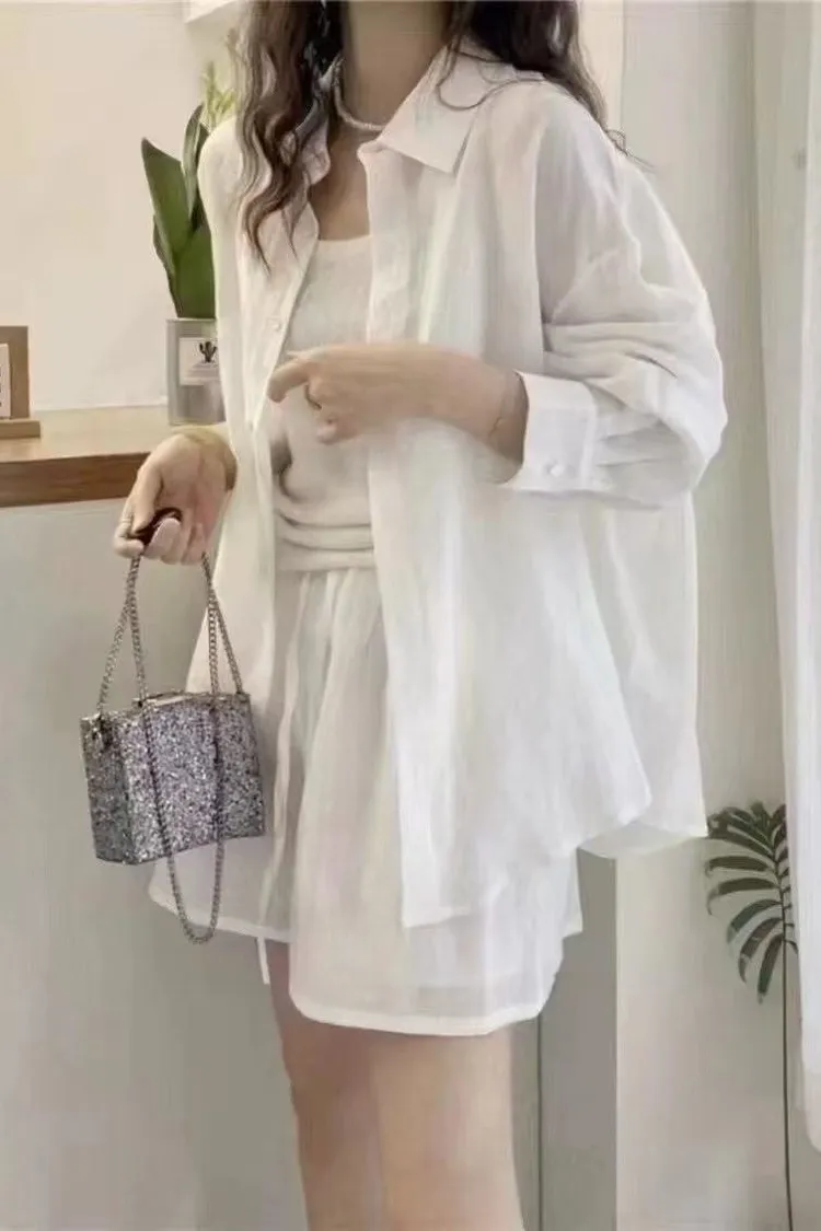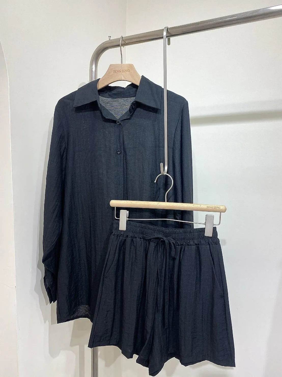 極簡優質棉麻抽繩短褲套裝(襯衫+短褲)