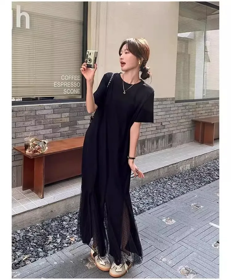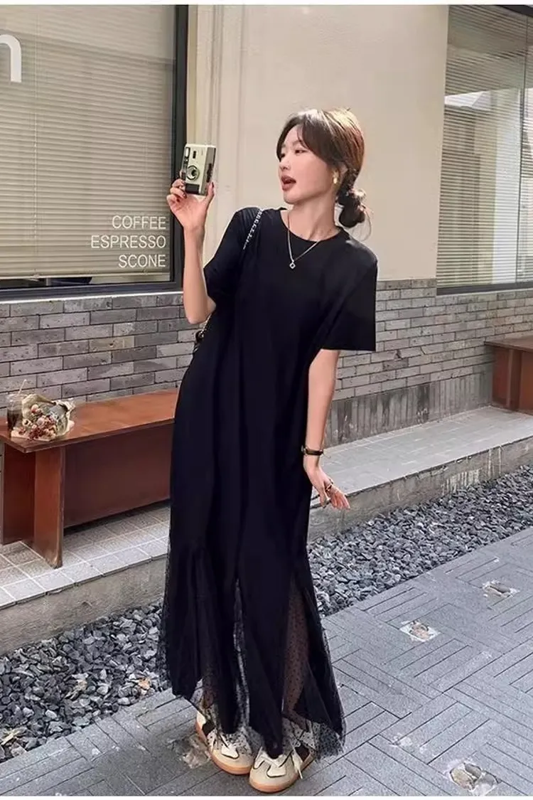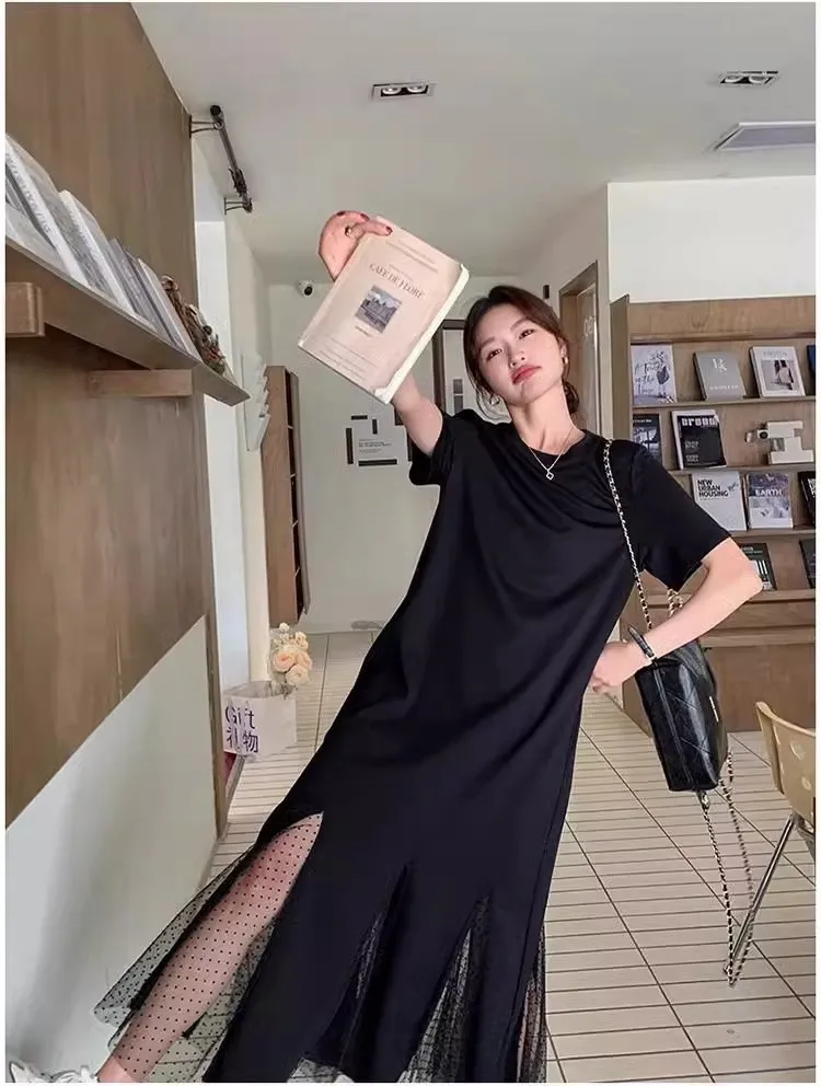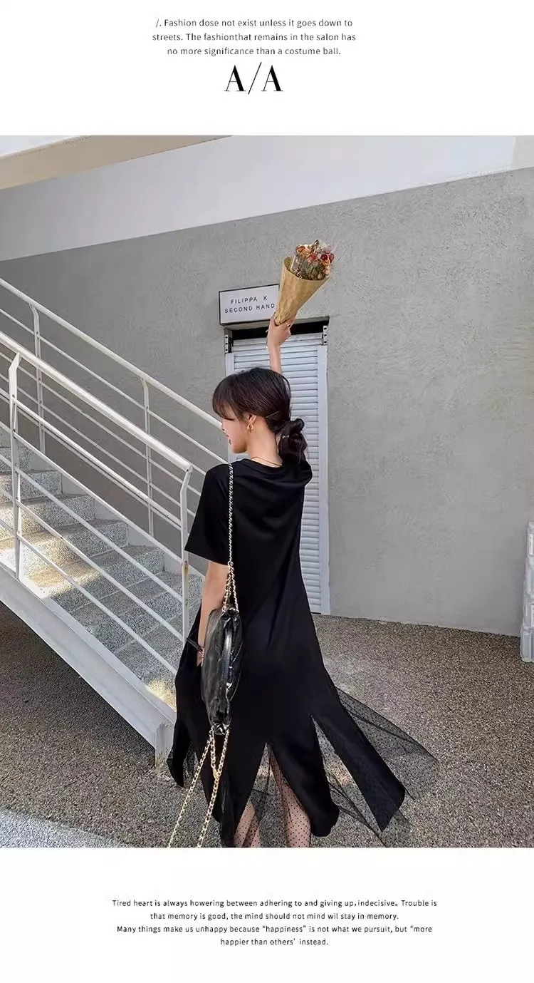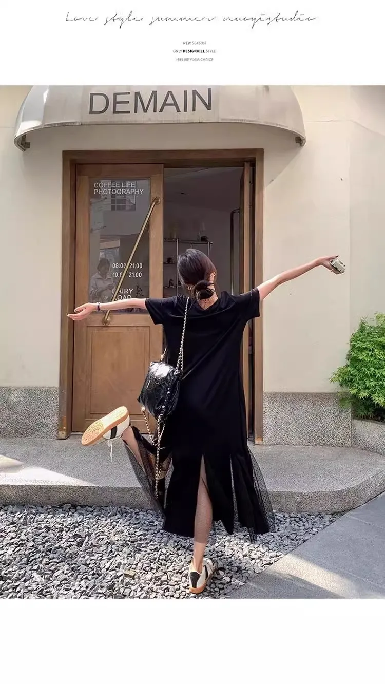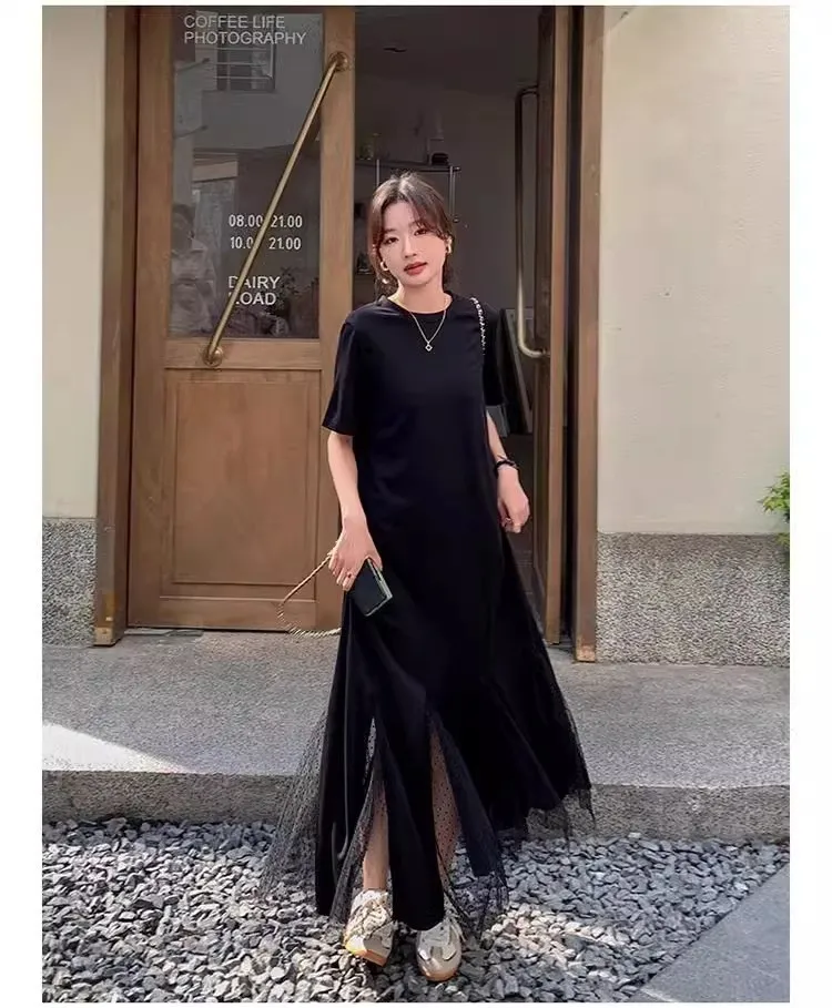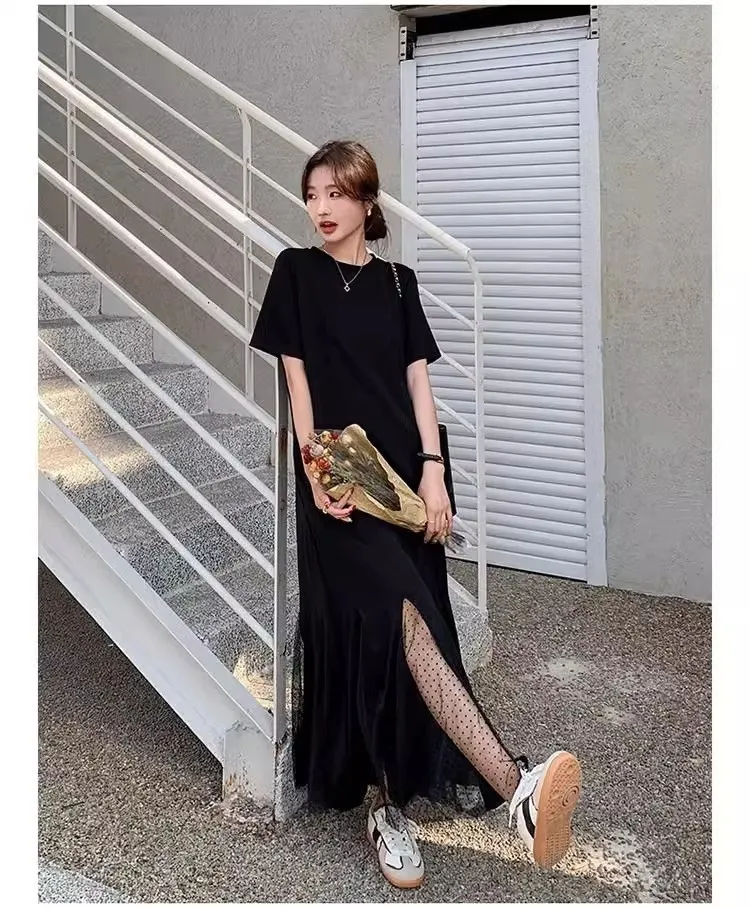 黑天鵝魚尾網紗拼接洋裝