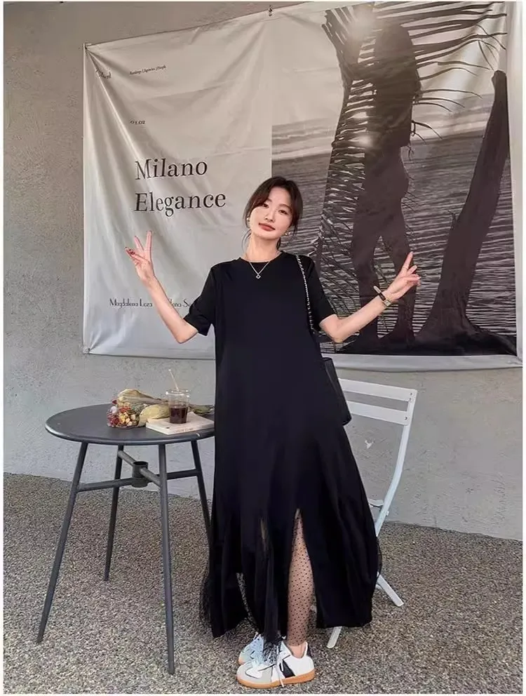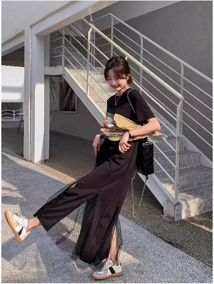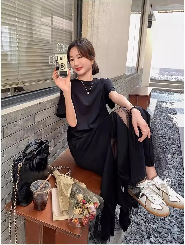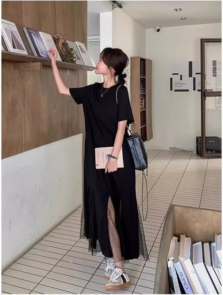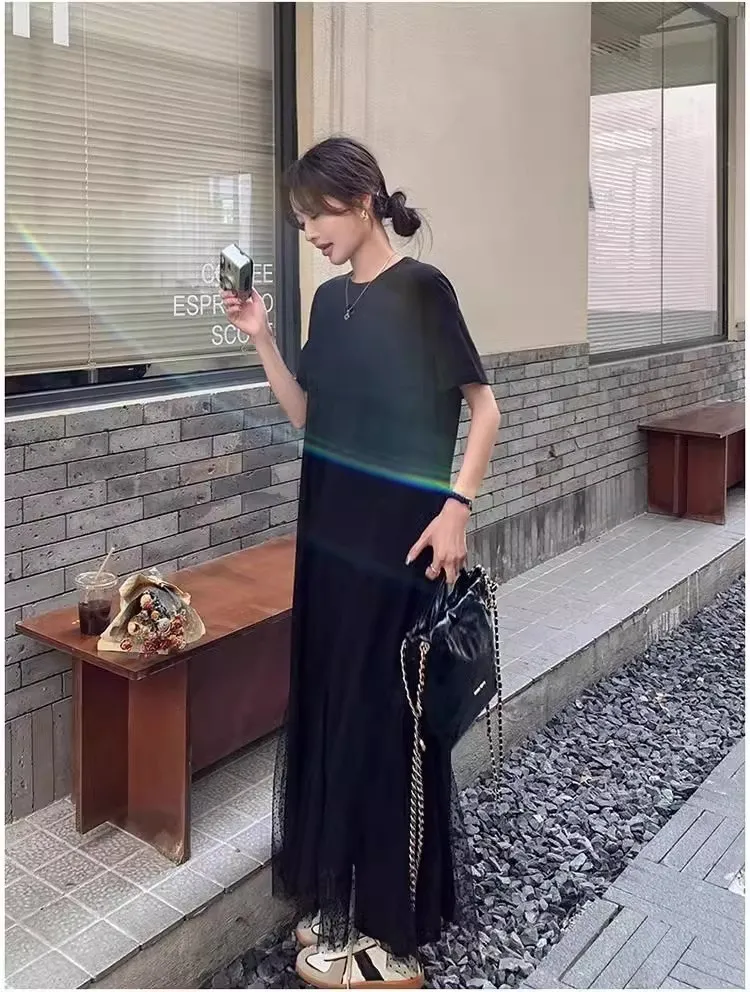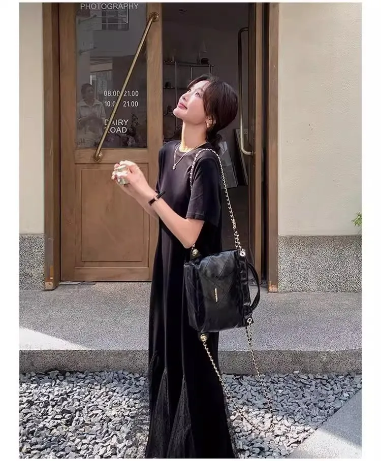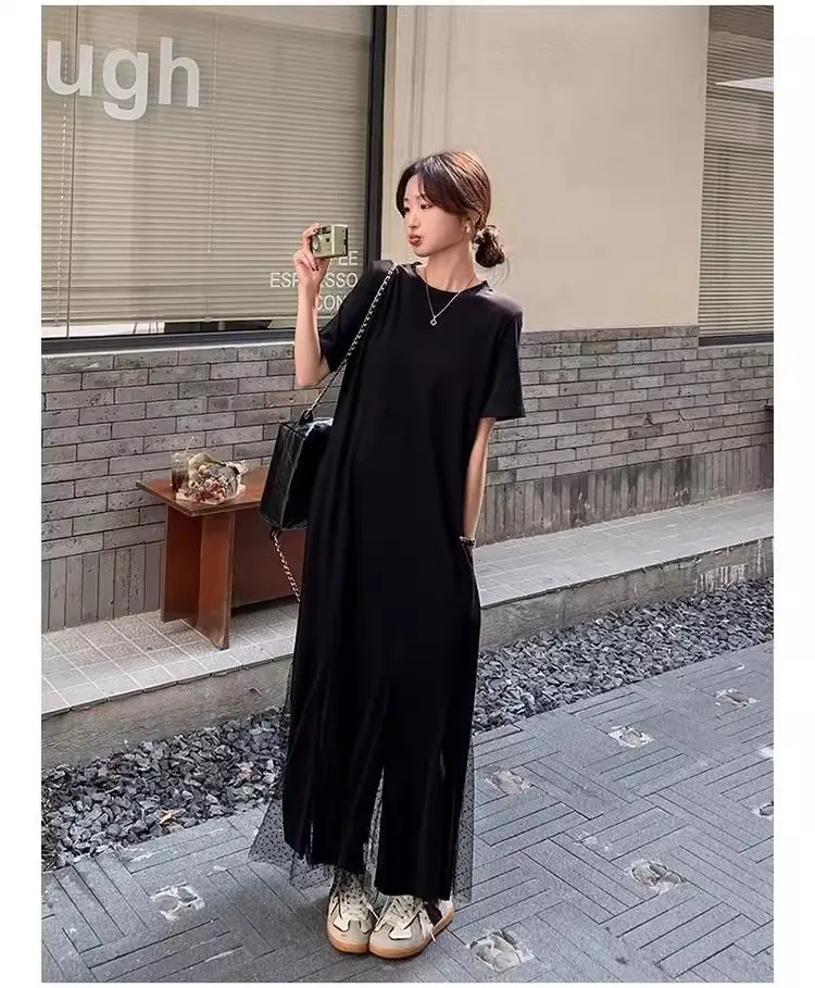 黑天鵝魚尾網紗拼接洋裝