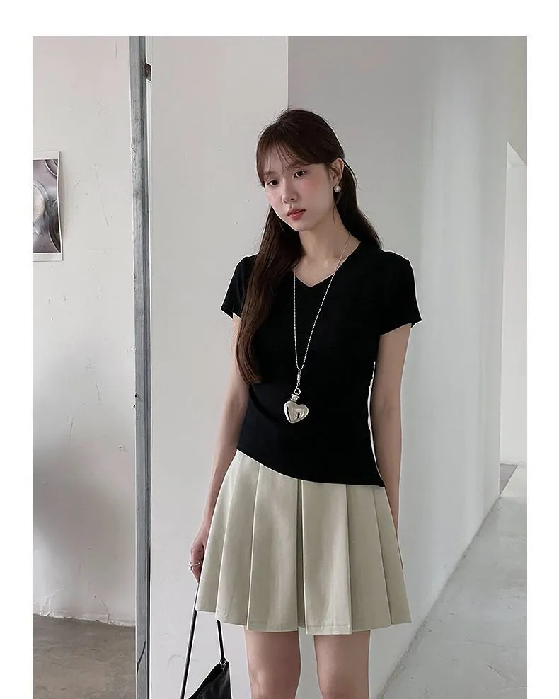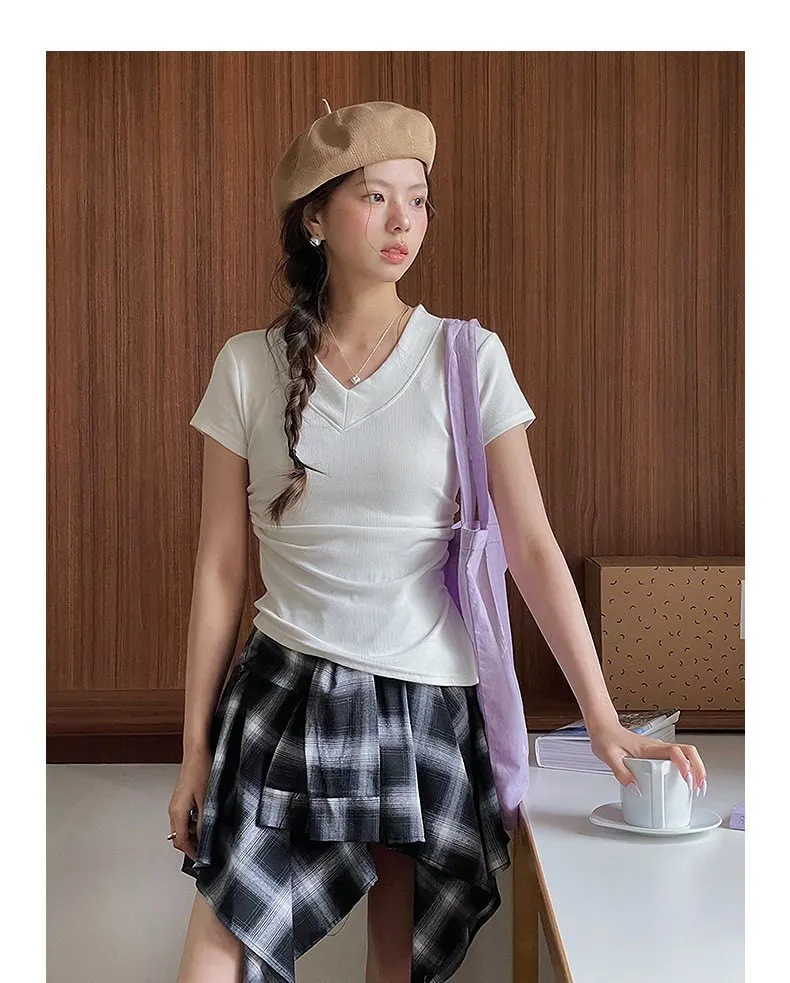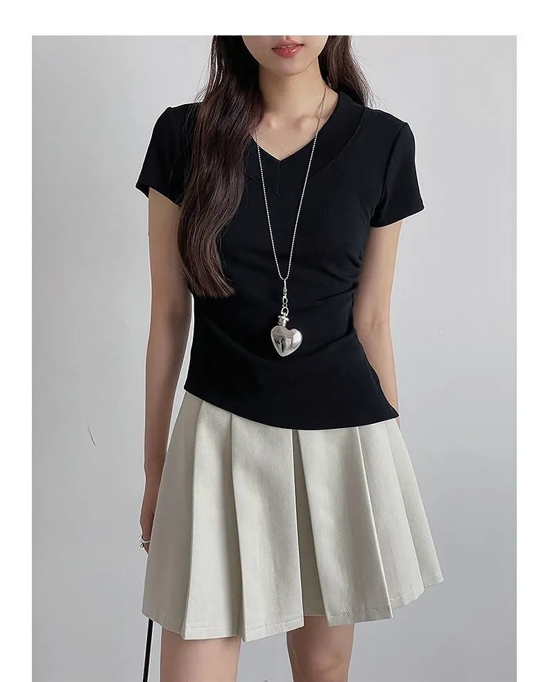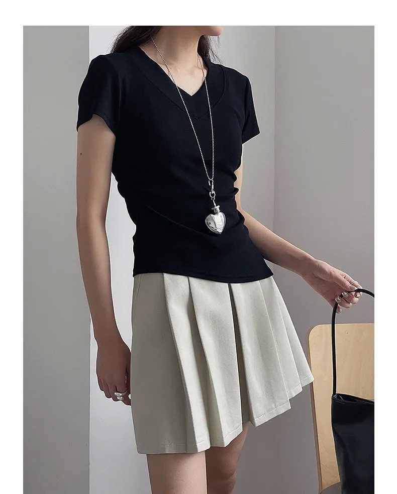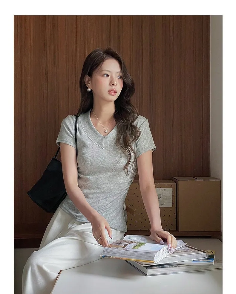 【S曲線】韓系V領收腰顯瘦Tee