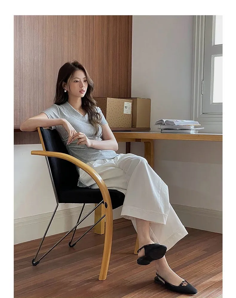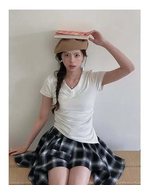 顯瘦天花板!這件純色大V領收腰Tee必收