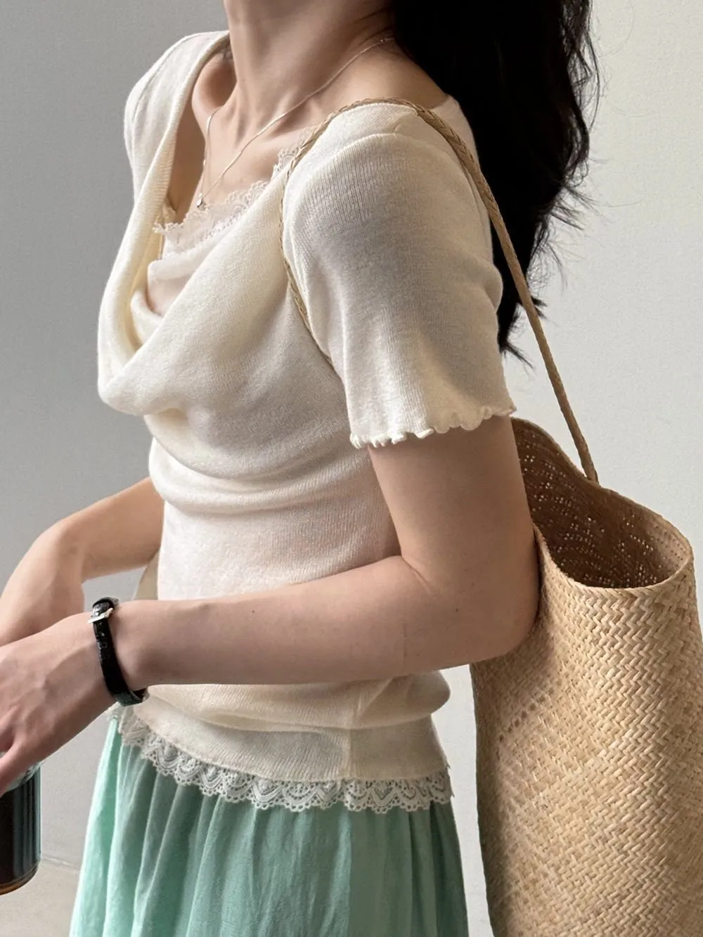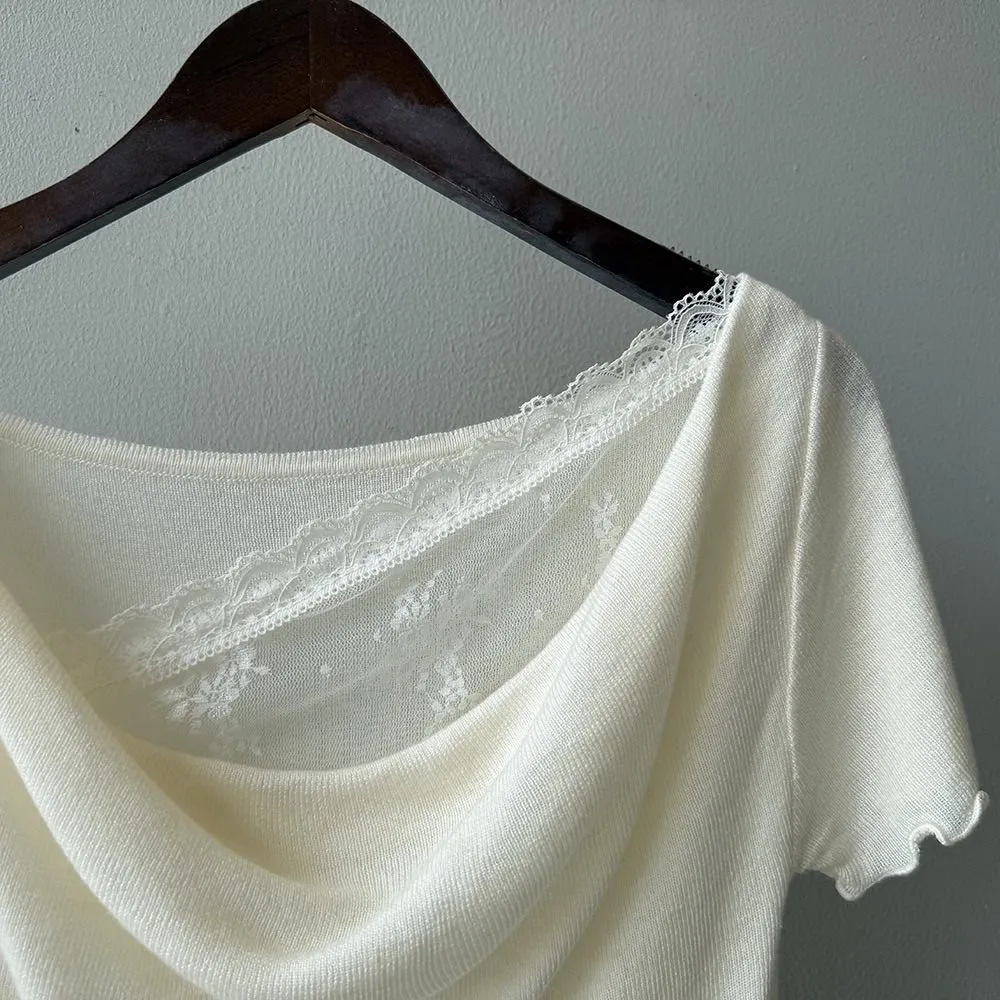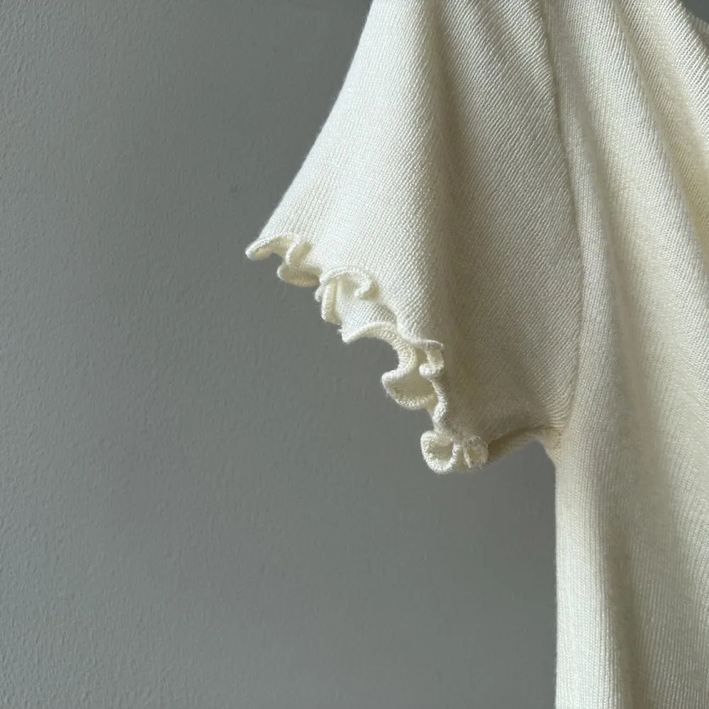 看起來是甜甜女孩 其實暗藏小心機~ 蕾絲內搭一件穿出兩件層次感 不用自己搭也能美出仙氣! 柔軟針織材質+微垂領口優雅又顯臉小 袖口和下擺的波浪邊更是精緻到不行 搭配長裙、短褲都超百搭,約會穿它準沒錯! 材質:羊毛