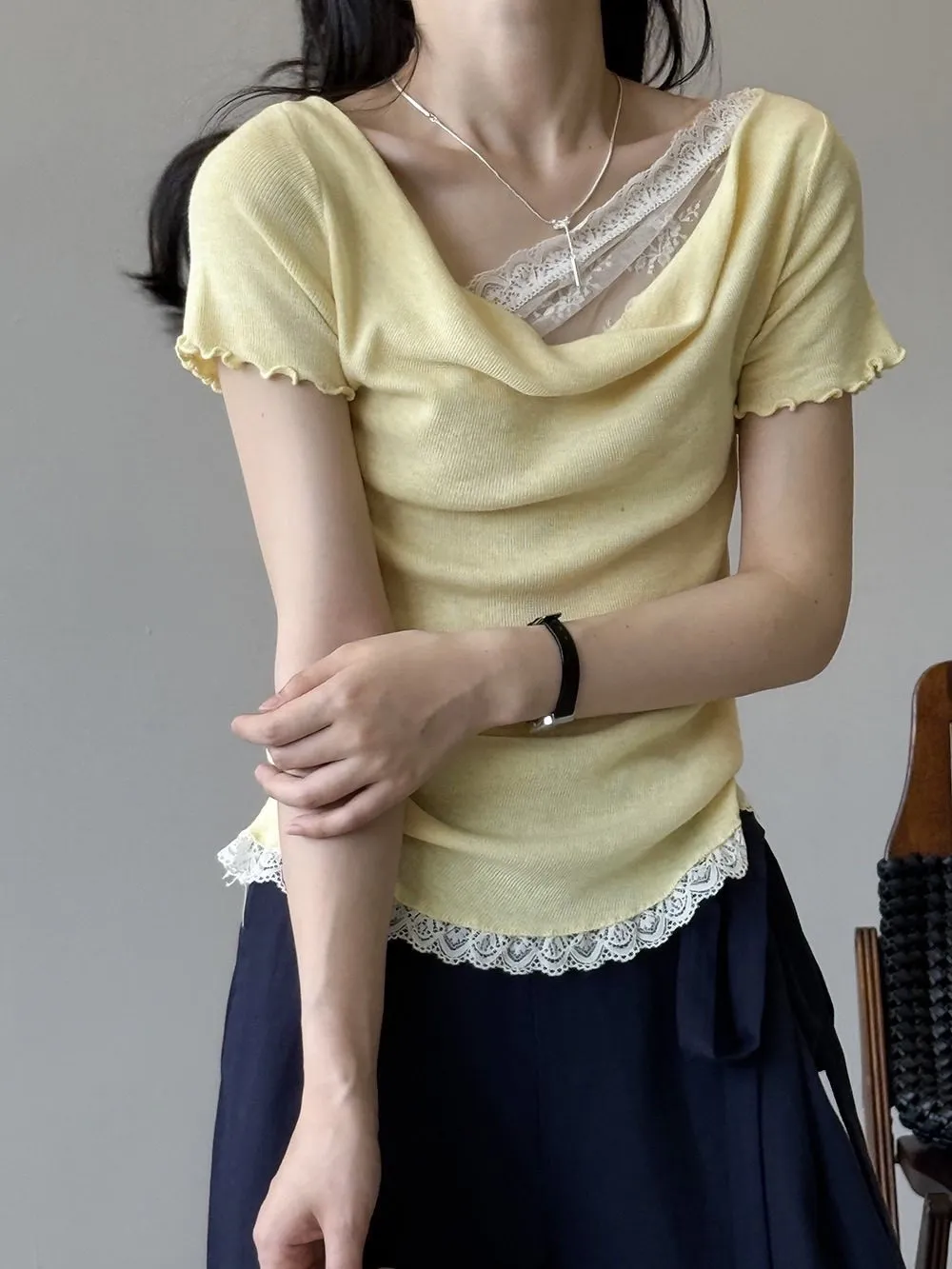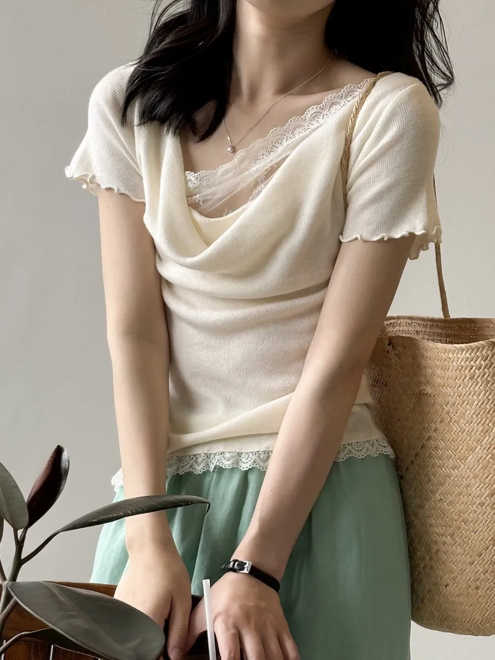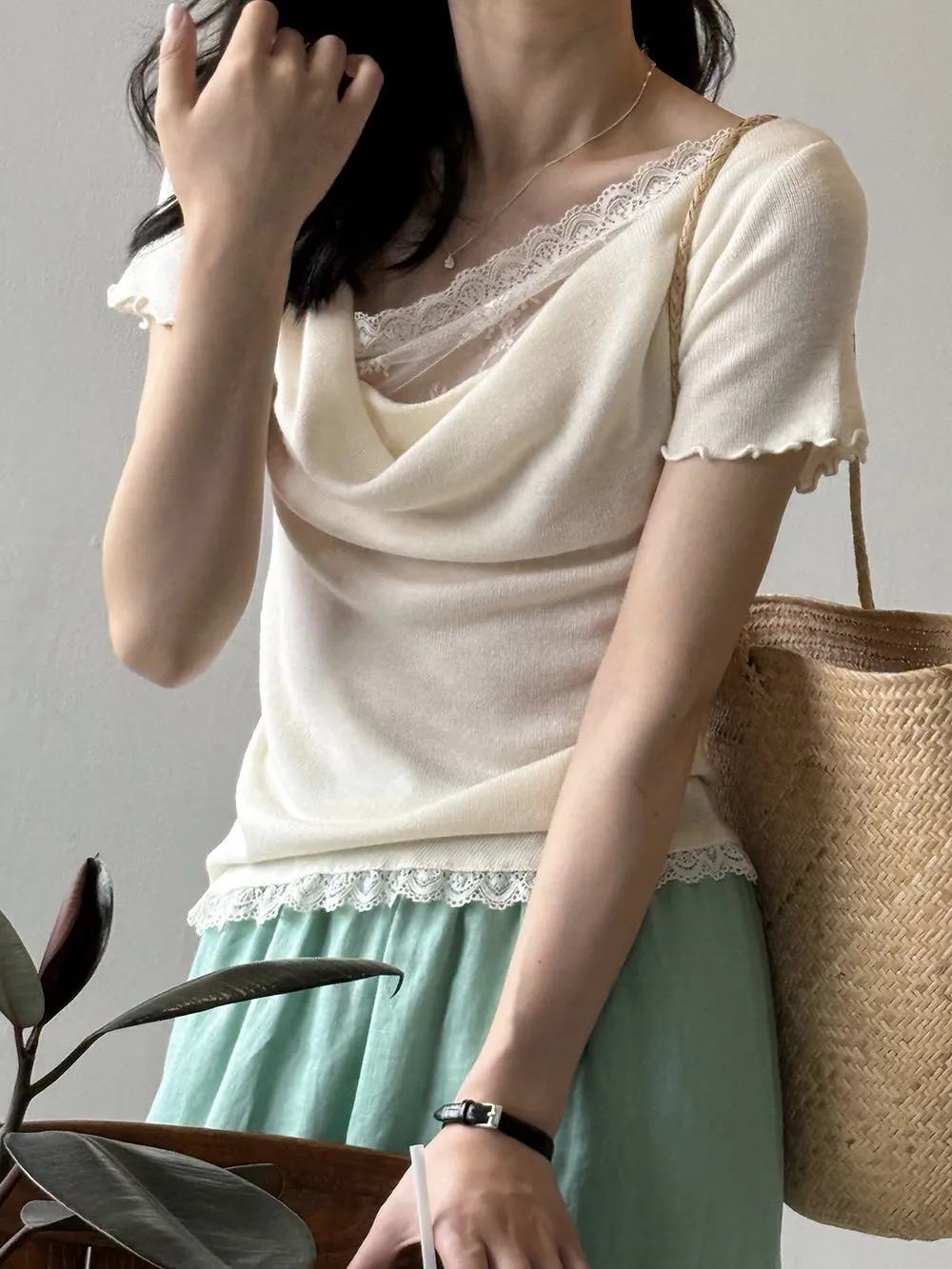 看起來是甜甜女孩 其實暗藏小心機~ 蕾絲內搭一件穿出兩件層次感 不用自己搭也能美出仙氣! 柔軟針織材質+微垂領口優雅又顯臉小 袖口和下擺的波浪邊更是精緻到不行 搭配長裙、短褲都超百搭,約會穿它準沒錯! 材質:羊毛